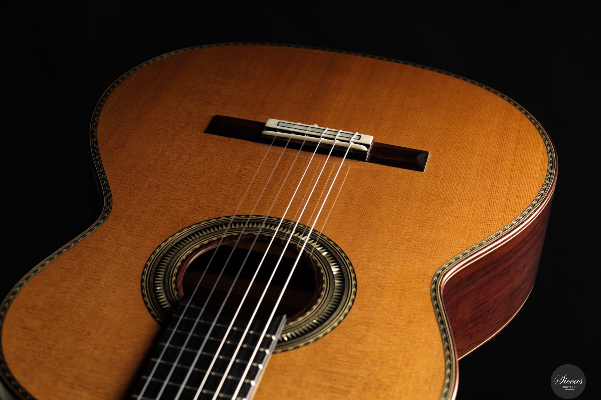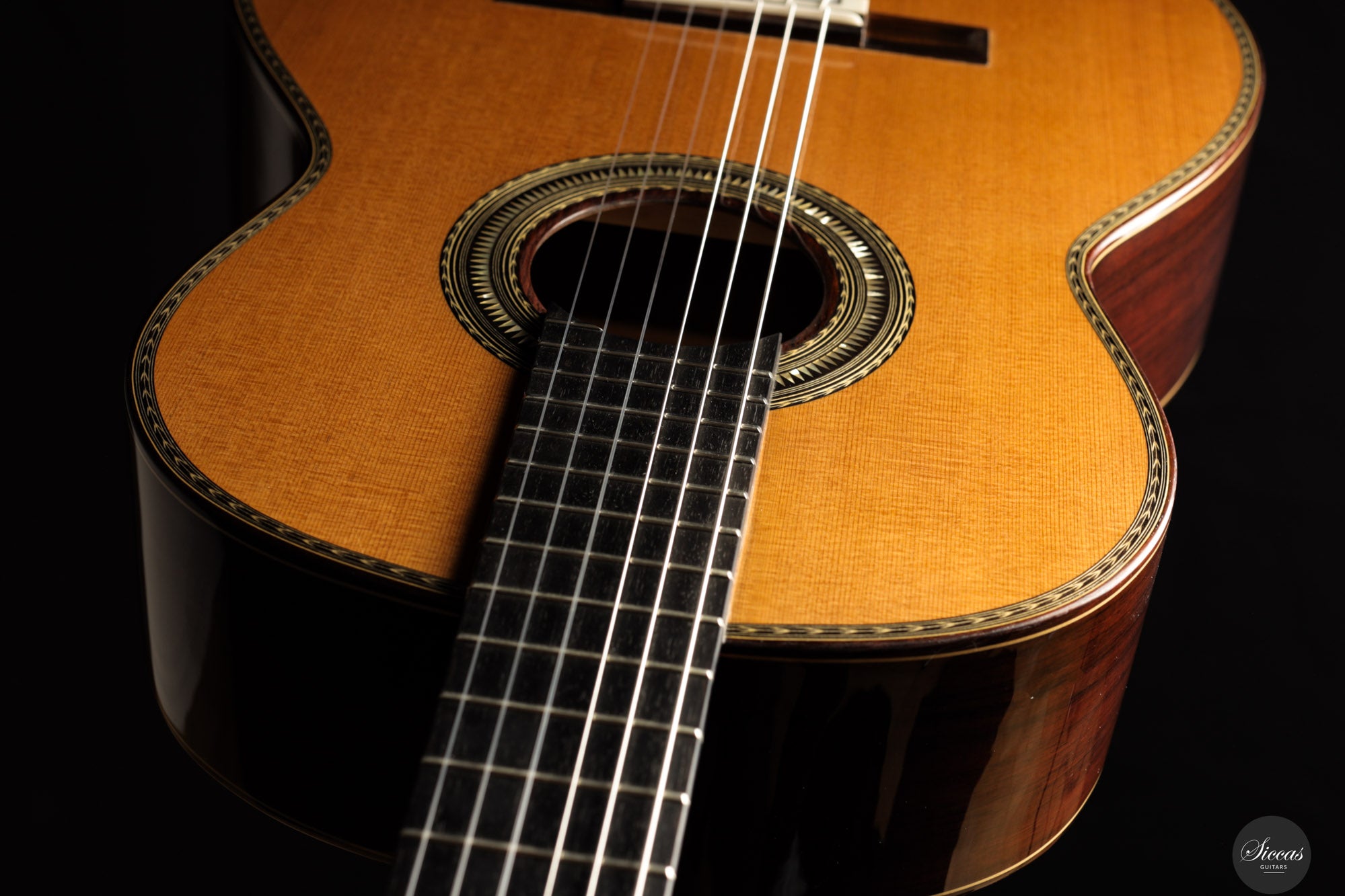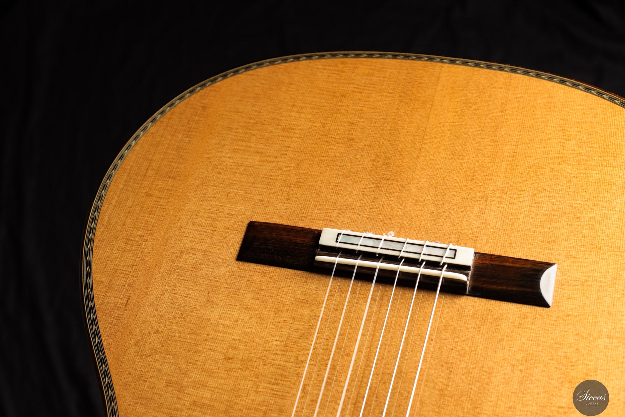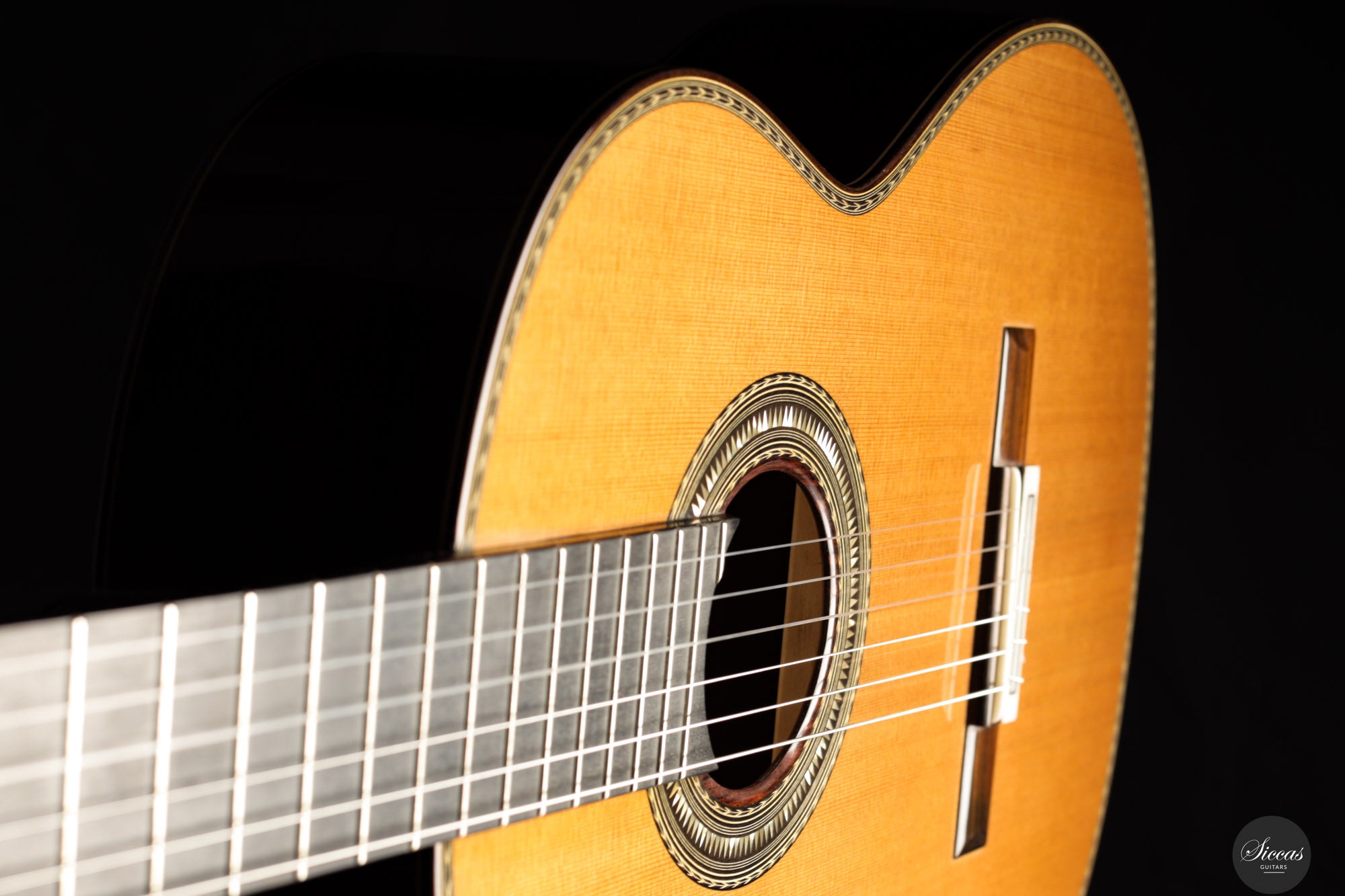 Manuel Adalid, a renowned Spanish guitar maker, was born on October 1, 1951. He grew up in a family of guitar makers, with his father, Manuel Adalid Lázaro, as well as Francisco Esteve Calatayud and Antonio Monfort, as his teachers in the craft. After completing his studies Higher Bachelor and Commercial Expert at the University of Valencia, Adalid set up a guitar trading company at 18, quickly becoming one of the most important clients of Francisco Esteve Guitars. He spent summers working as an apprentice at Francisco Esteve’s guitar factory, honing his skills and knowledge in the craft. At 23, Adalid returned to Guitarras Francisco Esteve with a full dedication to the guitar’s construction. During this time, his father and Antonio Monfort continued to mentor him, allowing him to complete his apprenticeship as a guitar maker. When the founding partners of Guitarras Francisco Esteve reached retirement age, they appointed Adalid as manager, recognizing his commercial and technical knowledge. Under his direction since October 1980, the company grew significantly, expanding its workshop area from 2,000 m2 to 6,000 m2 and increasing its employees from 30 to 49. Adalid is also known for his contributions to the field of guitar-making beyond his work at Guitarras Francisco Esteve. He has lectured on the Spanish construction system and new technologies for constructing the classical guitar in countries such as Spain, France, China, Turkey, and Argentina. Adalid’s expertise in the craft has been recognized through his title as a Master Craftsman, granted by the Department of Industry and Commerce of the Generalitat Valenciana with number 193. He is also currently the President of the Association of Musical Instruments (AFIMA). In recent years, Adalid has dedicated himself to researching new technologies for constructing classical guitars, which he considers the most enriching task on a personal level that he currently enjoys. Through his lifelong passion for the craft, Adalid has become a respected figure in the guitar-making world, leaving a lasting impact on the field.About the guitar