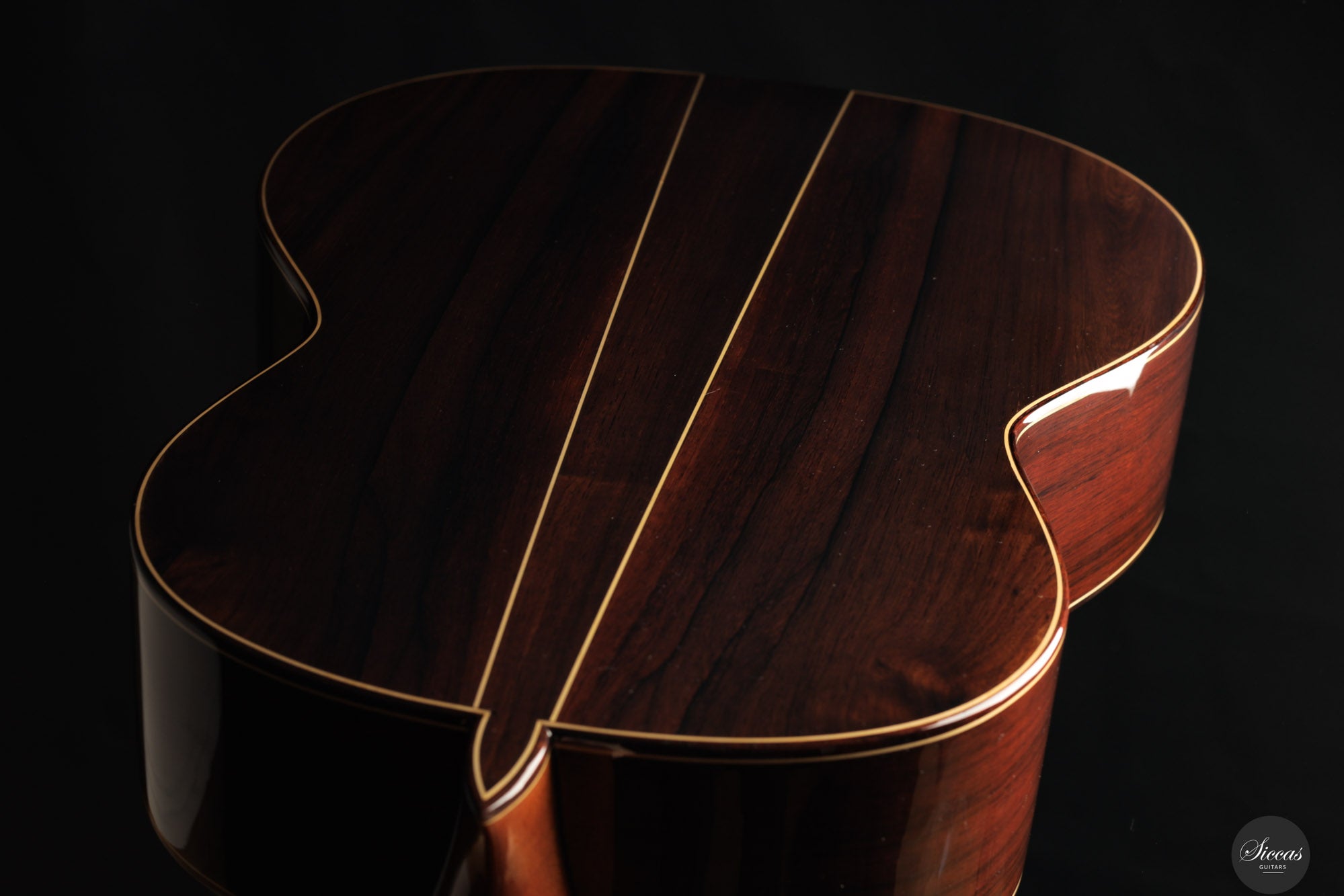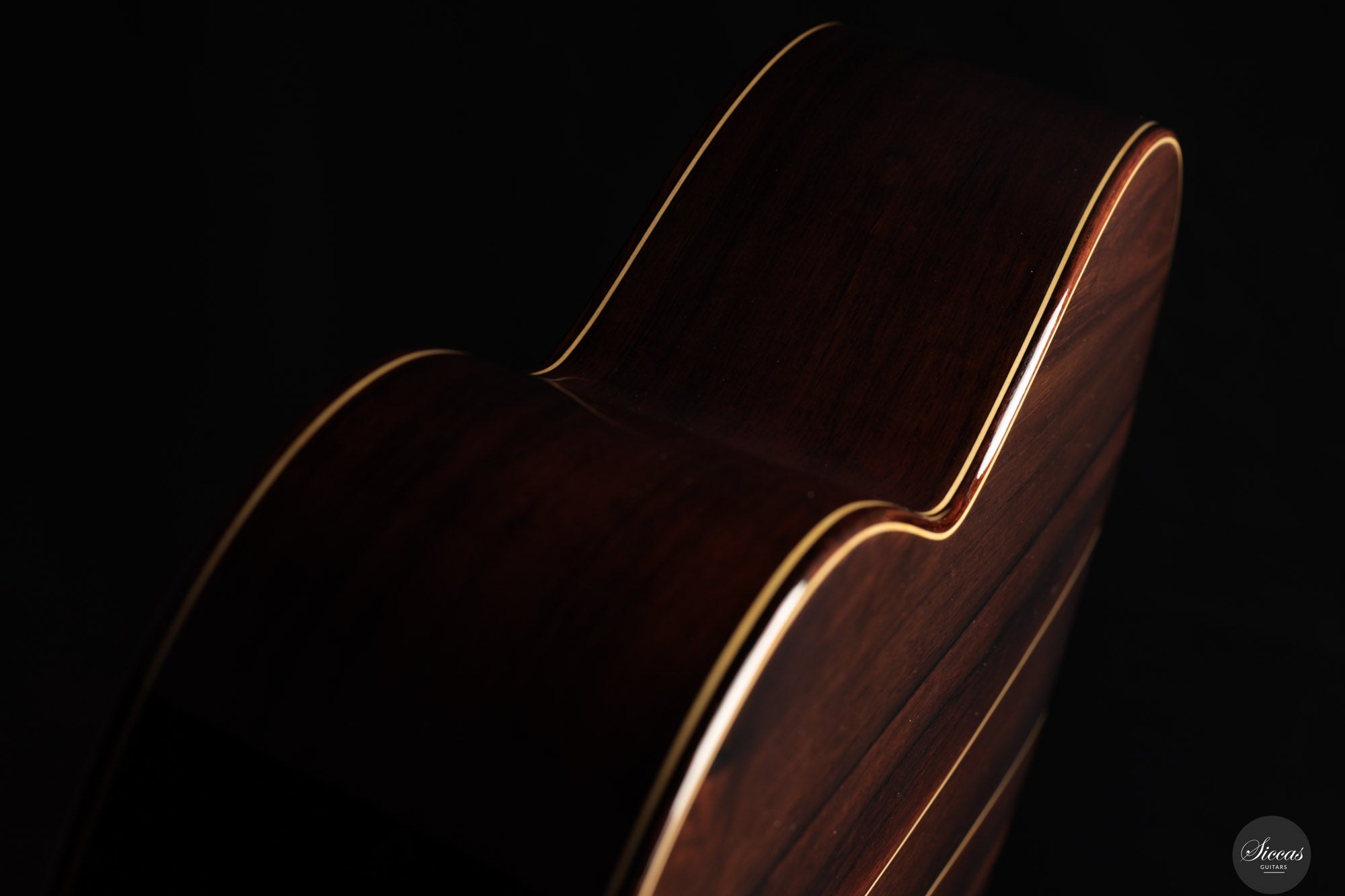 The Manuel Adalid La Catedral 10 Anniversary model stands as a monument of luthiery, encapsulating the pinnacle of Adalid’s renowned craftsmanship and innovative design. This guitar’s heart beats with a cedar double-top, a feature that not only enhances its aesthetic appeal but also significantly boosts its acoustic power, allowing for an extraordinary volume that enriches the sound with unparalleled depth and resonance. Complementing this are the exceptional Madagascar rosewood back and sides, further refined by being doubled with cypress—a method that not only enriches the tonal quality but also reinforces the guitar’s durability and structural integrity. This thoughtful combination of materials and design innovations results in a guitar that is as robust as it is beautiful, offering a sound that is both lush and expansive. Beyond its impressive construction, the Manuel Adalid La Catedral 10 Anniversary model shines in terms of playability, thanks to its meticulously shaped neck and carefully engineered fretboard. These features ensure that the guitar feels as good in the hands as it sounds to the ears, providing a seamless and comfortable playing experience for guitarists of any genre. The responsiveness of this instrument to the player’s touch is exceptional, allowing for a dynamic range and expressiveness that truly sets it apart. Celebrating a decade of musical artistry, the La Catedral 10 Anniversary model is not just a guitar; it’s a testament to Manuel Adalid’s commitment to excellence, offering discerning guitarists an instrument that embodies the perfect blend of traditional craftsmanship and contemporary innovation.Regelmäßige Pflege verlängert die Lebensdauer des Instruments