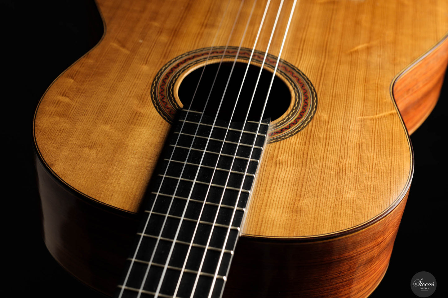 Die klassische Gitarre mit ihren weichen Nylonsaiten und ihrem charakteristischen Timbre ist zum Symbol der Kammermusik, der spanischen Tradition und des Konzertrepertoires geworden. Ihre moderne Form prägte Antonio de Torres im 19. Jahrhundert, indem er den Standard für Korpus, Fächerbeleistung und die 65-Zentimeter-Mensur setzte, die bis heute verwendet werden. Instrumente dieser Kategorie eröffnen eine reiche Palette von den feinen romantischen Miniaturen Tárregas bis zu den majestätischen Konzerten Rodrigos. Hier finden Sie Gitarren, die historische Kontinuität bewahren und zugleich zu neuen Interpretationen anregen.
