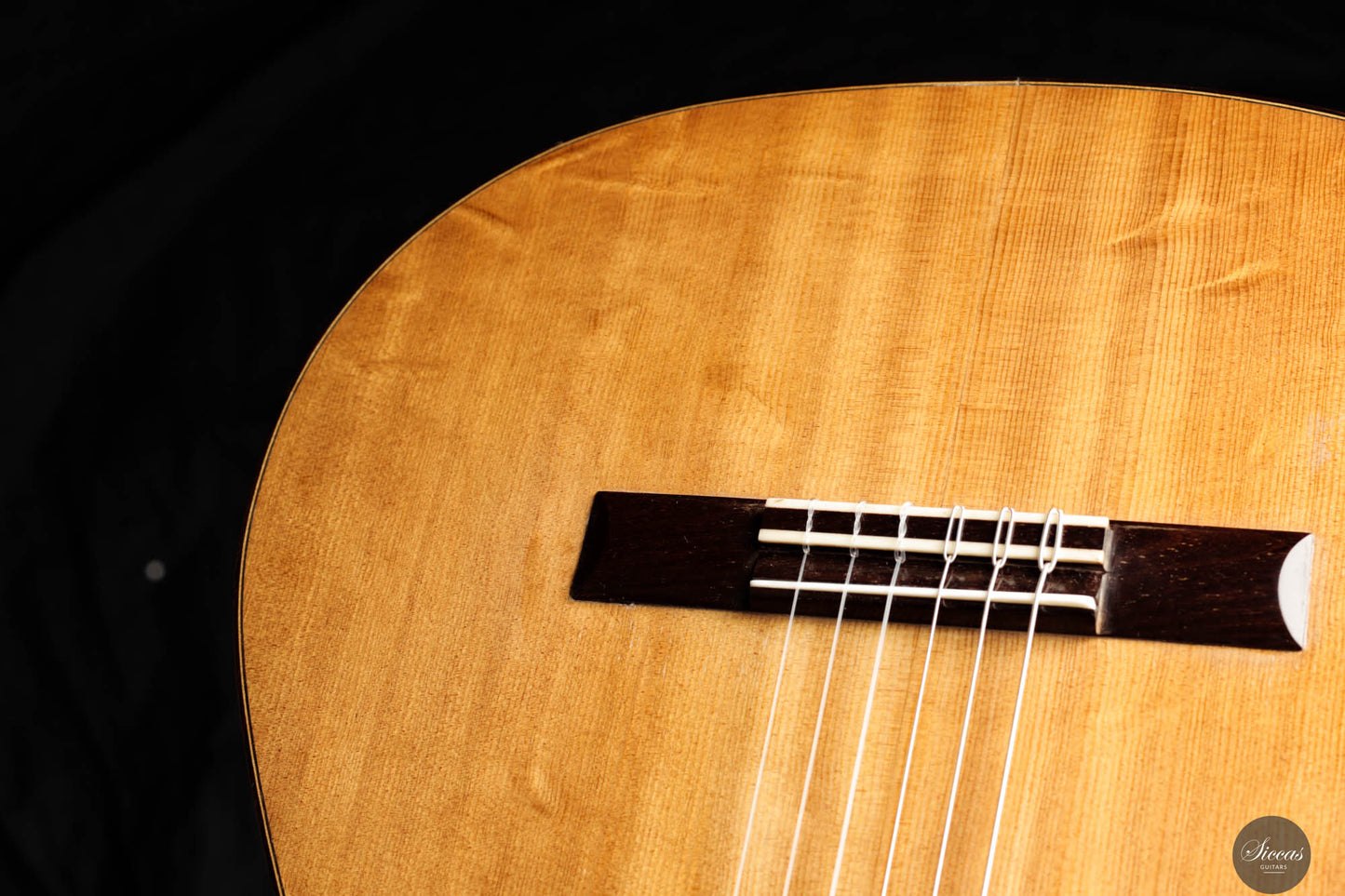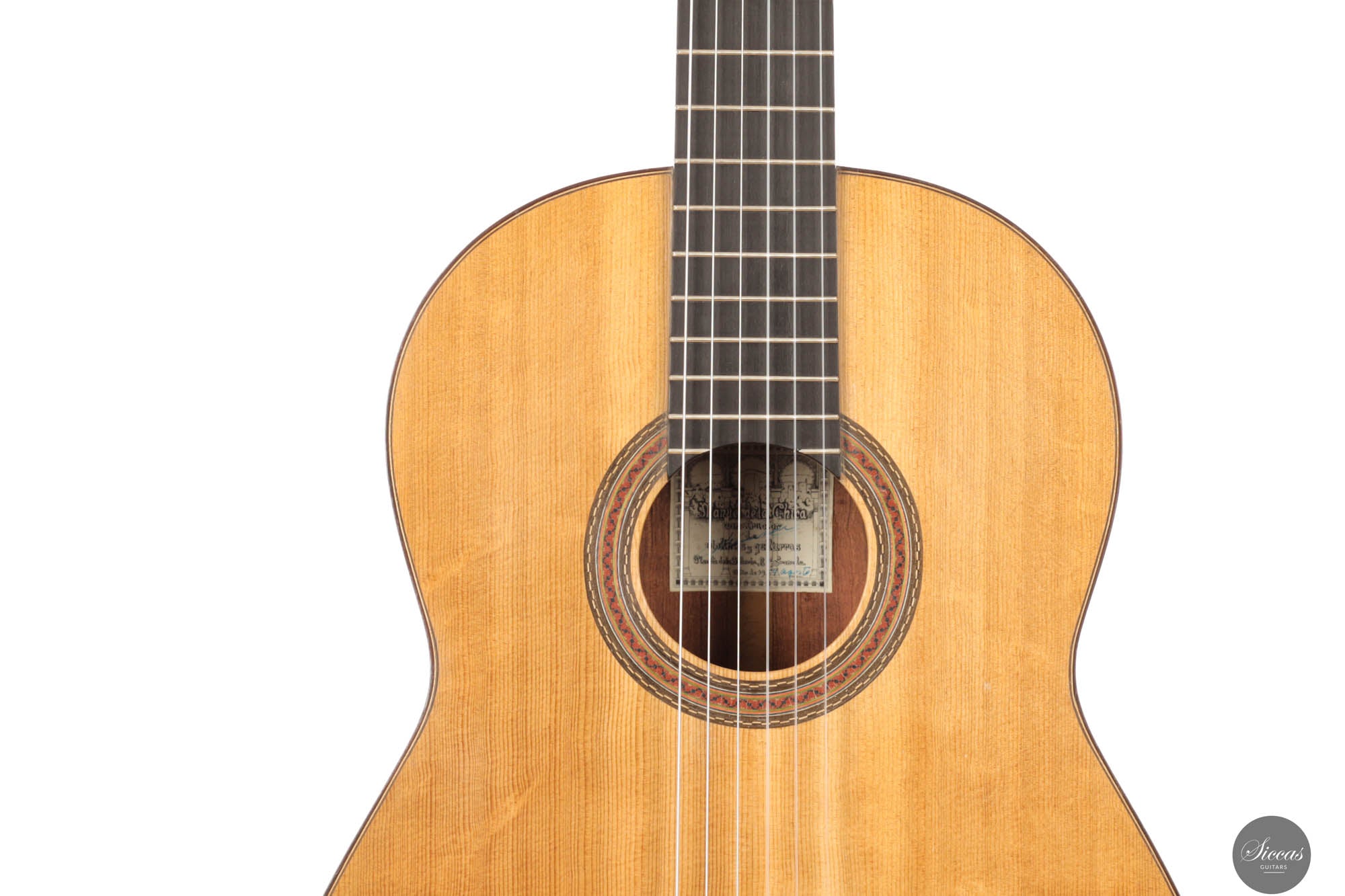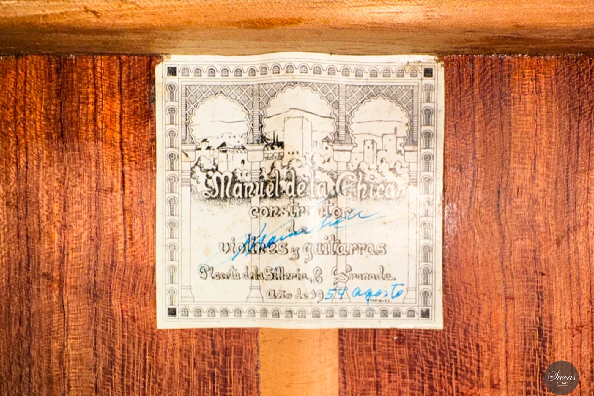 Manuel De La Chica (1911-1998) ist bis heute einer der wichtigsten Gitarrenbauer aus Granada. Er war ein Autodidakt, der in den 1930er Jahren die Gitarren von Santos Hernandez studierte und reproduzierte. Später verbrachte er einige Zeit in der Werkstatt von Pepe de la Alhambra, der mit Benito Ferrer zusammenarbeitete, bevor er seine eigene Werkstatt gründete. Leider musste er sich 1973 wegen gesundheitlicher Probleme, die durch das Einatmen von Staub und Chemikalien verursacht wurden, zurückziehen.
