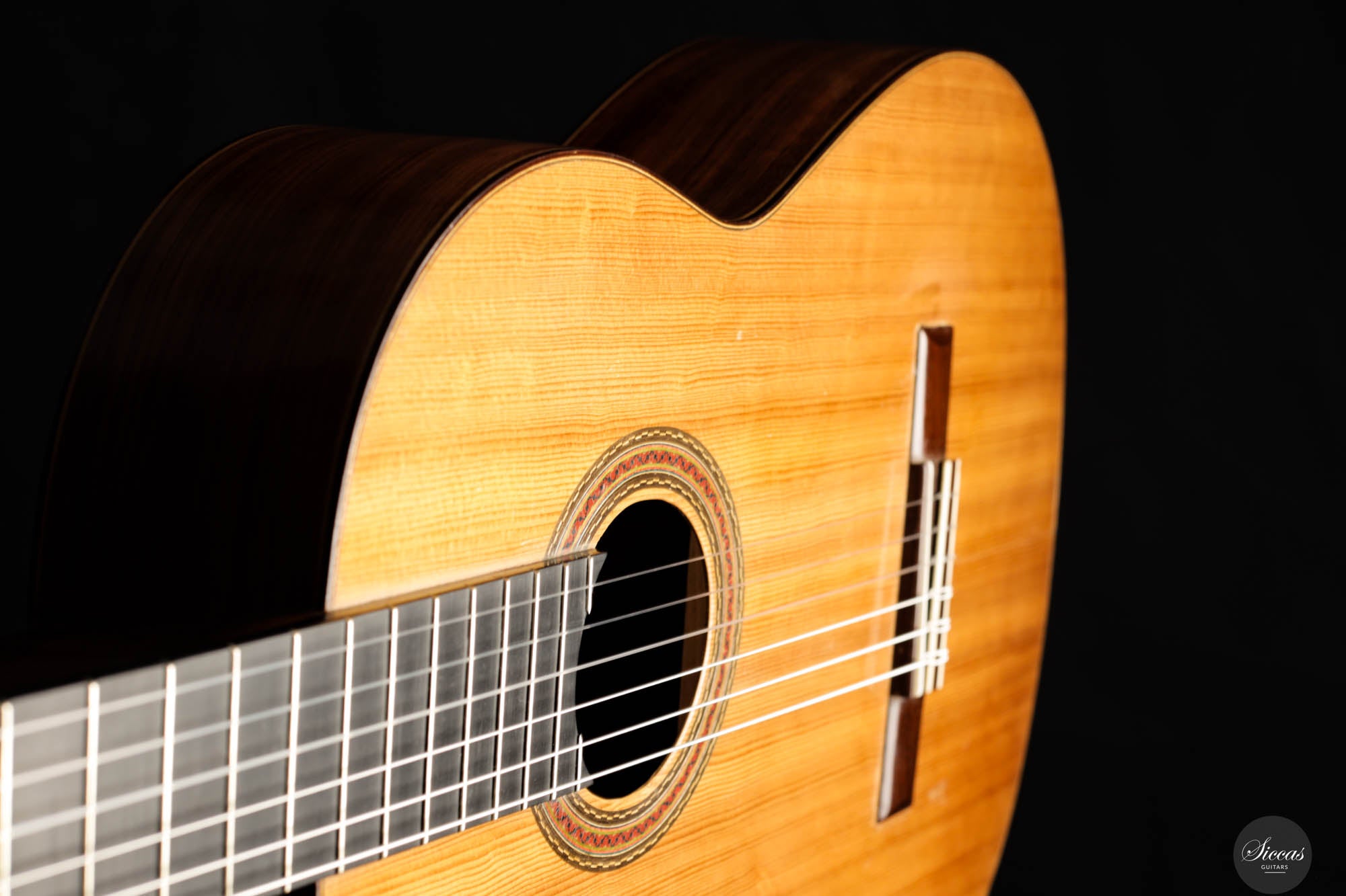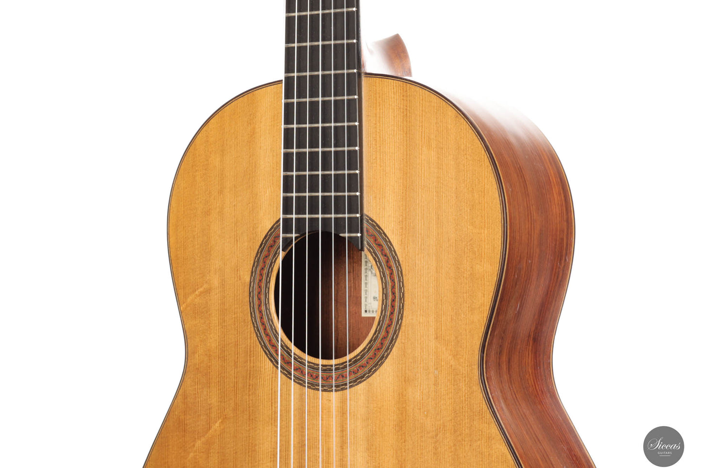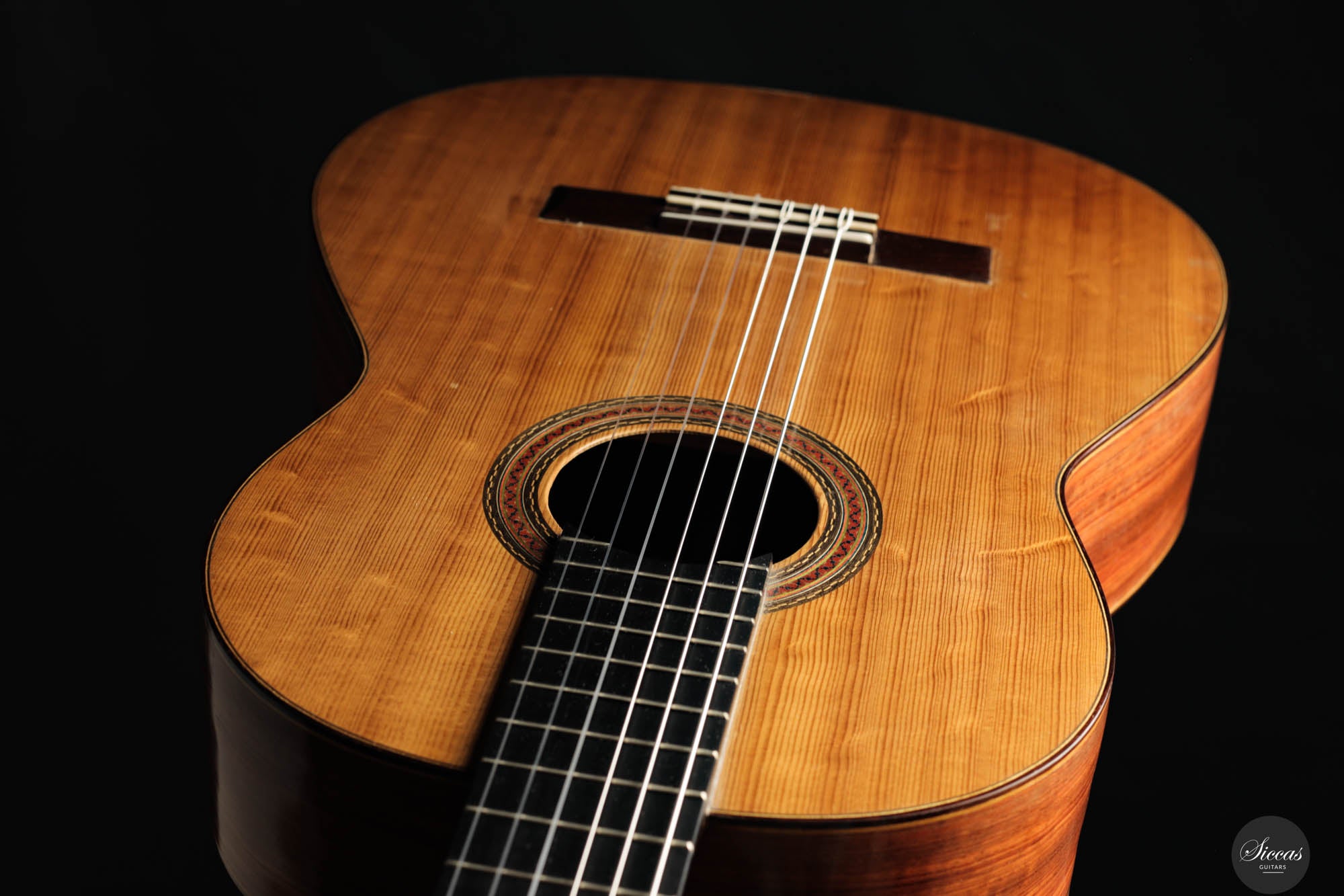 Manuel De La Chica (1911-1998) ist bis heute einer der wichtigsten Gitarrenbauer aus Granada. Er war ein Autodidakt, der in den 1930er Jahren die Gitarren von Santos Hernandez studierte und reproduzierte. Später verbrachte er einige Zeit in der Werkstatt von Pepe de la Alhambra, der mit Benito Ferrer zusammenarbeitete, bevor er seine eigene Werkstatt gründete. Leider musste er sich 1973 wegen gesundheitlicher Probleme, die durch das Einatmen von Staub und Chemikalien verursacht wurden, zurückziehen.
