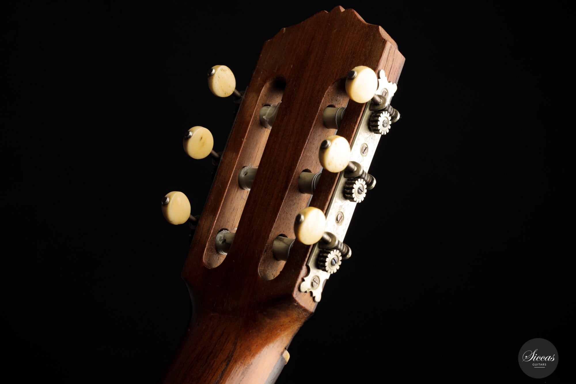Das Design von Manuel Ramirez ist nüchtern, aber dennoch präzise und zart, mit gerade so viel Ausarbeitung um auch die Qualität des Holzes. Darüber hinaus ist Manuel Ramirez einer der ersten Gitarrenbauer in Madrid, der das Erbe von Antonio de Torres (1817-1892) sowohl in Bezug auf die Ästhetik als auch auf den Klang wirklich versteht. Aus den vielen Antonio de Torres-Gitarren, die mit dem Reparaturetikett von Manuel Ramirez versehen sind, geht hervor, dass Ramirez die Gitarren von de Torres bei vielen Gelegenheiten studiert hat. Das wahre Genie ist Ramirez' Fähigkeit, deren Wesen zu erfassen und es auf seine Weise durch seine Gitarren auszudrücken. Das Ergebnis: Manuel Ramirez' Instrumente sind gut proportionierte Konzertgitarren in voller Größe mit einem ansprechenden, tief gestimmten Resonanzboden, einem reichen, komplexen Klang und hervorragender Handwerkskunst.