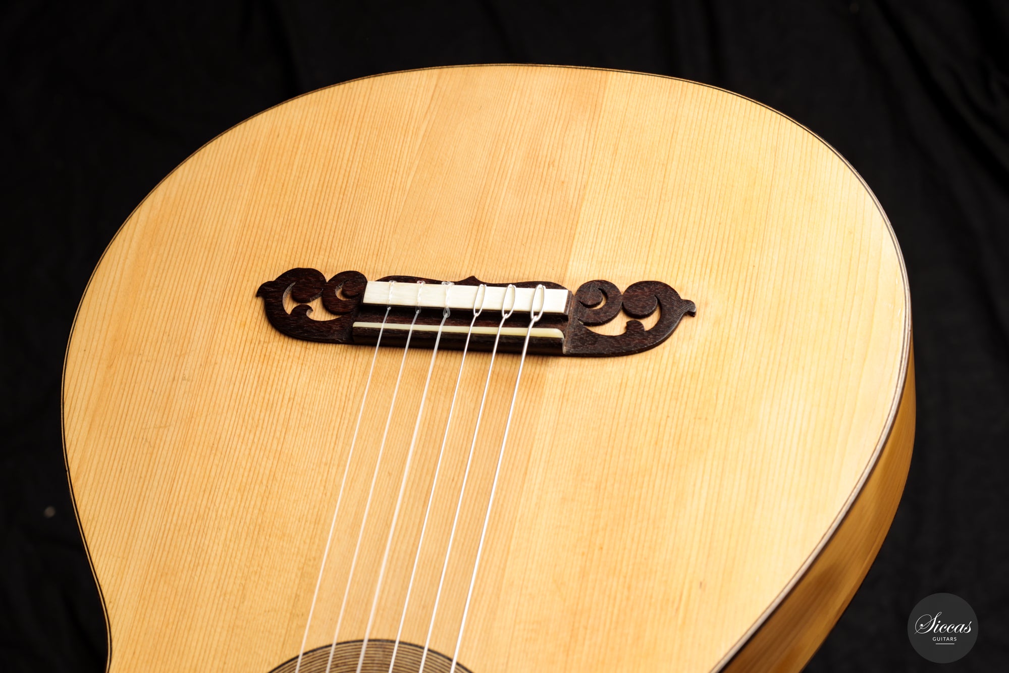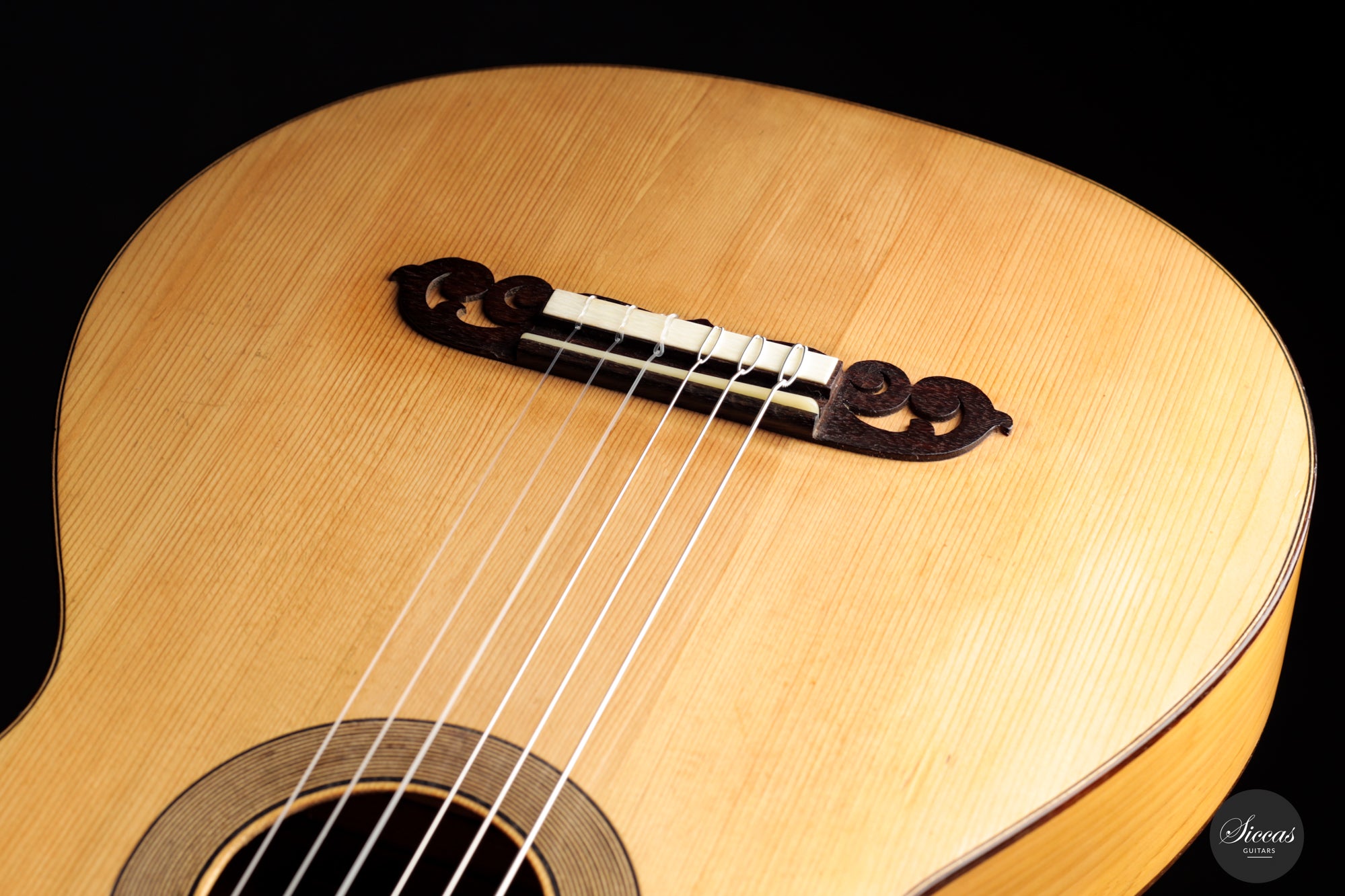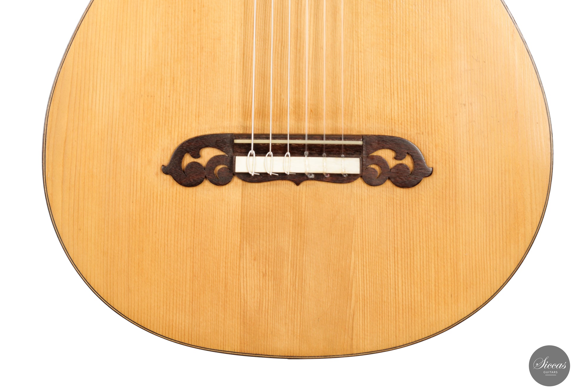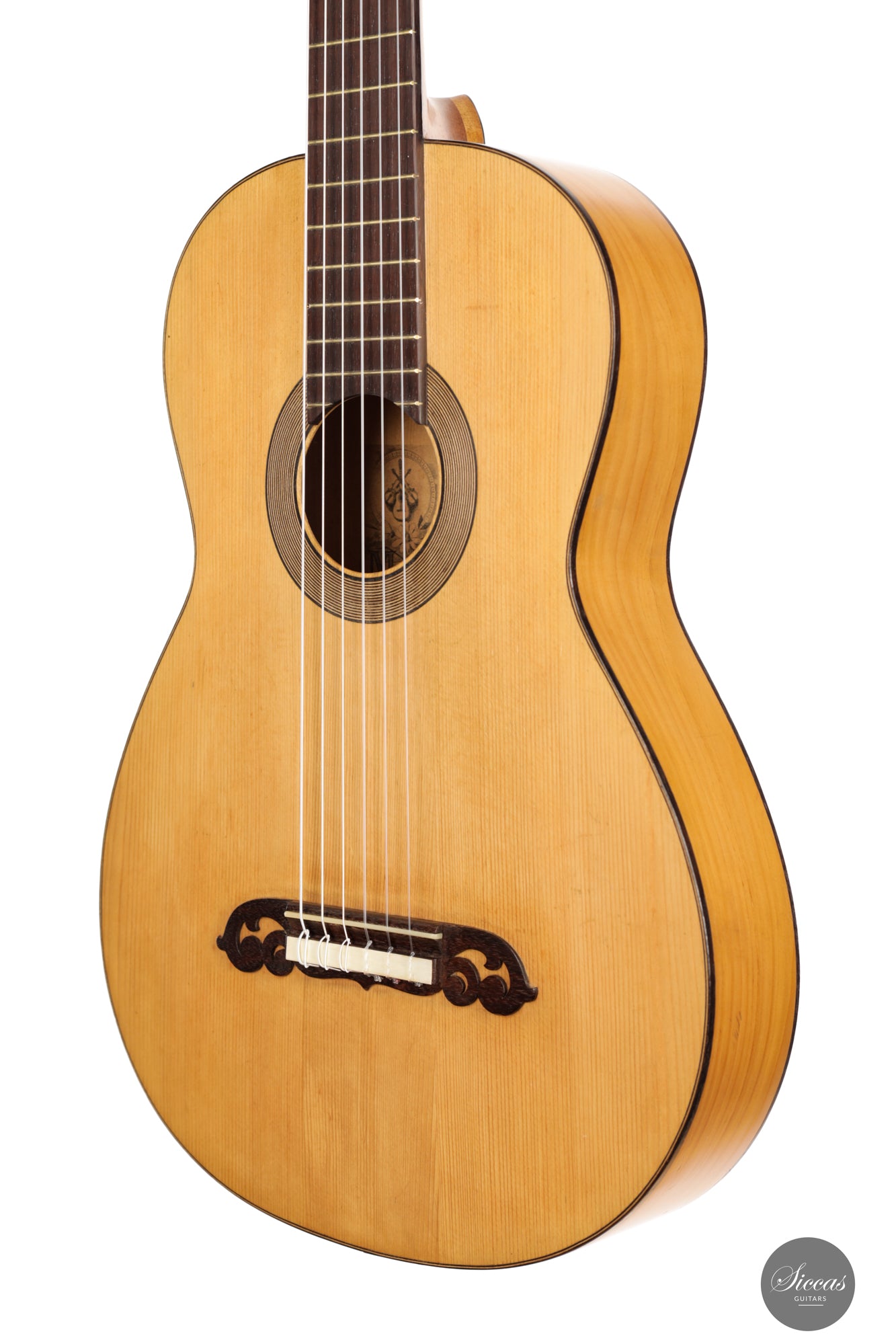 Das Konzept von Manuel Ramirez ist nüchtern, aber dennoch von präziser und filigraner Art, mit einem Maß an Raffinesse, das es einerseits edel erscheinen lässt, andererseits aber auch genügend Leerraum lässt, um die Qualität des Holzes zu bewundern und den Standard für die nachfolgenden Generationen zu setzen. Darüber hinaus war er einer der ersten Gitarrenbauer in Madrid, der das Erbe von Antonio de Torres (1817-1892) sowohl in Bezug auf die Ästhetik als auch auf den Klang vollständig erkannt hat. Aus den vielen Torres-Gitarren, die heute noch mit dem Reparaturetikett von Manuel Ramirez versehen sind, geht hervor, dass Ramirez die Instrumente von Antonio de Torres bei vielen Gelegenheiten gründlich erkundet hat. Das wahre Genie bestand in Ramirez‘ Fähigkeit, ihr Wesen zu erfassen und es auf seine eigene Weise auszudrücken. Das Ergebnis sind wohlproportionierte Konzertgitarren in voller Größe mit einem reaktionsschnellen, tief gestimmten Klangkörper, einem reichhaltigen, vielschichtigem Ton und hervorragender Handwerkskunst.