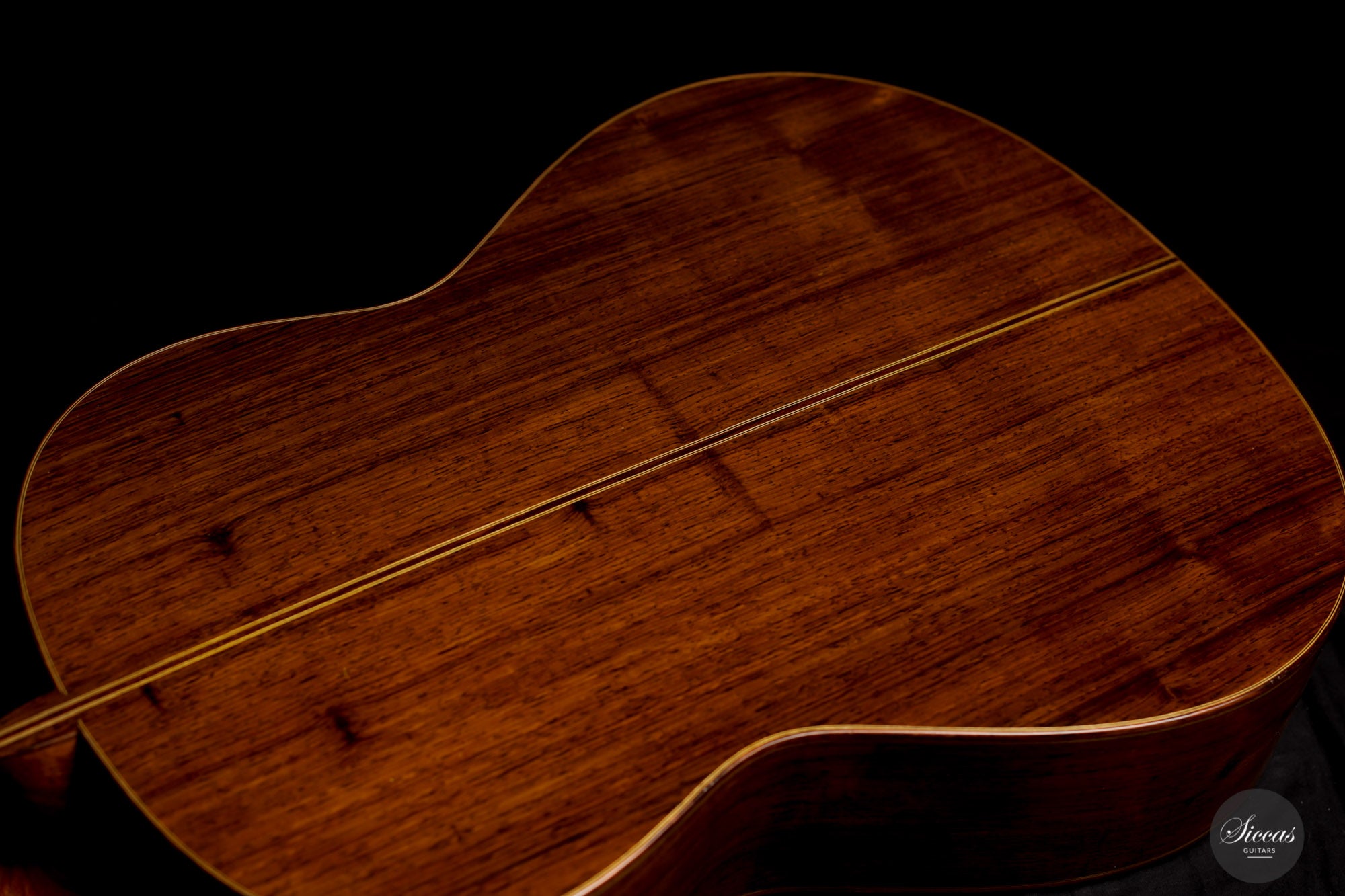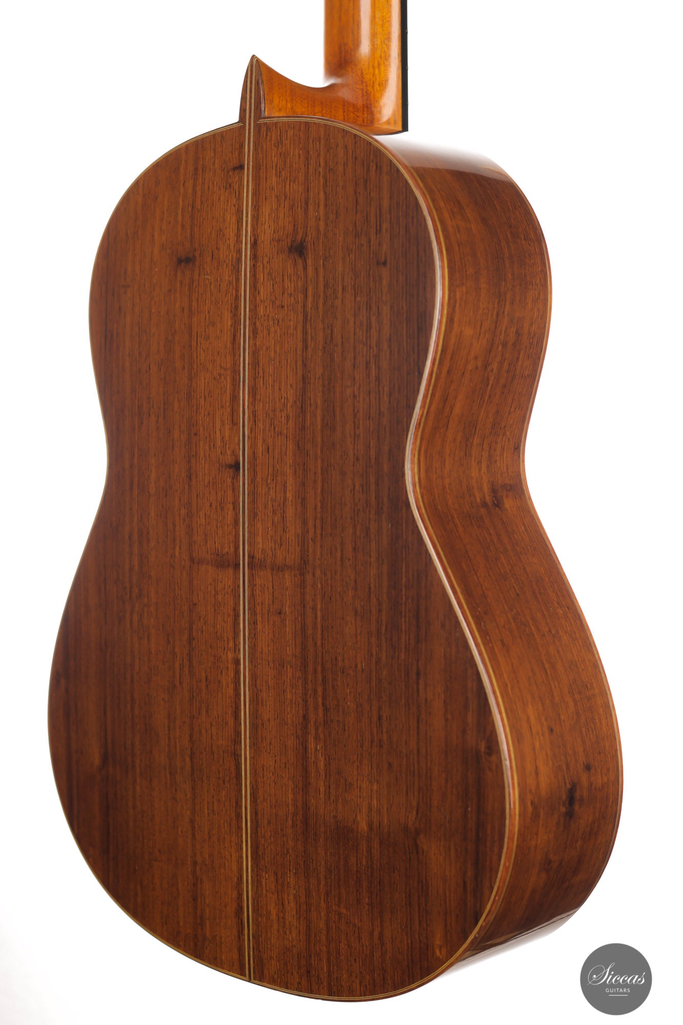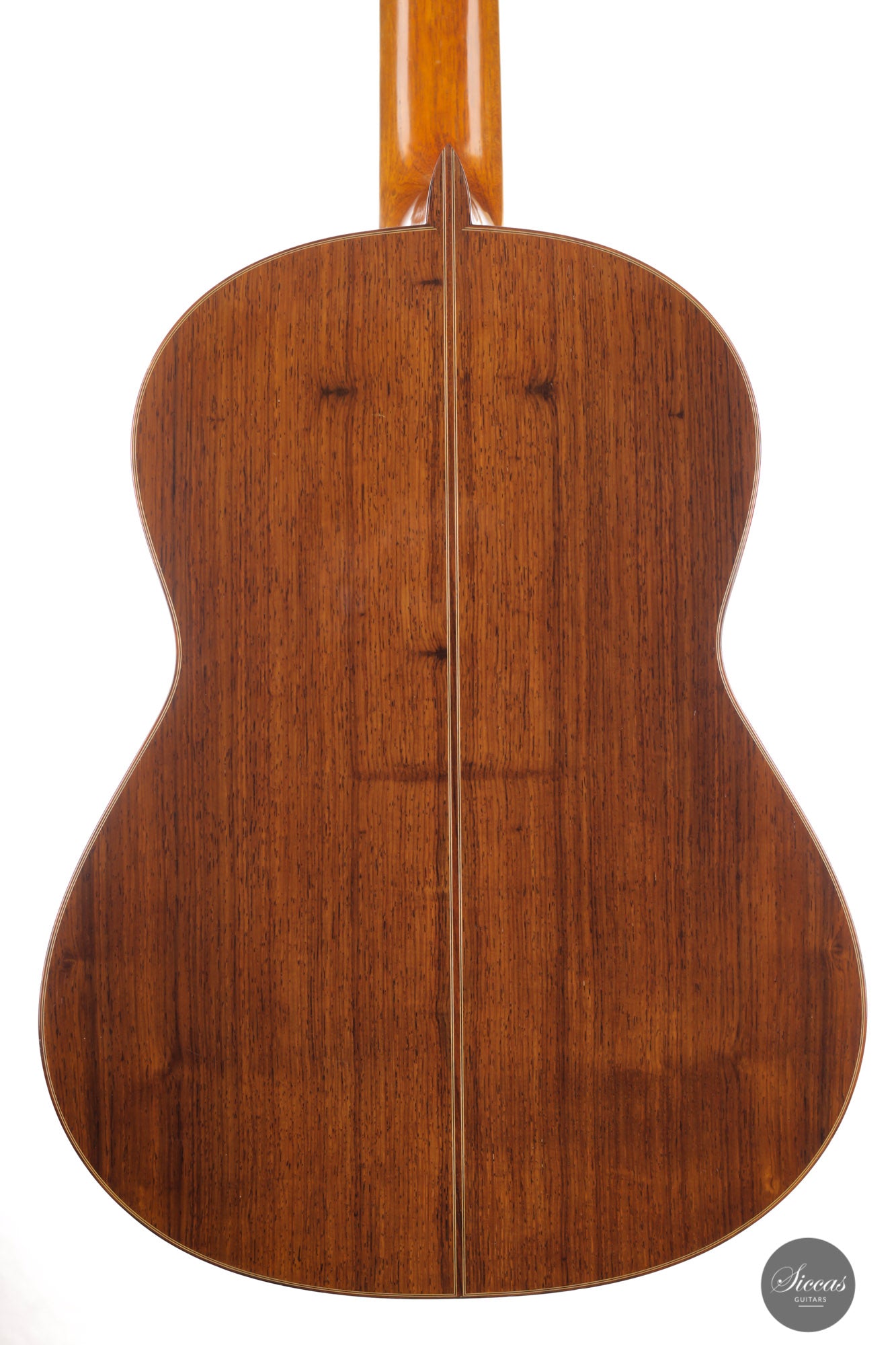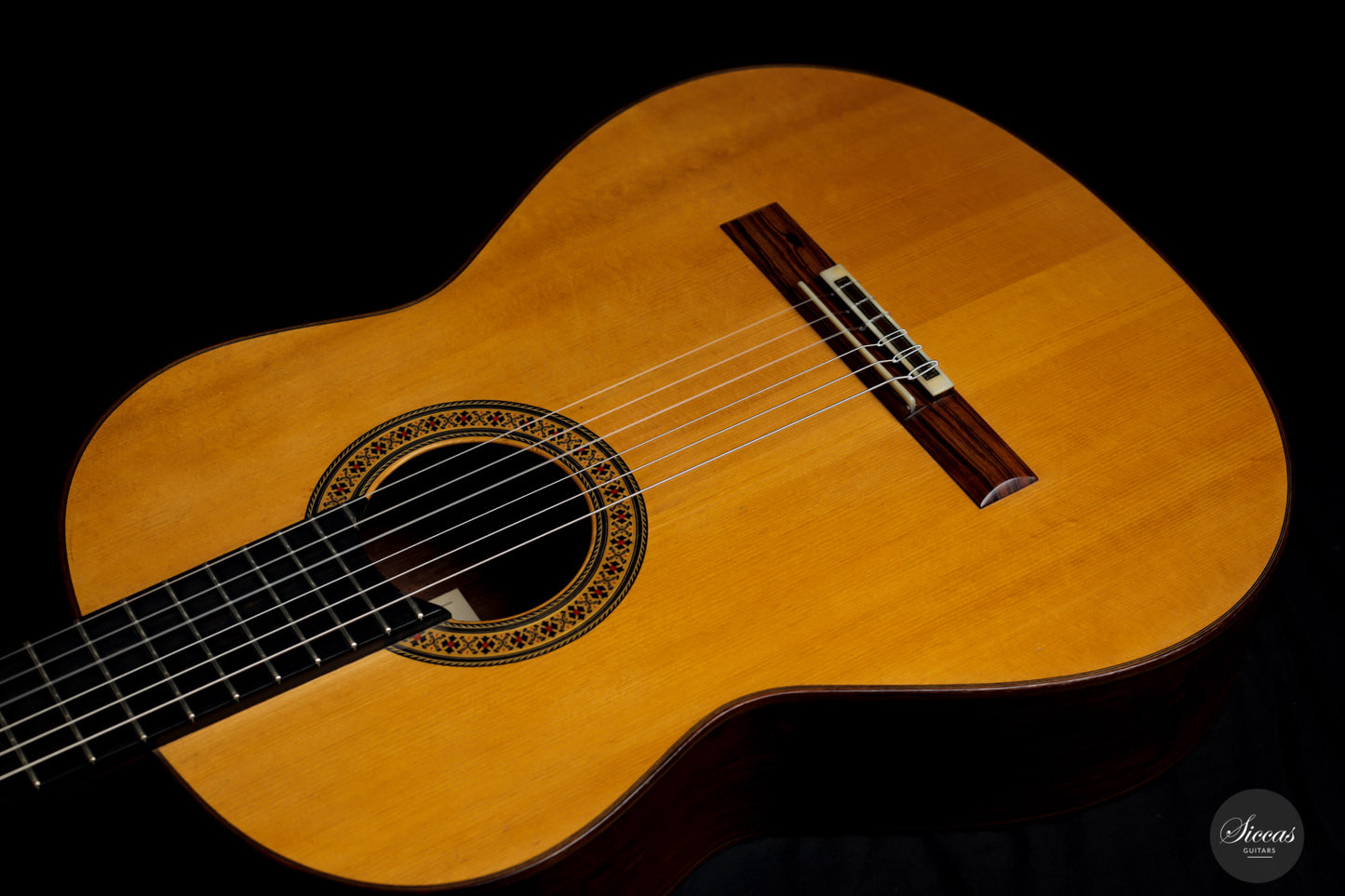 This Manuel Reyes is a very rare example with Brazilian rosewood (CITES certified) from the 1980s, which is in exceptionally good condition. There are only a few light signs of playing visible overall. This guitar is free of cracks and has only a discrete repair to the side rib. The top is made of finely grained spruce that has taken on a light honey color over time. A thin coat of shellac has been applied to the original shellac polish in the past. Excellent Rodgers tuners complete the noble overall appearance of this instrument. This guitar has a fascinating power with a textured, rich timbre and impressive sustain. The direct response and comfortable playability are also much-appreciated qualities for a classical guitar. Finally, the wide range of tonal colors makes this Reyes guitar an excellent and inspiring instrument that doesn't leave anything to be desired.