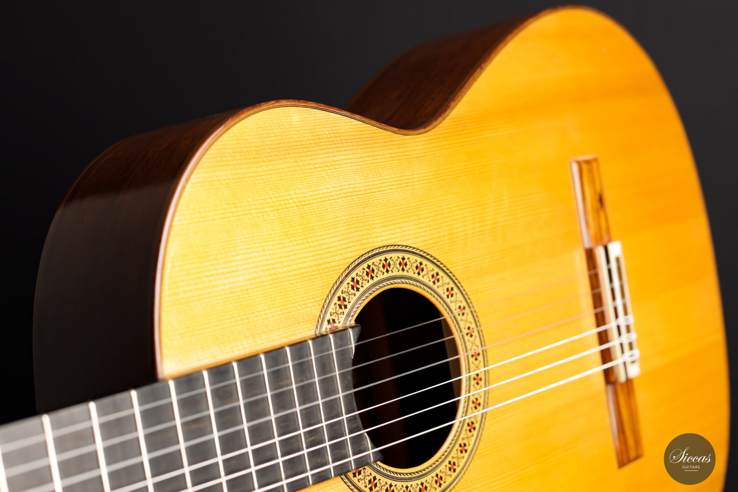 Manuel Reyes was born in Jayena (Granada) on July 18, 1934, and began playing flamenco guitar at a young age. It was only a short time later that he restored his first old flamenco guitars and taught himself the basics of guitar making. Soon after, he built his first guitar himself and since the result was not satisfactory for his needs, he decided to look for someone who could teach him how to build a guitar. He met the flamenco guitar maker Joaquín Sanchez Galisteo, who was willing to teach Reyes. In 1949, Manuel Reyes finally decided to open his own workshop, beginning a career that would bring him to the pinnacle of flamenco guitar makers. Today, Manuel Reyes is one of the most respected flamenco guitar makers, admired for his excellent craftsmanship and the typical Andalusian flamenco sound of his world-class instruments.