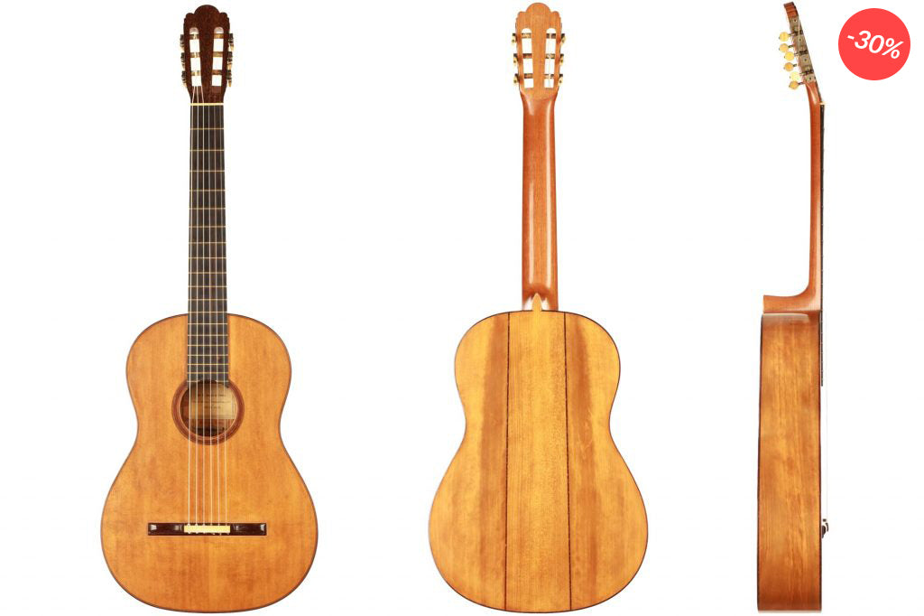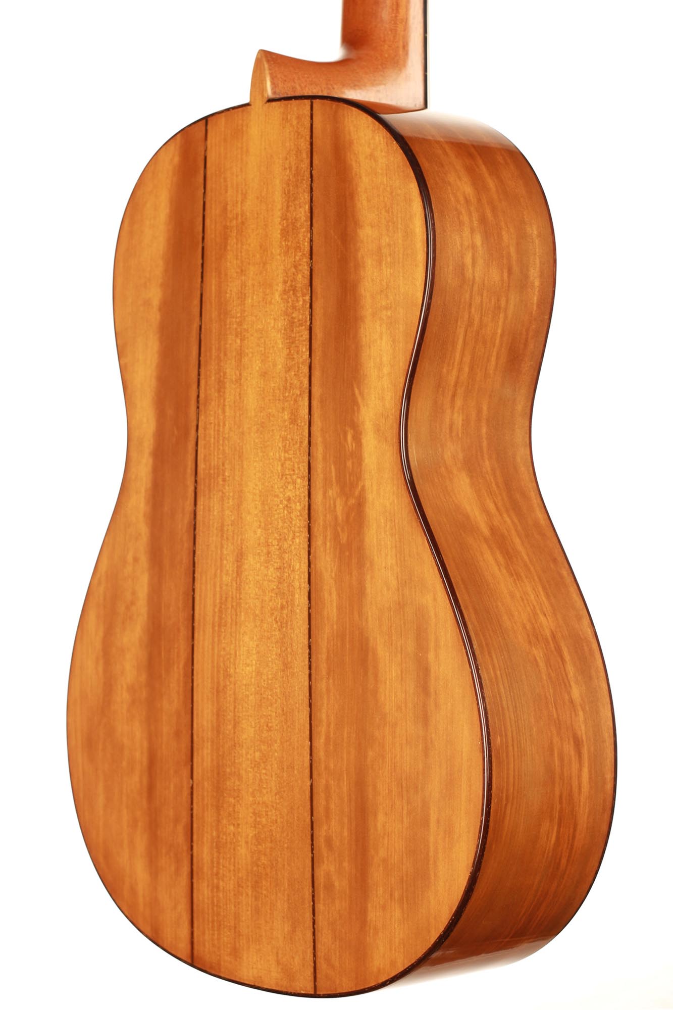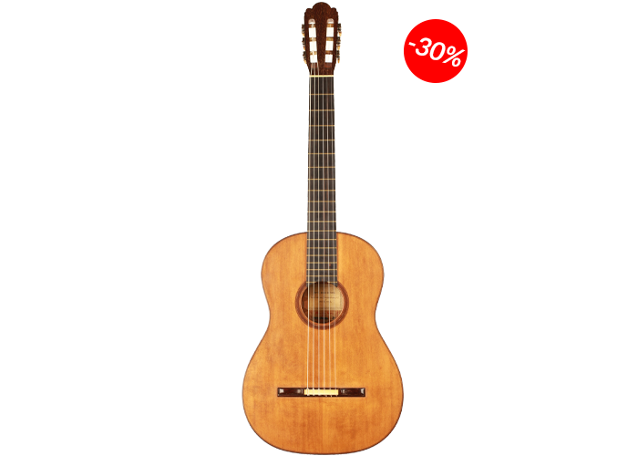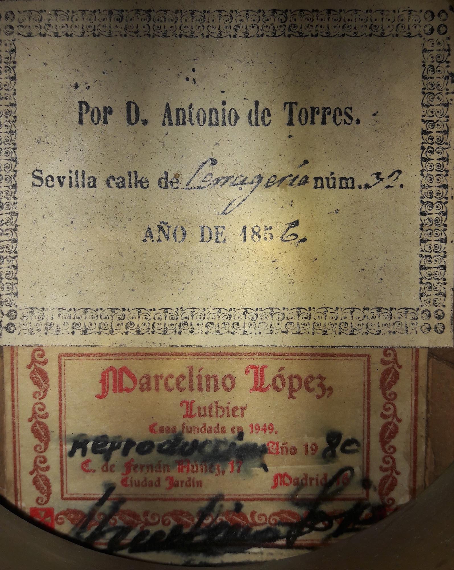 It is one of the most interesting copies made by Marcelino Lopez Nieto: a copy of the famous 1856 Antonio de Torres guitar named “La Leona”. Marcelino Lopez Nieto had the chance to restore the original instrument and built this replica at the same time. This guitar is in perfect condition and very easy to play. It has an authentic deep sound and gives an incredible feeling of resonance to the player. The sweetness of the tone and the inspiring charm of the playing experience make it a perfect instrument for recordings and concerts.