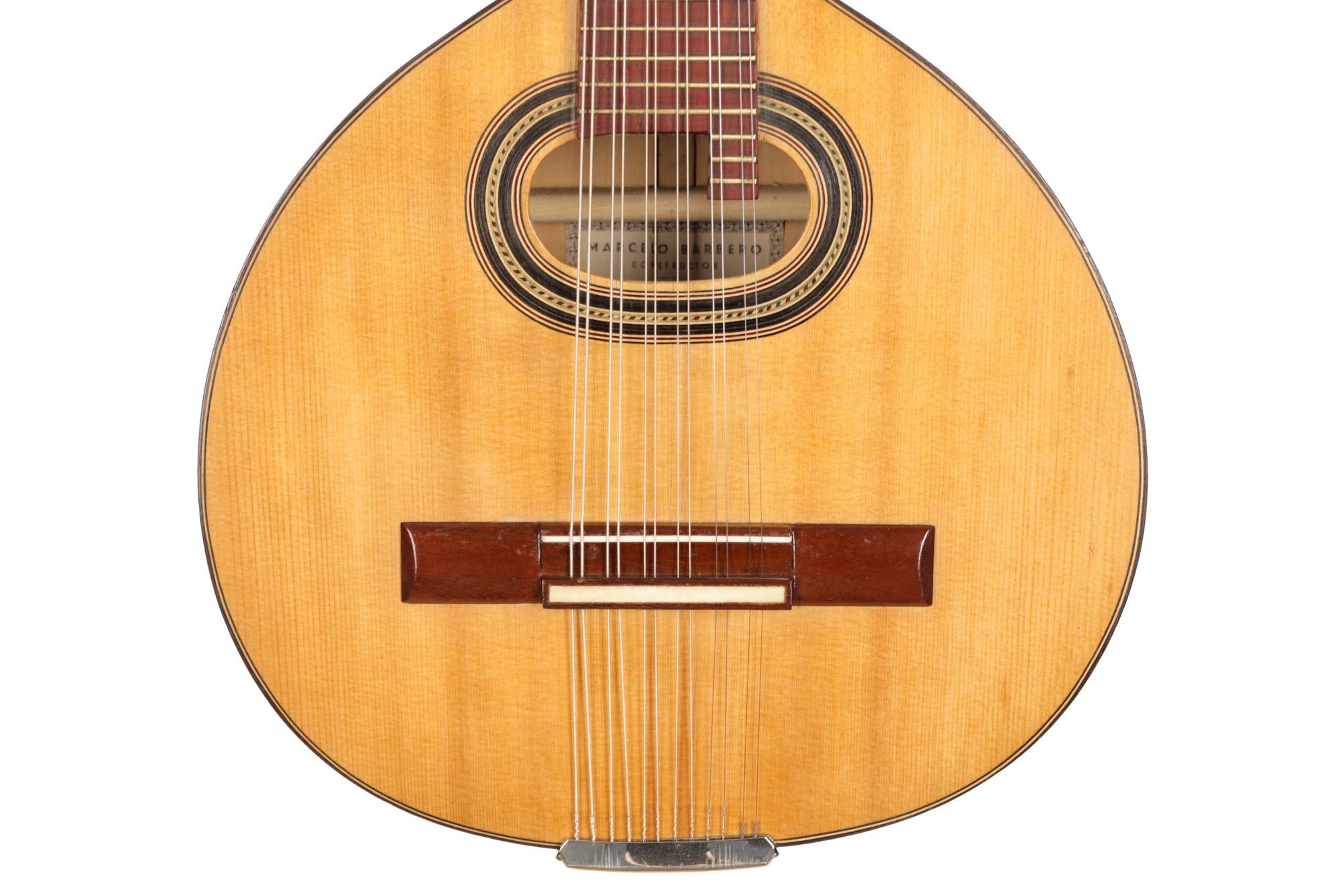 Siehe ein einzigartiges Juwel in der Welt der Musikinstrumente: eine Bandurria vom berühmten Marcello Barbero. Sie verströmt eine Mischung aus Kunstfertigkeit und Handwerk und steht als Beweis für Barberos unvergleichliches Meistertum im Instrumentenbau.