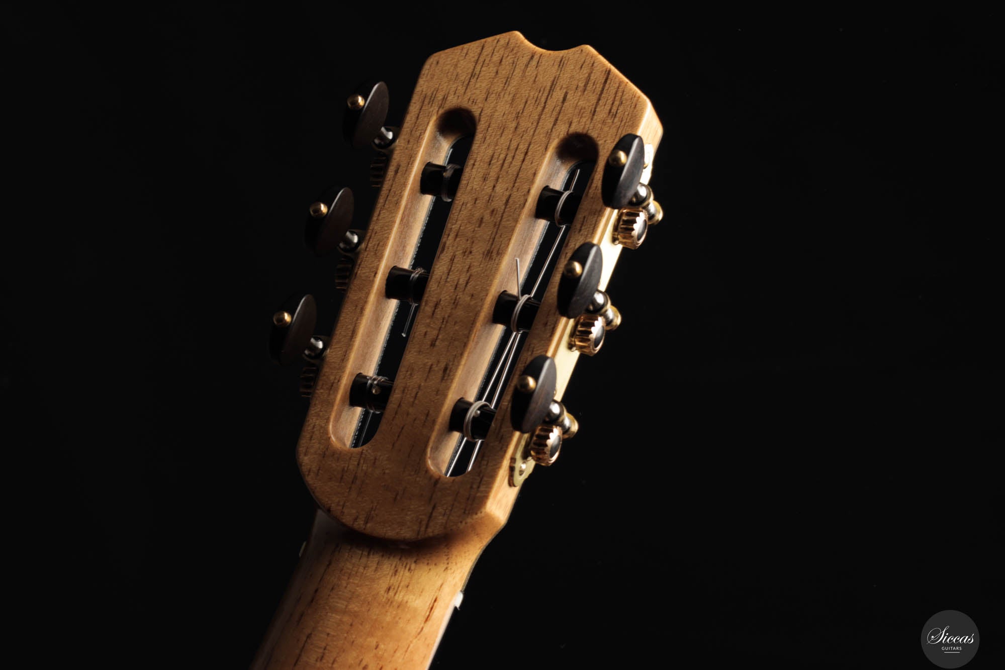 Marco Dissegna ist ein geschätzter Gitarrenbauer, der für seinen traditionellen und zugleich modernen Ansatz im Gitarrenbau bekannt ist. Seine Faszination für Musik und Musikinstrumente inspirierte ihn dazu, eine Karriere im Gitarrenbau anzustreben, mit dem Traum, Instrumente zu schaffen, die die Kunst der Musik zum Leben erwecken können. Seine Reise begann an der Scuola di Liuteria di Pieve di Cento, wo er seine erste Ausbildung erhielt. Danach, von 2011 bis 2015, besuchte er die Civica Scuola di Liuteria di Milano in der Abteilung für Zupfinstrumente. Während dieser Zeit begann Dissegna, seinen eigenen, einzigartigen Ansatz für das Handwerk zu entwickeln. Nach seinem Abschluss hatte er die Möglichkeit, unter der fachkundigen Anleitung von zwei Gitarrenbaumeistern, Aldo Illoota und Lorenzo Lippi, zu arbeiten. Diese Erfahrungen verfeinerten Dissegnas Technik und steigerten seine Wertschätzung für die Kunst des Gitarrenbaus. Im Jahr 2020 wagte Dissegna den Schritt, seine eigene Werkstatt in Mestre, Venedig, zu eröffnen. Hier widmet er sich dem Bau klassischer Gitarren und konzentriert sich auf die Herstellung von Instrumenten, die sowohl komfortabel als auch dynamisch für zeitgenössische Gitarristen sind. Dissegnas Bautechniken sind zwar in der Tradition verwurzelt, spiegeln aber auch die Bedürfnisse des modernen Gitarristen wider. Er lässt sich von den Meistern der Vergangenheit und der Gegenwart inspirieren, wobei er das klassische Timbre der Gitarre beibehält und gleichzeitig zeitgenössische Designelemente einbezieht. Wenn es um Materialien geht, verwendet Dissegna nur das Beste. Seine Vorliebe für Holz erstreckt sich nicht nur auf die Struktur der Gitarre, sondern auch auf ihre Verzierungen. Die Decke ist aus italienischer Fichte, Boden und Zargen aus indischem Palisander, der Hals aus Cedrela und das Griffbrett aus Ebenholz. Diese sorgfältig ausgewählten Materialien führen zu einem Instrument, das nicht nur exquisit aussieht, sondern auch einen Klang von außergewöhnlicher Qualität erzeugt. Der letzte Schliff ist der von Hand aufgetragene Schellack, ein Beweis für Dissegnas Engagement, die altehrwürdigen Traditionen des Gitarrenbaus zu bewahren. Von seiner Faszination für Musikinstrumente bis hin zu seinen unverwechselbaren Bautechniken spiegelt Marco Dissegnas Weg als Gitarrenbauer eine nahtlose Verschmelzung von Leidenschaft, Tradition und Innovation wider.