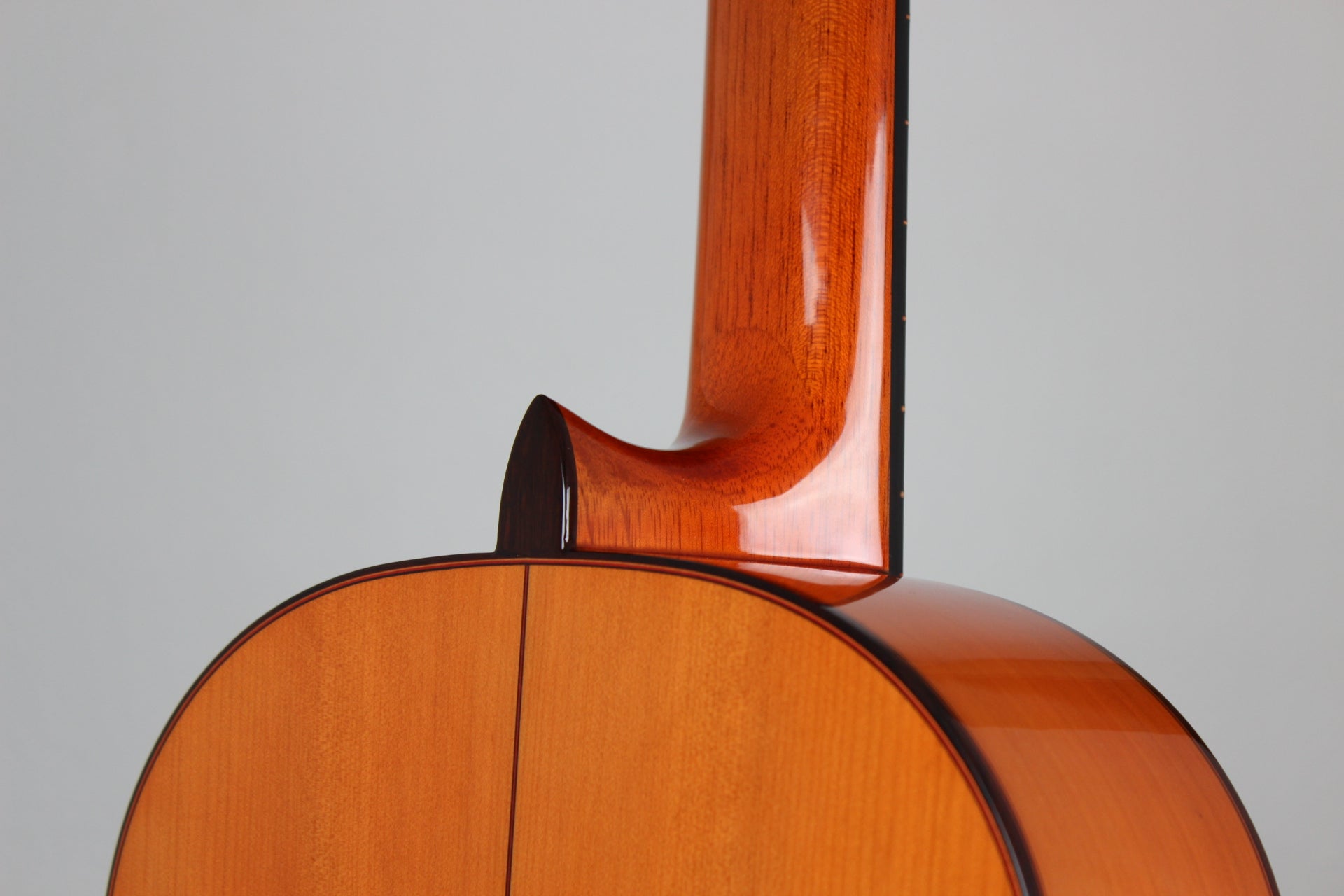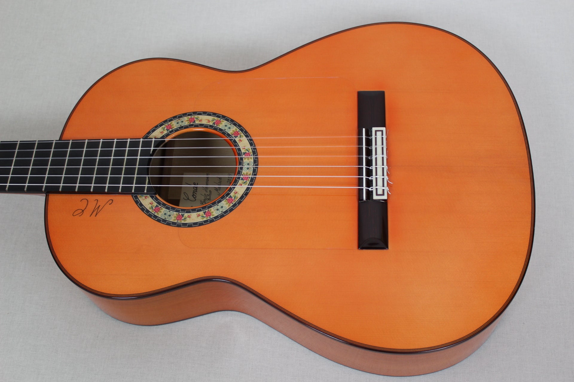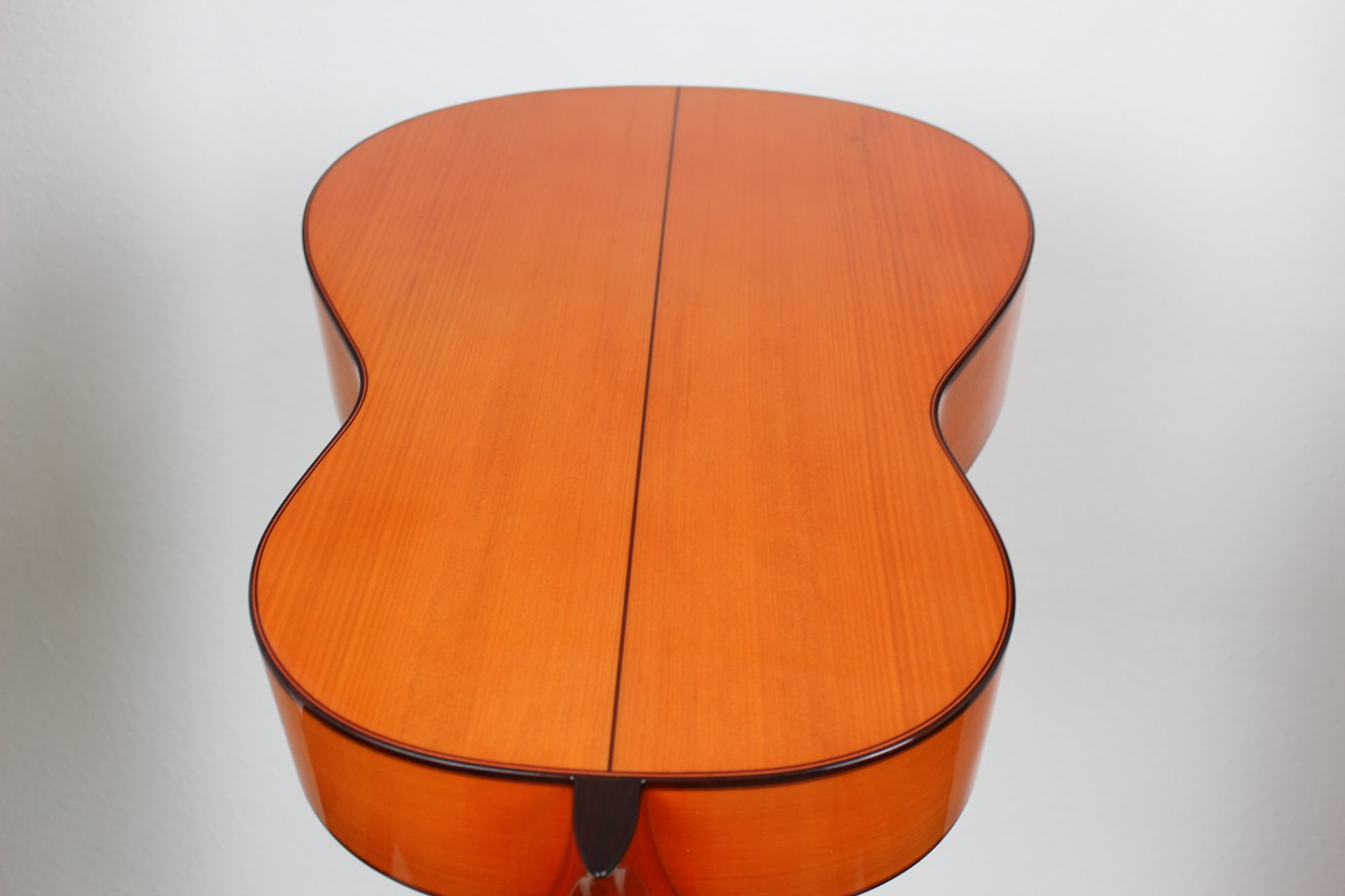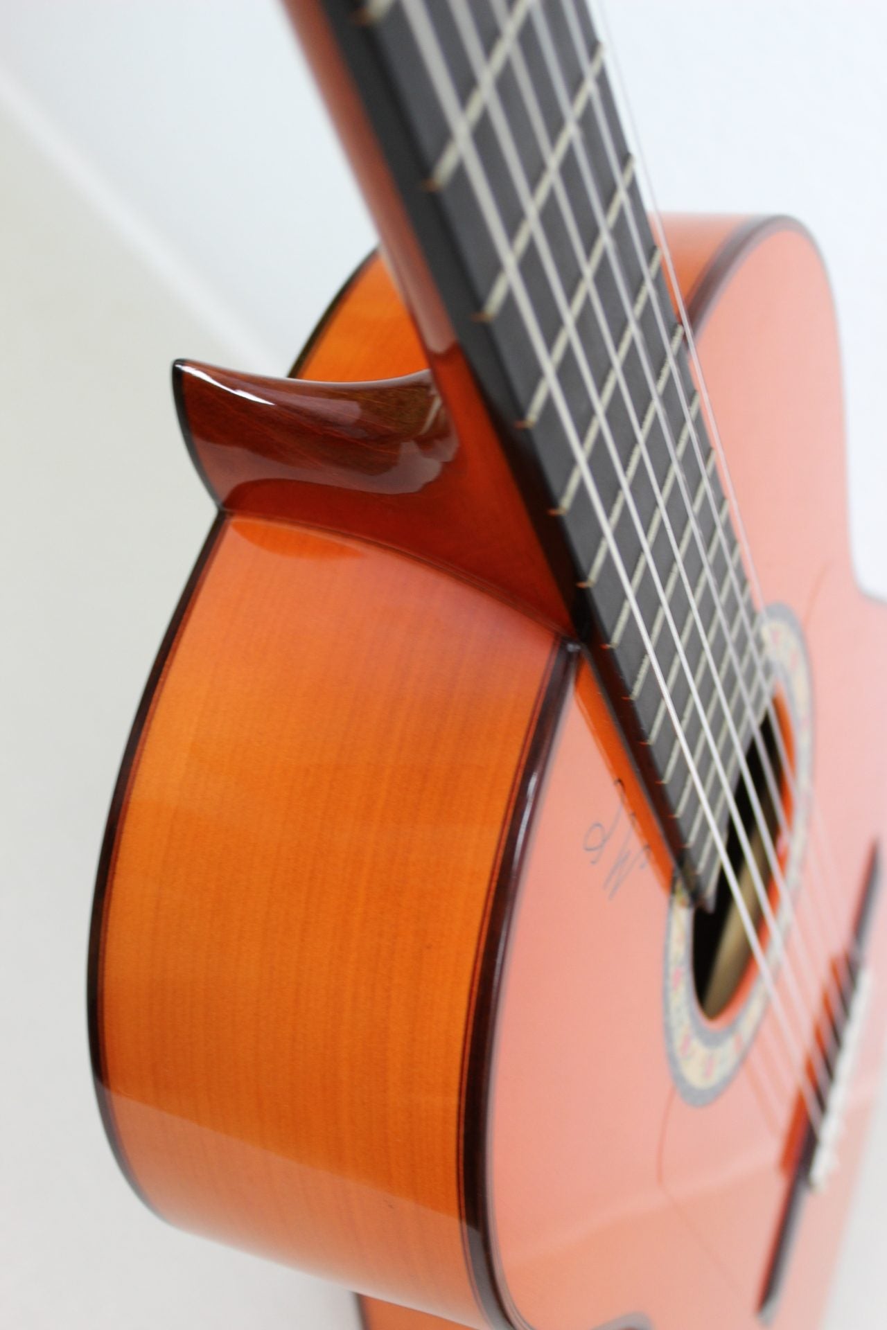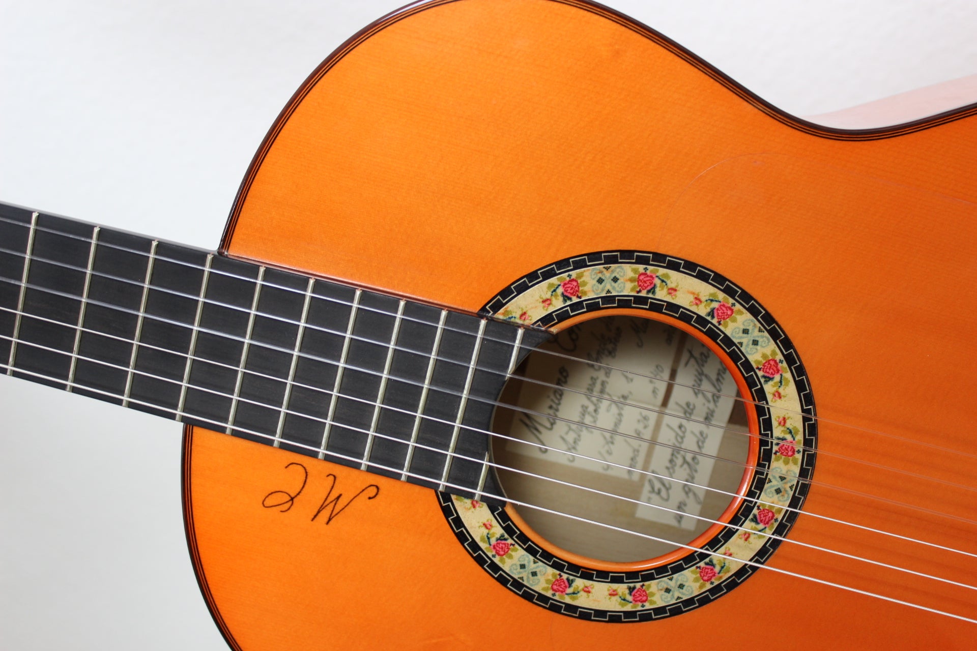 This is a beautiful A26 Cypress Flamenco guitar by Mariano Conde with a “half-moon” head stock and Antigua Domingo Esteso Rosette. The top is made of finest German spruce. About the sound we can say that the guitar has a loud volume and a very dry, percussive and aggressive sound.