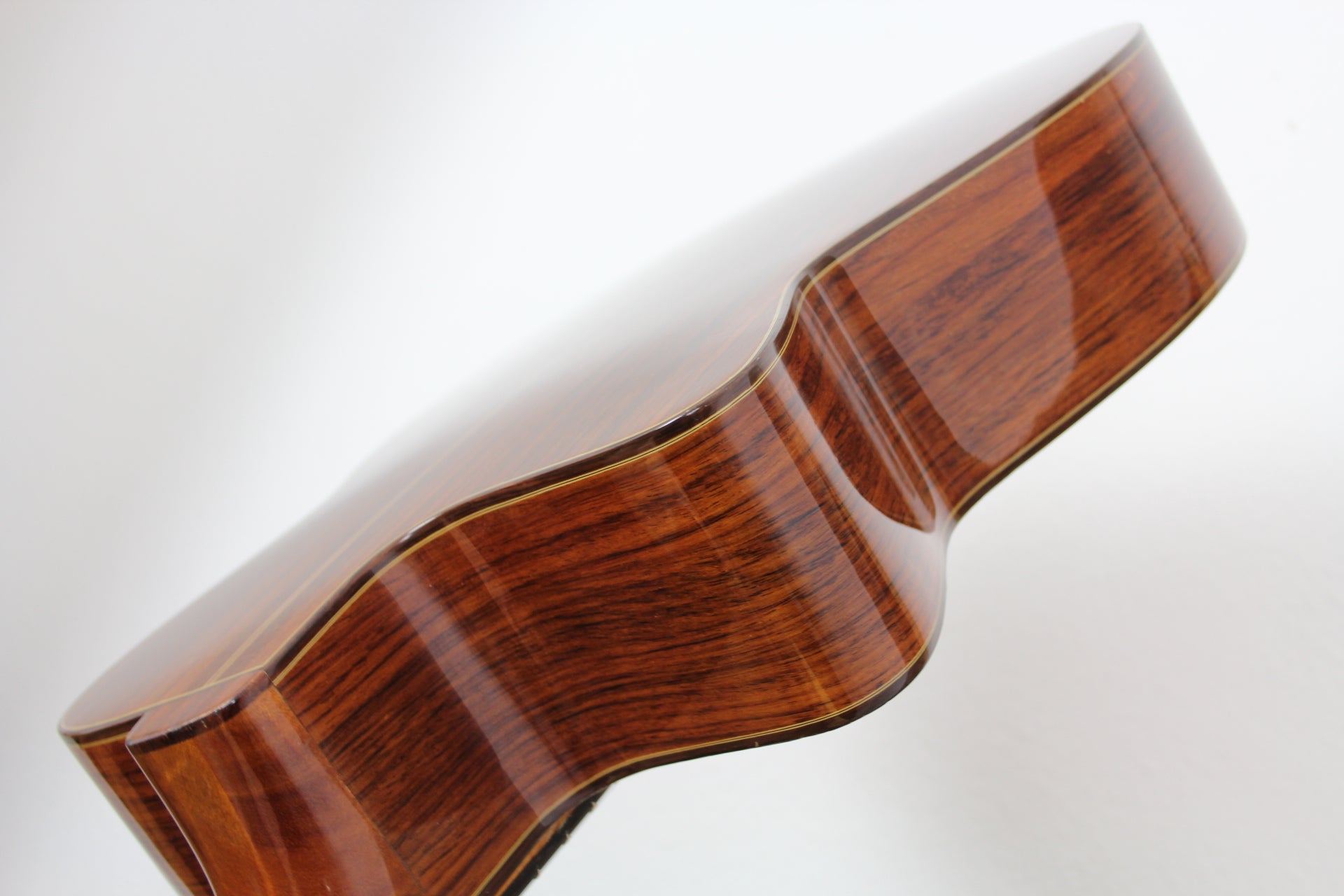 Gitarrenbauer: José Luis RomanillosBaujahr: 1979Decke: SpruceBoden und Zargen: Indian rosewoodDeckenoberfläche: French polishKorpusoberfläche: French polishLuftresonanz: G / G sharpGewicht (g): 1410Mechaniken: RodgersZustand: Excellent