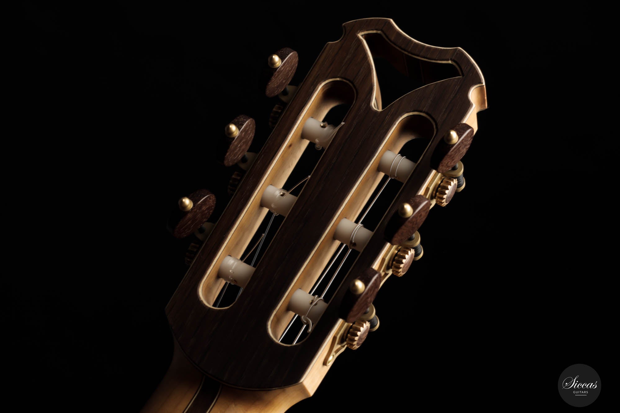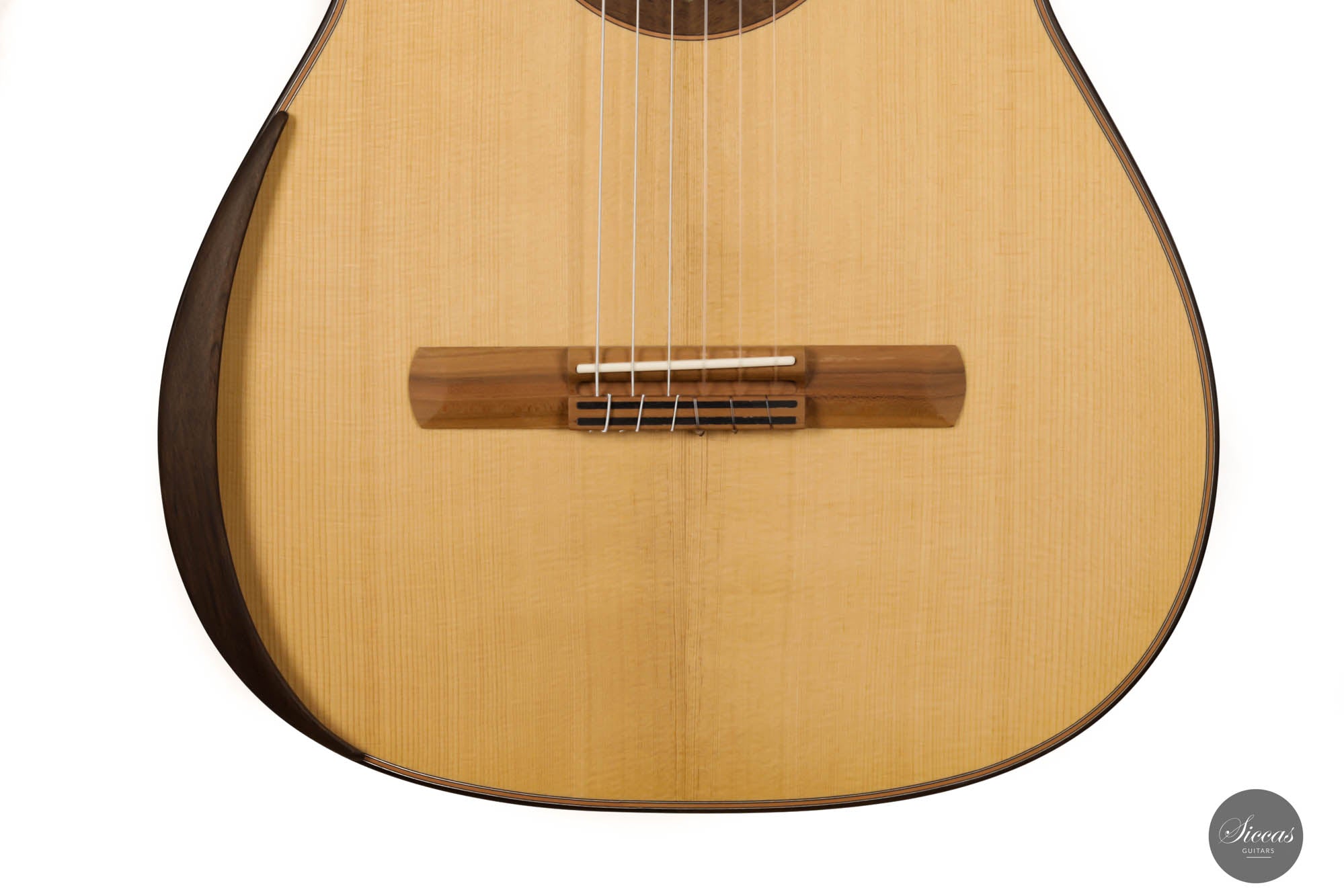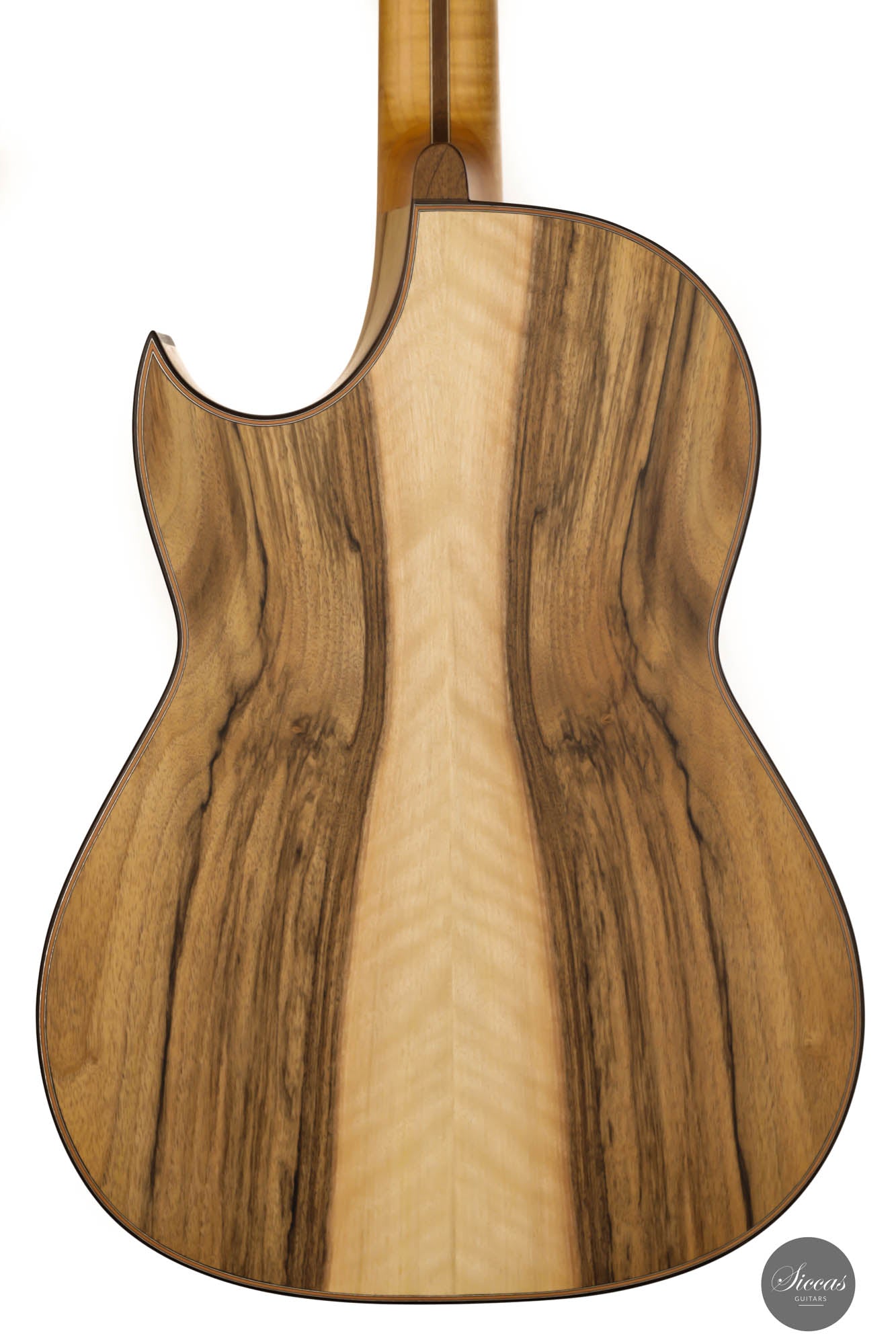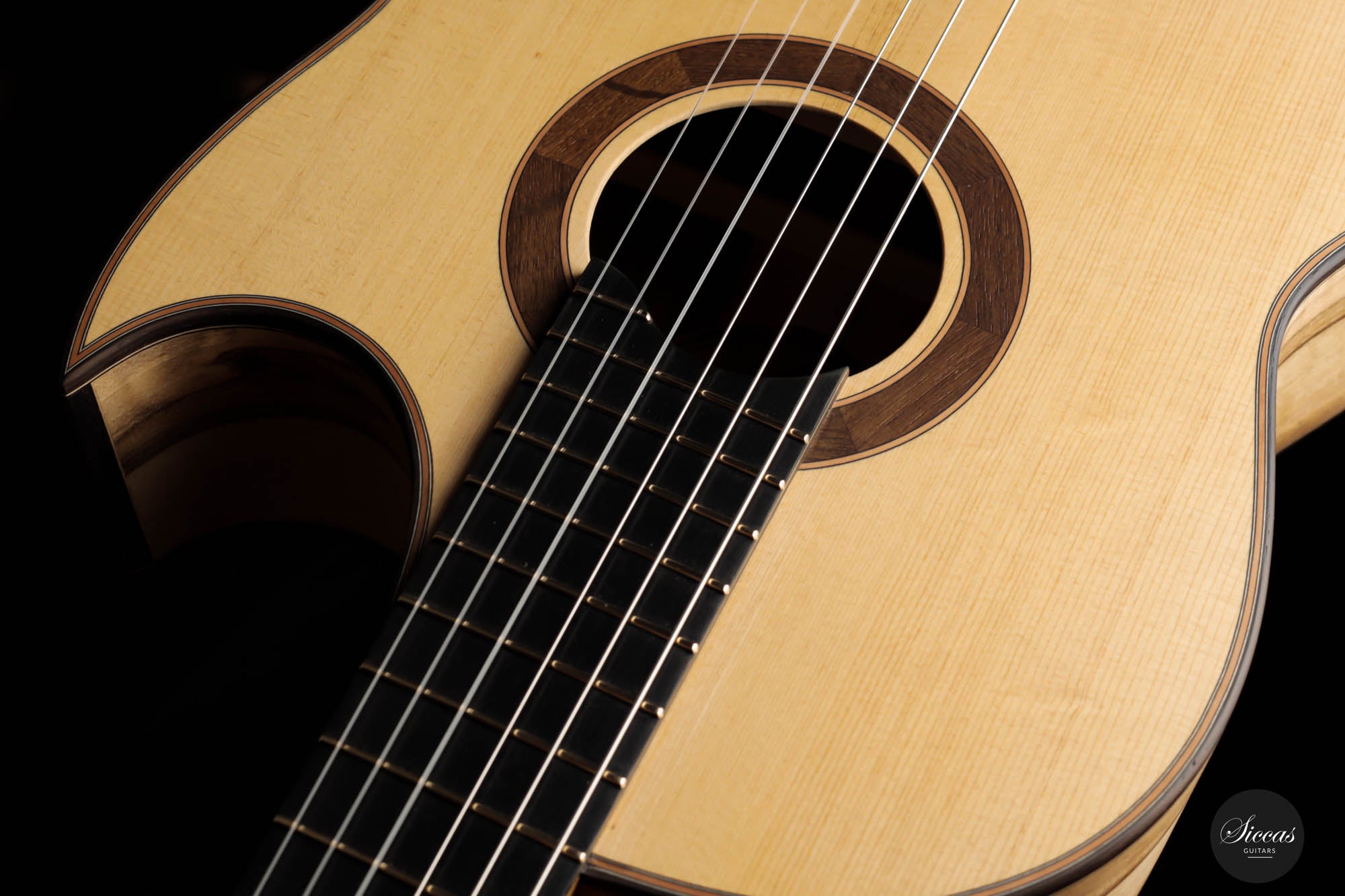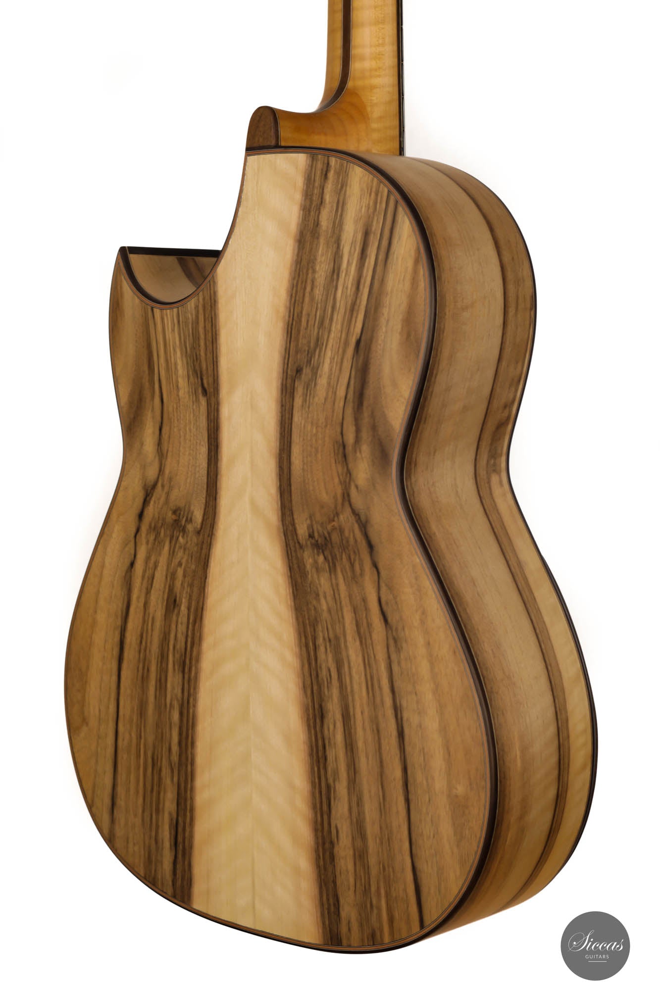 Das Flow-Cut-Modell ist eine Cutaway-Klassikgitarre, die für eine einfache Griffweise und verbesserte Spielbarkeit in den hohen Lagen entwickelt wurde. Das Volumen und die klanglichen Eigenschaften dieser Gitarre sind ideal für anspruchsvolle Improvisationen und Jazzstücke. Dieses schöne Instrument zeichnet sich durch eine einzigartige Auswahl an Hölzern aus: eine wunderschöne Decke aus Thermofichte, kombiniert mit einem Boden und Zargen aus Walnuss. Darüber hinaus hat das Griffbrett einen 12″-Radius, was dieses Instrument außergewöhnlich bequem mit der linken Hand zu spielen macht.