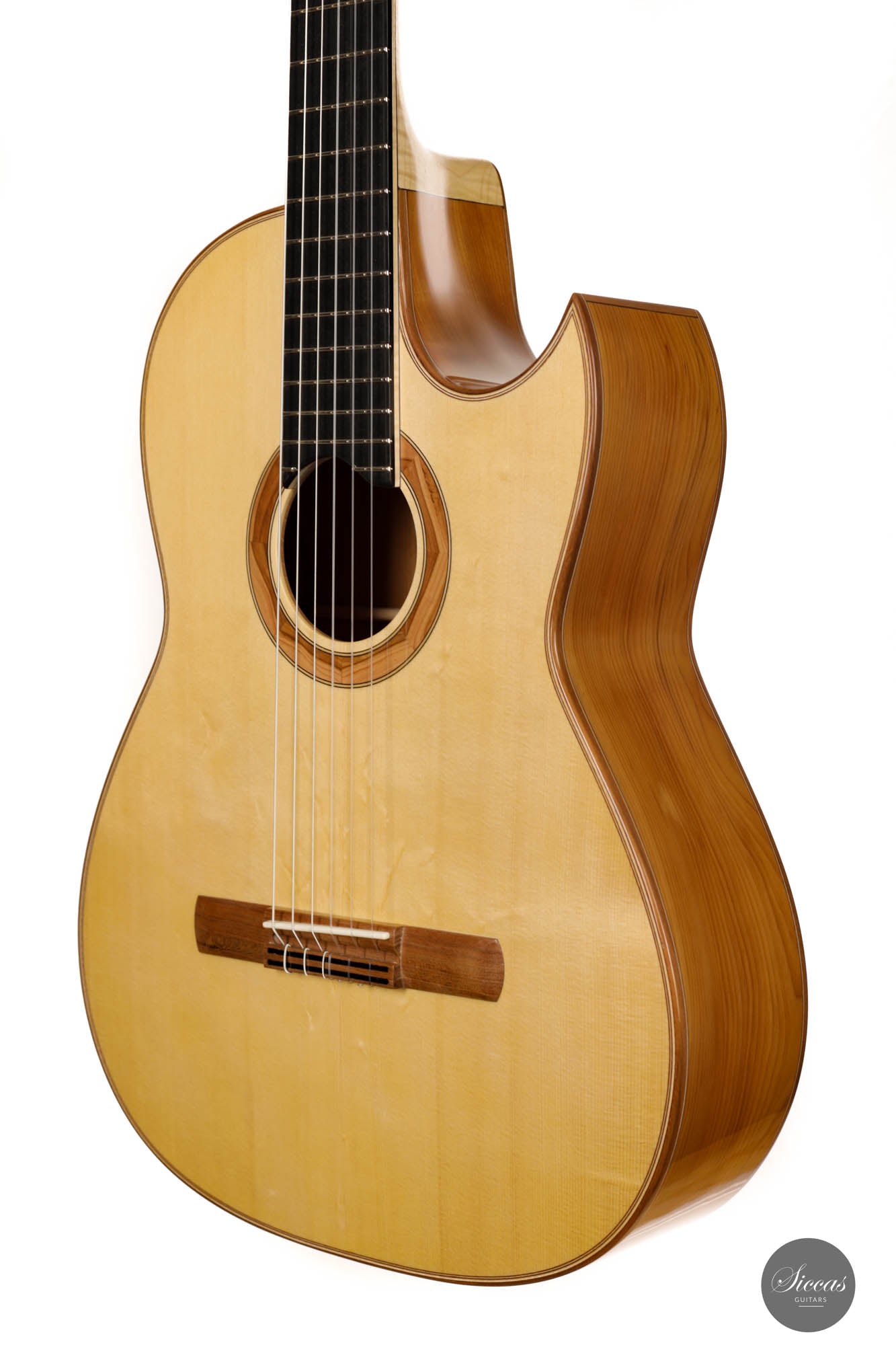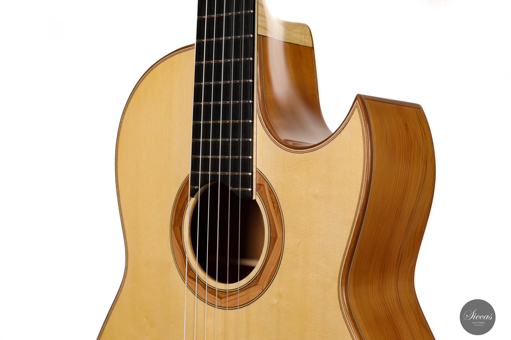 Die brandneue Martin Bretscher-Gitarre ist ein atemberaubend schönes und fachmännisch gefertigtes Instrument, das für fortgeschrittene Musiker entwickelt wurde, die einen hervorragenden Klang und eine hervorragende Spielbarkeit suchen. Das Flow-Cut-Modell ist eine Cutaway-Klassikgitarre, die speziell entwickelt wurde, um ein leichtes Greifen und eine verbesserte Spielbarkeit in den hohen Lagen zu ermöglichen, was sie zu einer idealen Wahl für anspruchsvolle Improvisationen und Jazzstücke macht. Die aus einer einzigartigen Auswahl von Hölzern gefertigte Gitarre verfügt über eine Fichtendecke mit Gitterverstrebungen, die einen reichen, warmen und resonanten Ton erzeugt. Boden und Zargen bestehen aus wunderschönem Eibenholz, das nicht nur zur Ästhetik der Gitarre, sondern auch zu ihren klanglichen Qualitäten beiträgt. Eines der herausragenden Merkmale dieser Gitarre ist ihr Griffbrett, das einen 12″-Radius hat. Dieses einzigartige Design bietet außergewöhnlichen Komfort beim Spielen mit der linken Hand und erleichtert das Erreichen hoher Töne und das Spielen komplexer Akkordfolgen. Zusätzlich zu seinem überragenden Klang und seiner Spielbarkeit ist dieses schöne Instrument auch mit einem passiven Piezo-Tonabnehmersystem AG094 von Fishman ausgestattet. Dieses System fängt den natürlichen akustischen Klang der Gitarre ein und verstärkt ihn, was sie perfekt für Live-Auftritte oder Aufnahmesessions macht. Mit diesem fortschrittlichen Tonabnehmersystem ist die Martin Bretscher-Gitarre ein wirklich vielseitiges Instrument, das sich für eine Vielzahl von Musikgenres und Auftrittssituationen eignet.