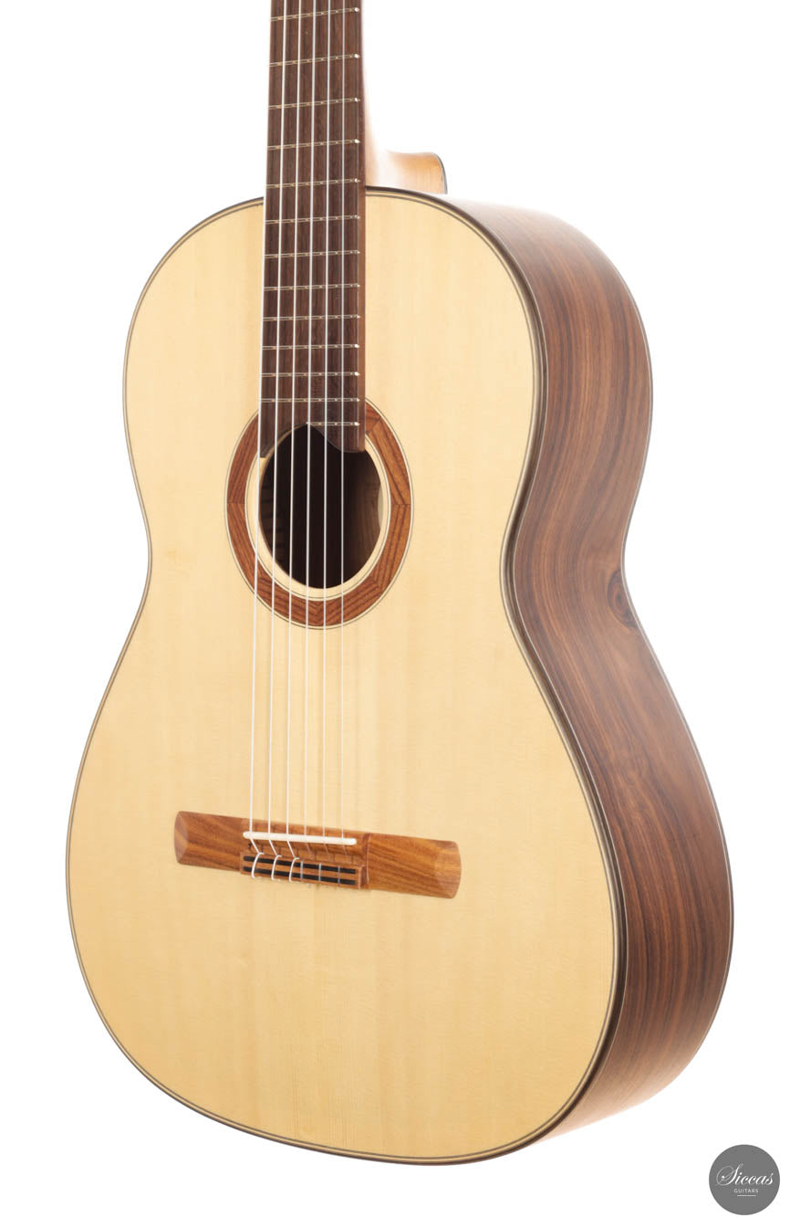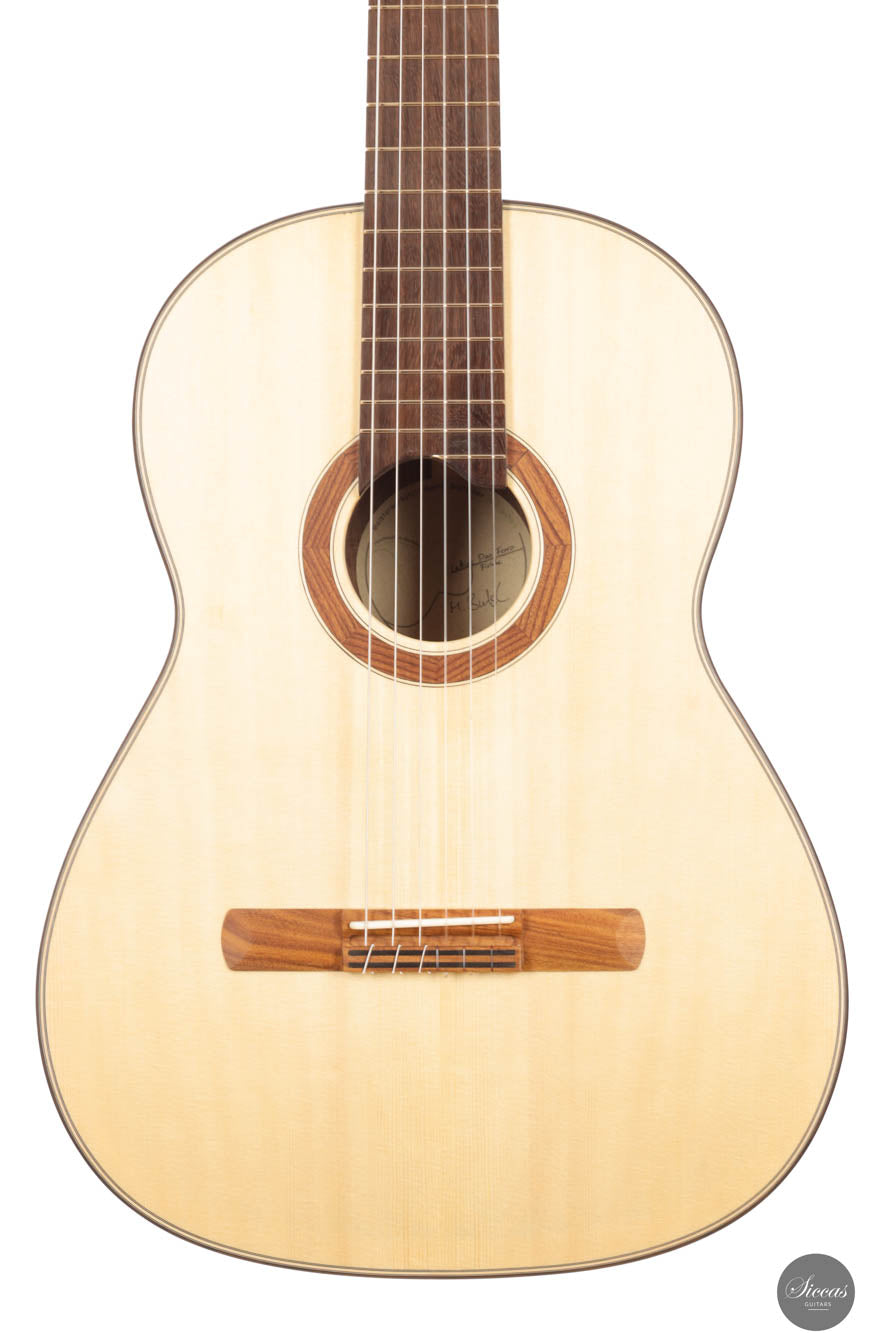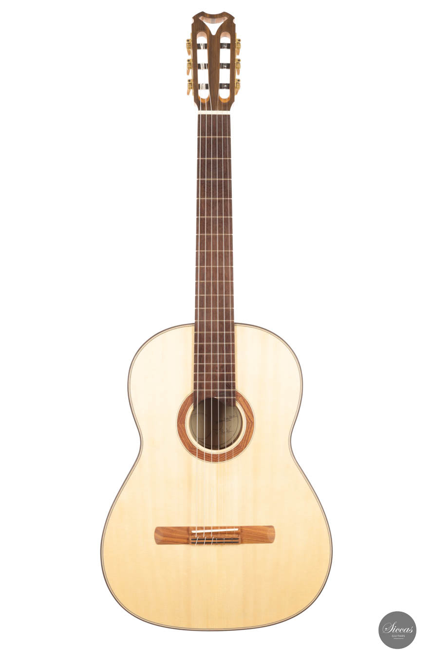 Die klassische Gitarre mit ihren weichen Nylonsaiten und ihrem charakteristischen Timbre ist zum Symbol der Kammermusik, der spanischen Tradition und des Konzertrepertoires geworden. Ihre moderne Form prägte Antonio de Torres im 19. Jahrhundert, indem er den Standard für Korpus, Fächerbeleistung und die 65-Zentimeter-Mensur setzte, die bis heute verwendet werden. Instrumente dieser Kategorie eröffnen eine reiche Palette von den feinen romantischen Miniaturen Tárregas bis zu den majestätischen Konzerten Rodrigos. Hier finden Sie Gitarren, die historische Kontinuität bewahren und zugleich zu neuen Interpretationen anregen.
