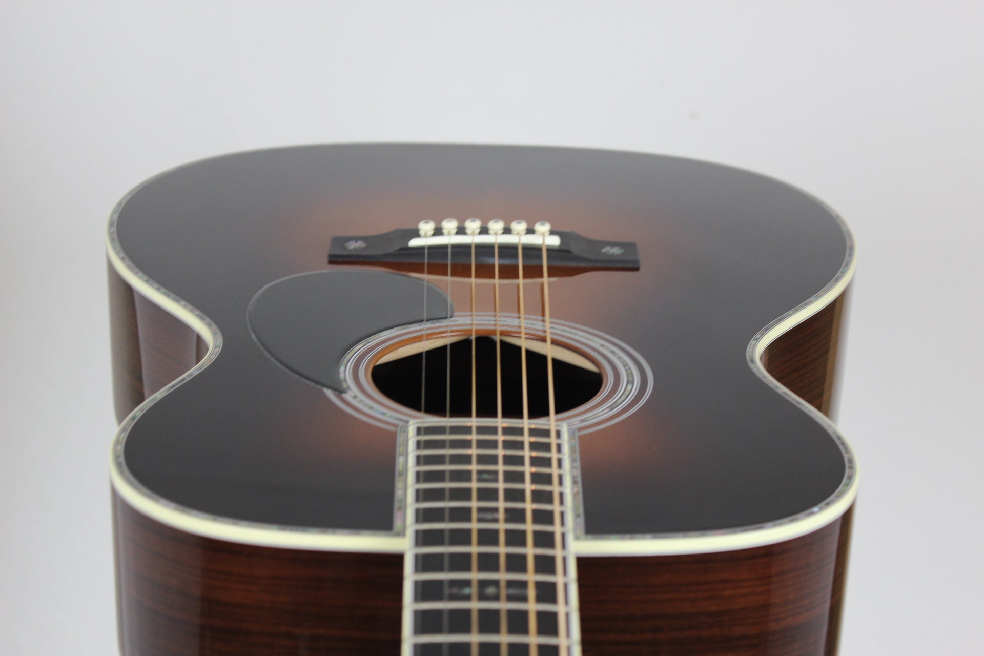 An ornate model with plenty of hand-inlaid pearl, the OM-42 has solid East Indian rosewood back and sides, a Sitka spruce top, polished gloss finish and a wider hand-fit dovetail neck to accommodate fingerstyle players.