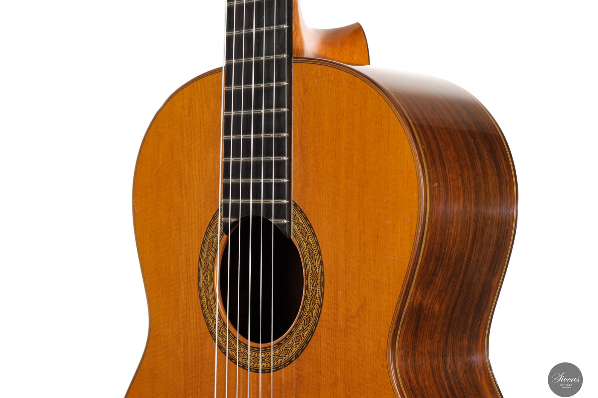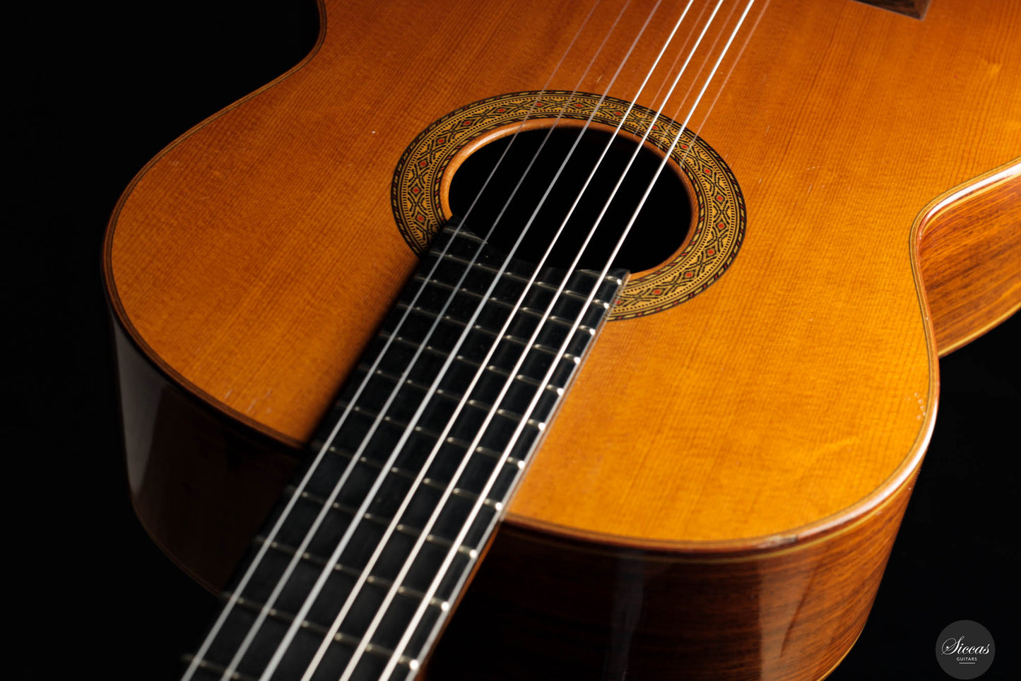 Preis auf AnfrageGitarrenbauer: Ignacio FletaBaujahr: 1954Decke: SpruceBoden und Zargen: Brazilian rosewood (CITES certified)Deckenoberfläche: French polishKorpusoberfläche: NitrocelluloseLuftresonanz: G / G sharpGewicht (g): 1585Mechaniken: FusteroZustand: Very good -