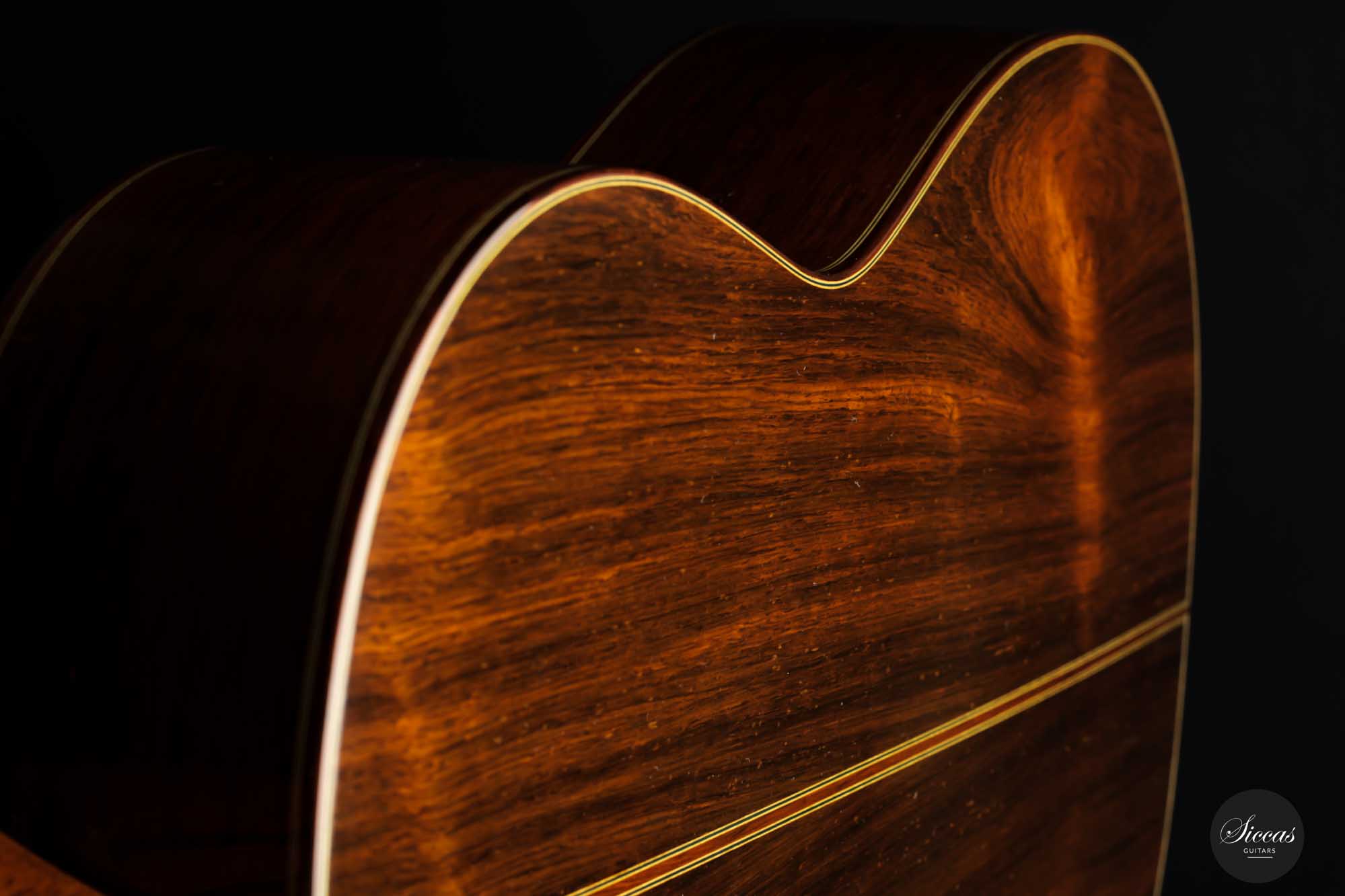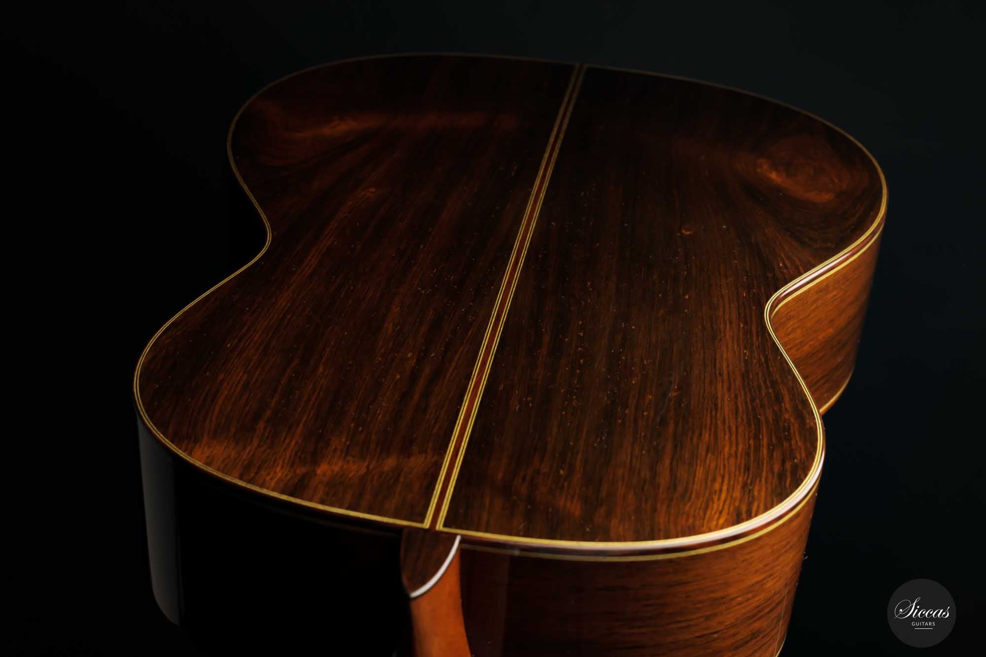 The model “Concert J” is a beautiful instrument, which is easily recognizable by its symmetrical bridge, as it is the only model of the Sakurai-Kohno line with this feature, as well as by its beautiful back and sides made of Madagascar rosewood. Masaki Sakurai built this guitar in the same tradition and manner as his uncle Masaru Kohno used to, resulting in an instrument very similar to the Model 30 from the early 1970s. However, unlike the earlier 664 mm scale models, this instrument has a more comfortable 650 mm scale, which makes it much more accessible for most guitarists.