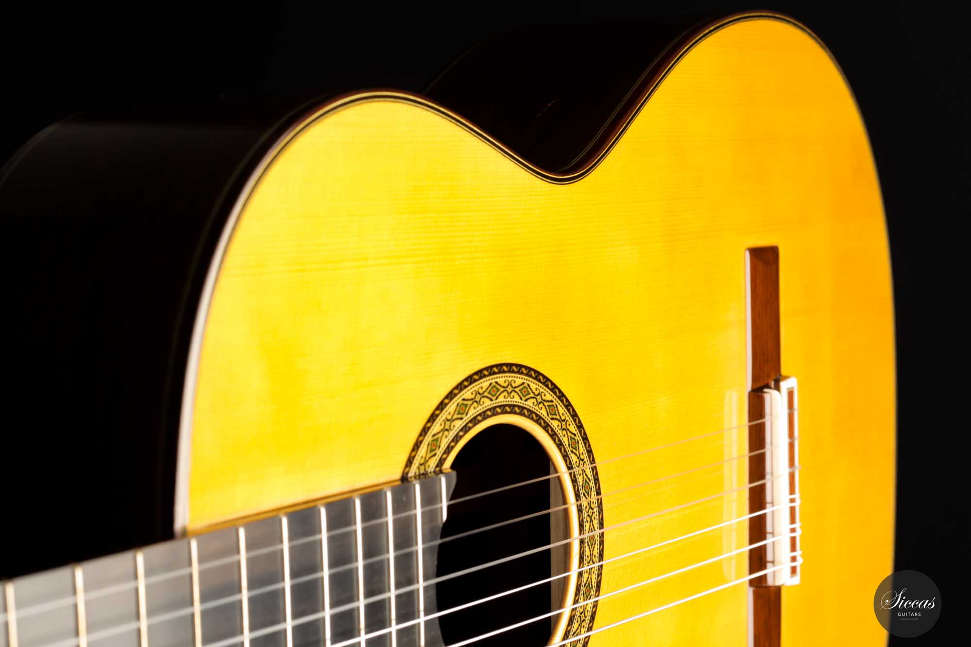 This guitar, built with the extreme precision of Japanese craftsmanship, is of the highest quality. A beautiful selection of precious woods and a great love for detail characterize it. The Masaki Sakurai "Concert J" feels very light to the touch and also impresses with its beautiful sound, while the singing trebles, in particular, have attracted our attention, as they are very clear and delicate with a very even sustain over the entire fretboard. One must also point out that although this guitar is still new, it already has a very open and balanced sound, which is a general characteristic of all Kohno instruments.