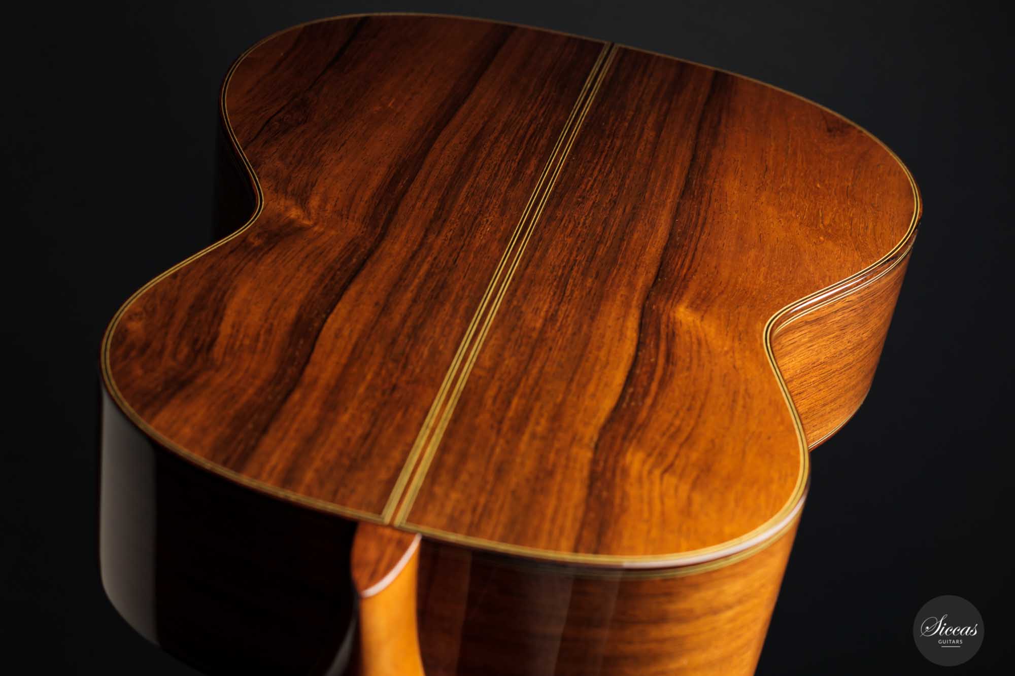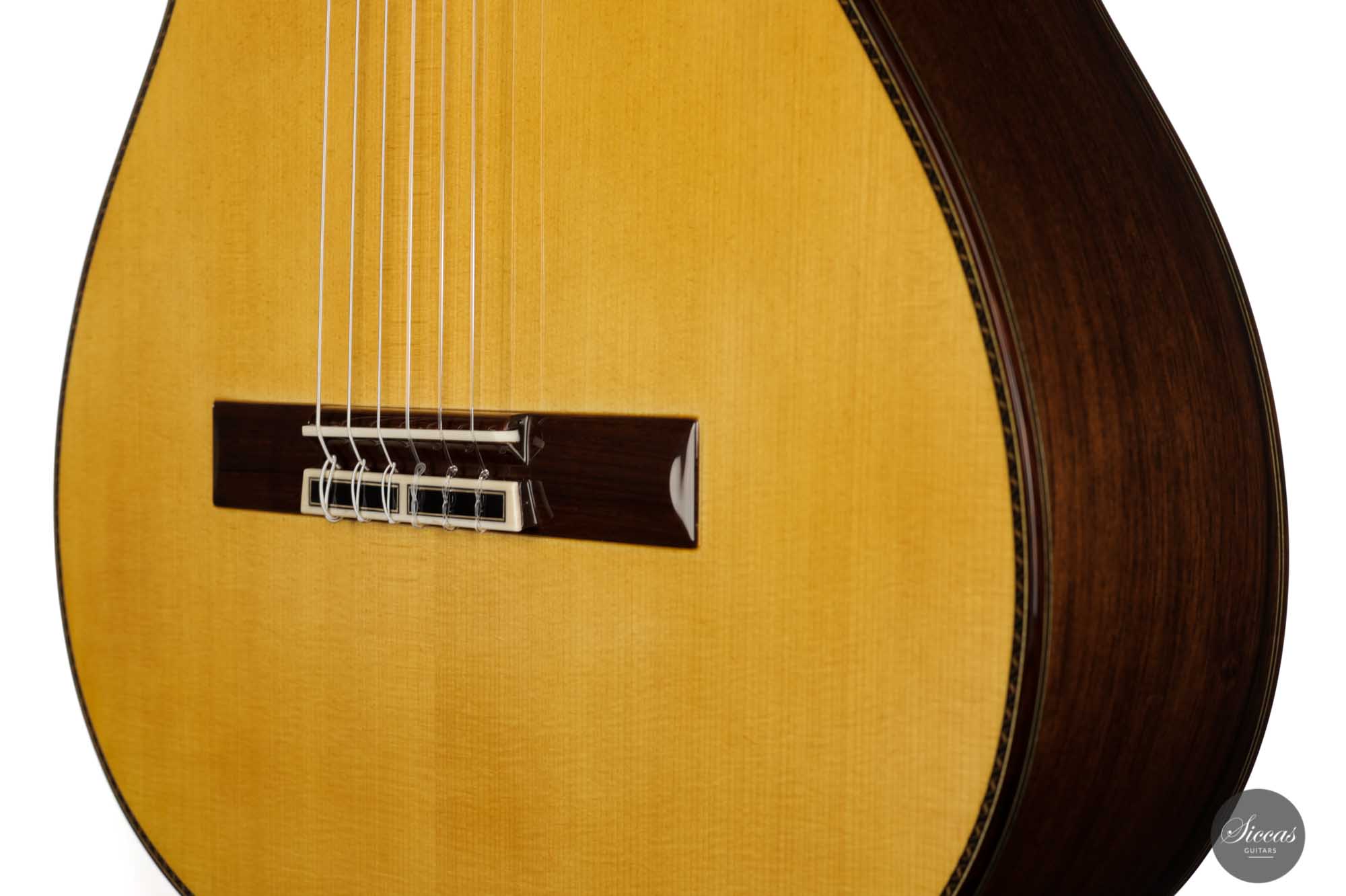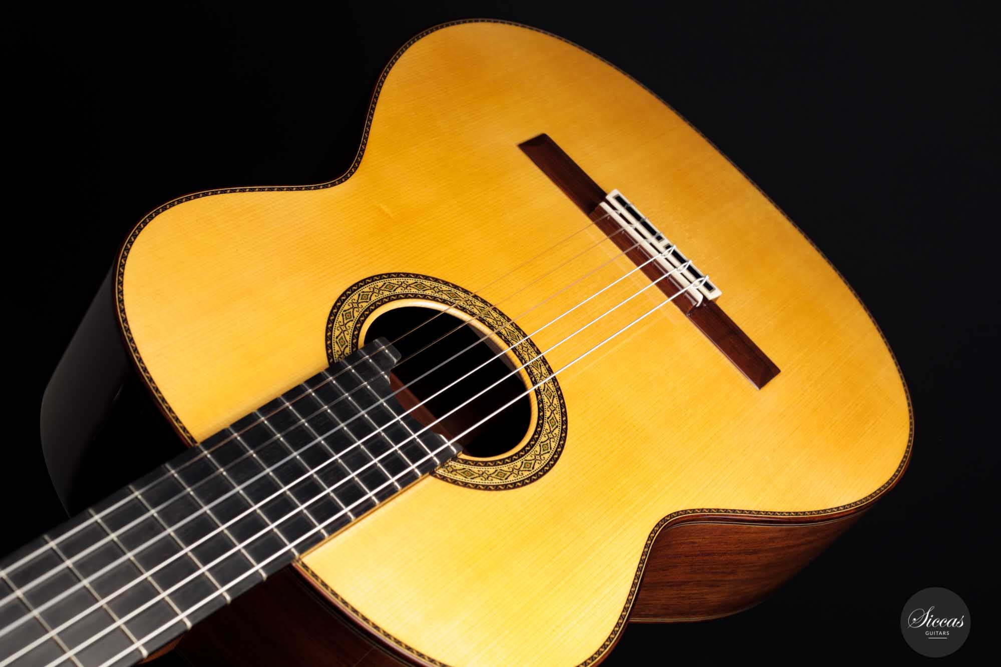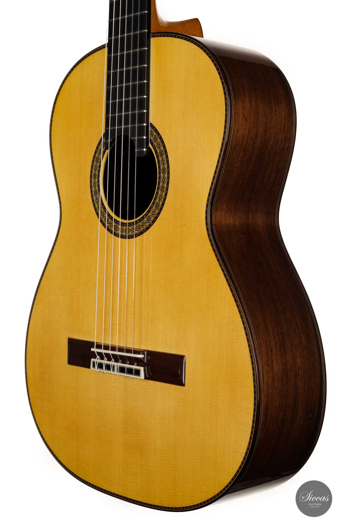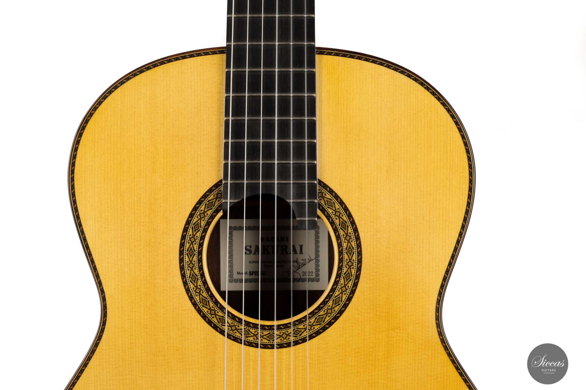 The Masaki Sakurai Special model is a beautiful instrument in the purest Japanese handcrafting tradition and impresses with extremely meticulous workmanship, a great piano-like fundamental sound and remarkable sustain. This model differs from its sister model, the Sakurai Kohno Special, in the bracing and design. Nevertheless, both guitars are of equally high quality. Masaki Sakurai's guitars can be recognised by the design of the headstock, which is a combination of the head shape of Robert Bouchet's and Masaru Kohno's guitars. It is a great sensation to play a Masaki Sakurai guitar, as the setup is perfect, the playability effortless and the tone production a real delight.