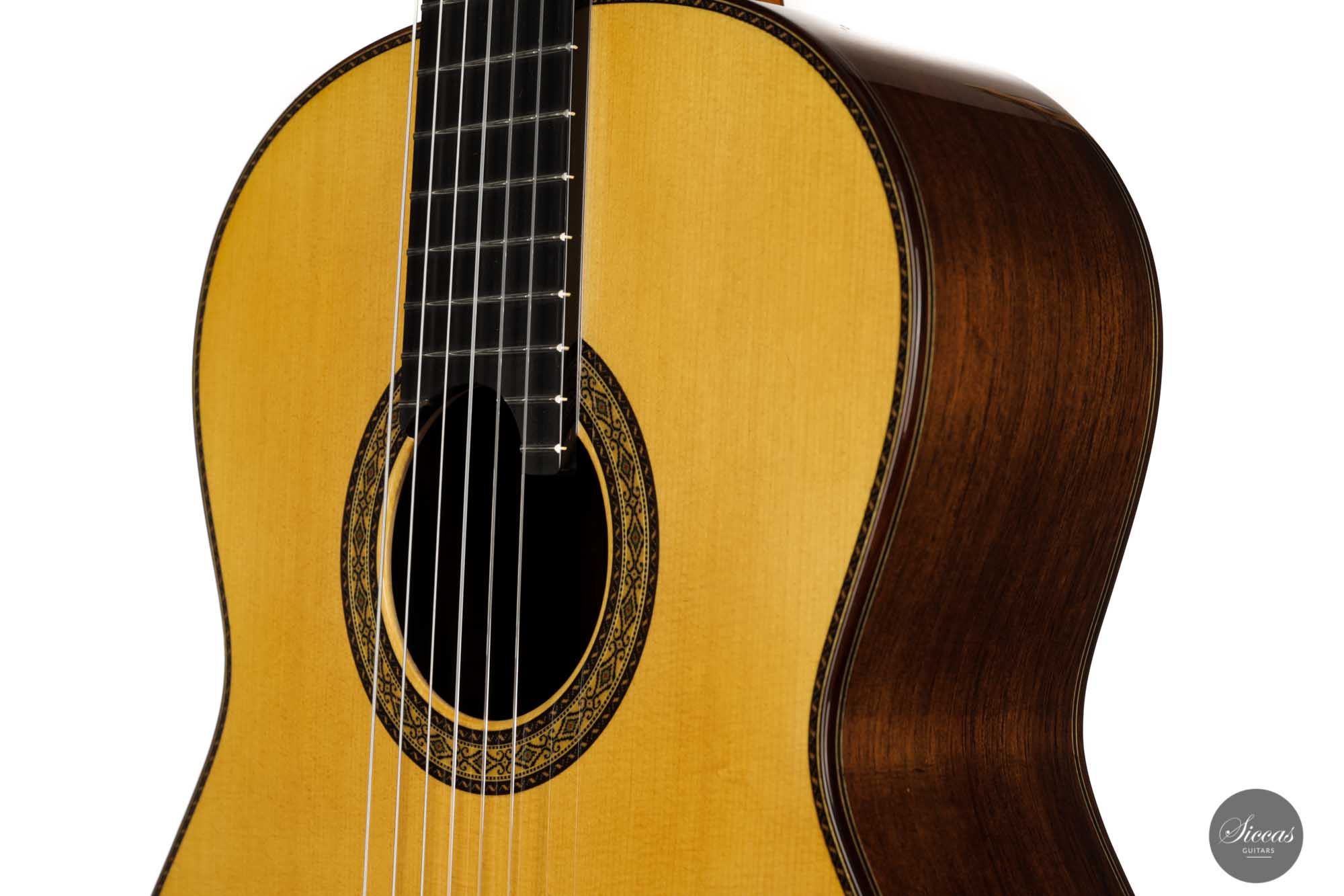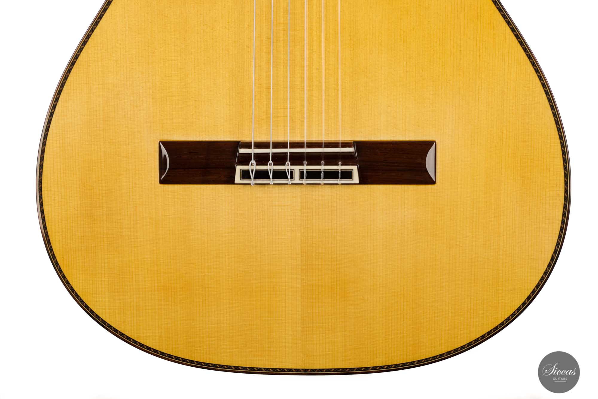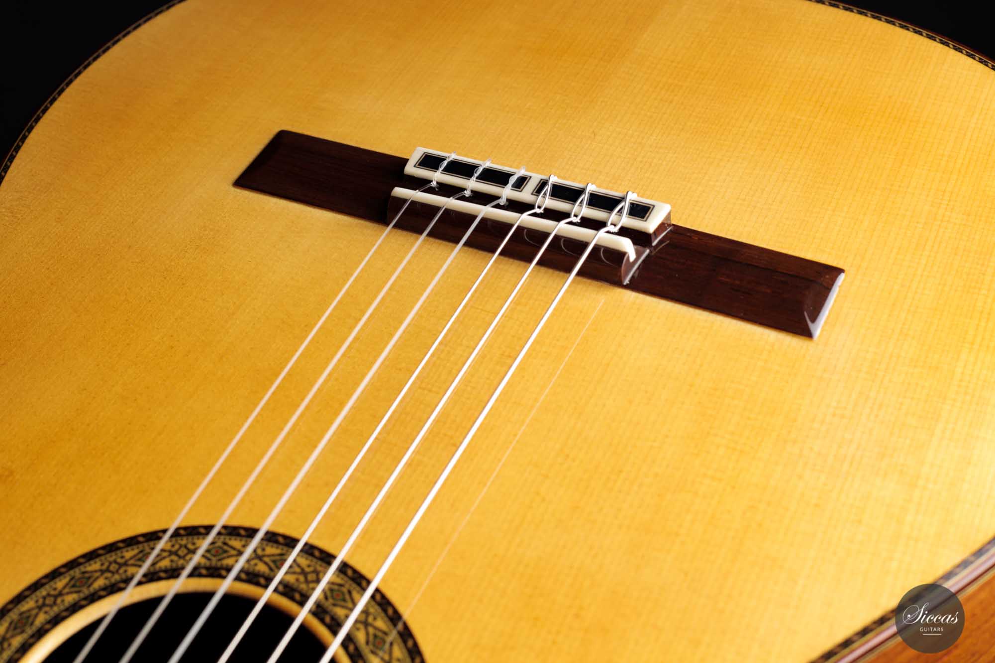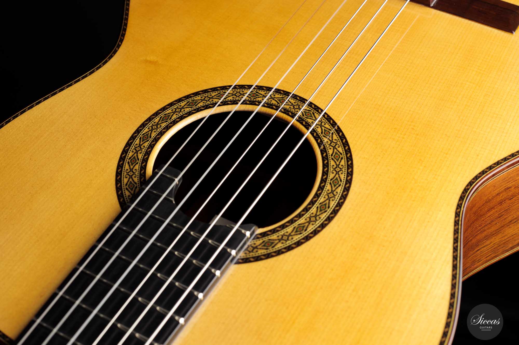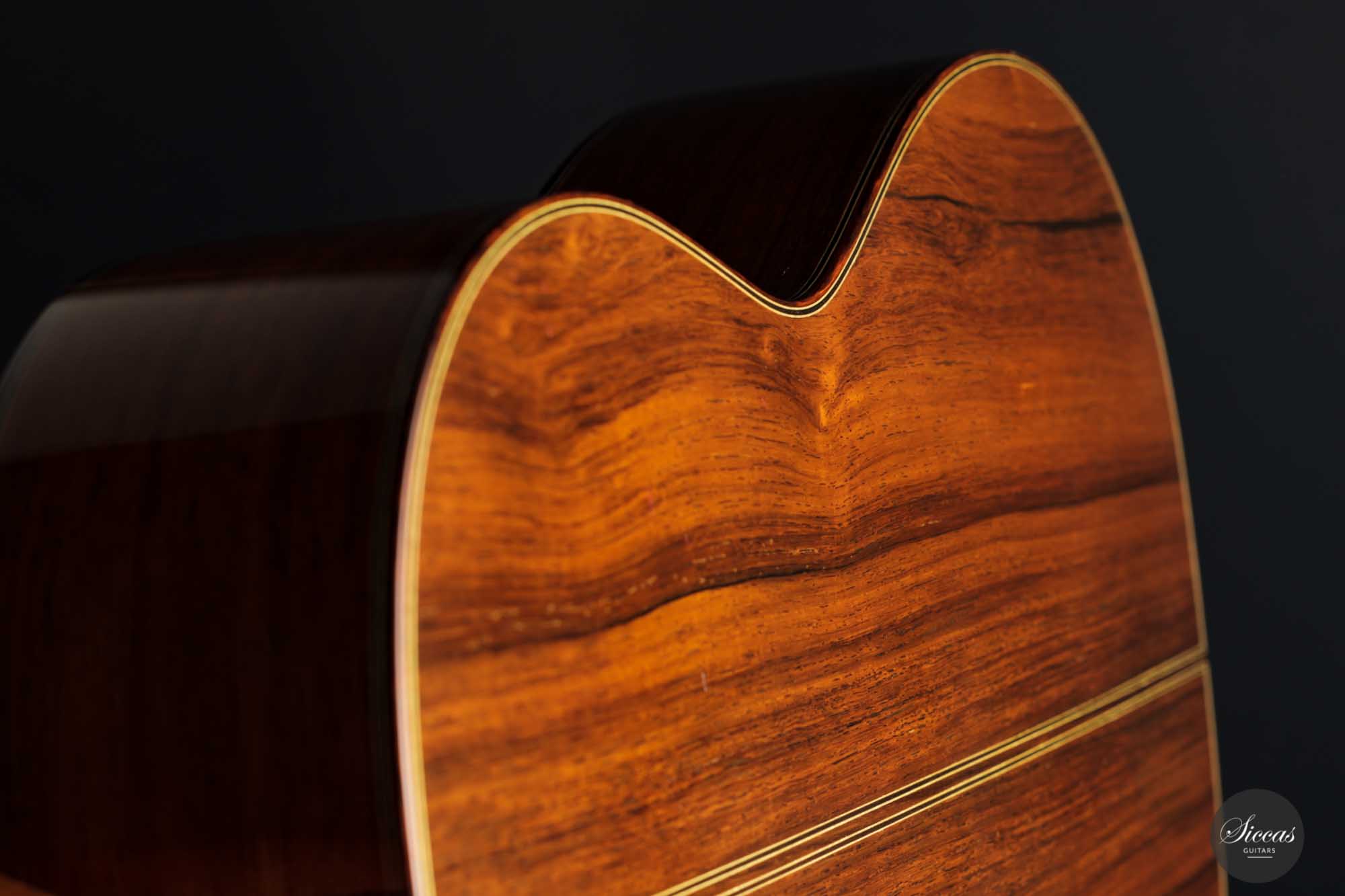 The Masaki Sakurai Special model is a beautiful instrument in the purest Japanese handcrafting tradition and impresses with extremely meticulous workmanship, a great piano-like fundamental sound and remarkable sustain. This model differs from its sister model, the Sakurai Kohno Special, in the bracing and design. Nevertheless, both guitars are of equally high quality. Masaki Sakurai's guitars can be recognised by the design of the headstock, which is a combination of the head shape of Robert Bouchet's and Masaru Kohno's guitars. It is a great sensation to play a Masaki Sakurai guitar, as the setup is perfect, the playability effortless and the tone production a real delight.