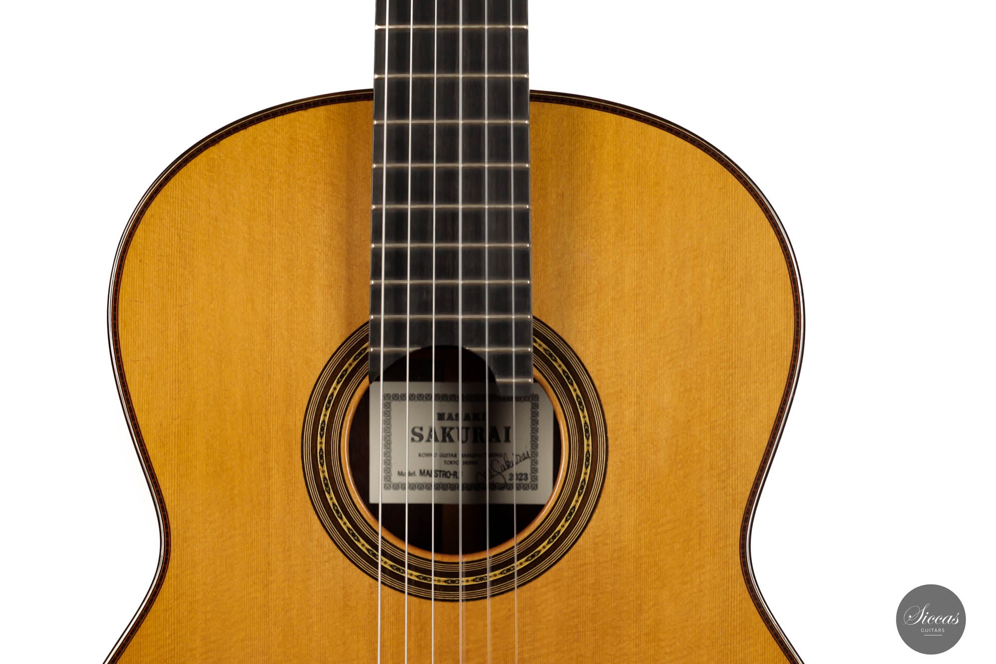 Das Maestro-Modell ist das höchste Modell aus der Sakurai-Kohno-Reihe und wird aus den besten Edelhölzern hergestellt. Es hat eine asymmetrische Verstrebung, sieben Fächerleisten und drei sehr dünne Querleisten. Masaki Sakurai baute diese Gitarre in der gleichen Tradition und Methode wie sein Onkel Masaru Kohno, weshalb der Name Kohno auf dem Etikett als Hommage an diesen verwendet wurde. Das Ergebnis ist ein Instrument, das dem Masaru Kohno Modell 80 aus dem Ende der 1970er Jahre sehr ähnlich ist.