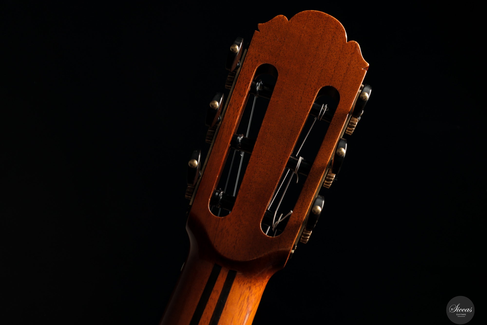 Die ursprünglich verbauten Mechaniken wurden vom ersten und einzigen Besitzer durch hochwertige Scheller-Mechaniken ersetzt. Diese bieten eine präzise Funktion und fügen sich ästhetisch harmonisch in das Gesamtbild ein. Mit klarer Ansprache, singenden Höhen und ausbalancierten Bässen bleibt dieses Model 10 ein Maßstab im traditionellen Konzertgitarrenbau.