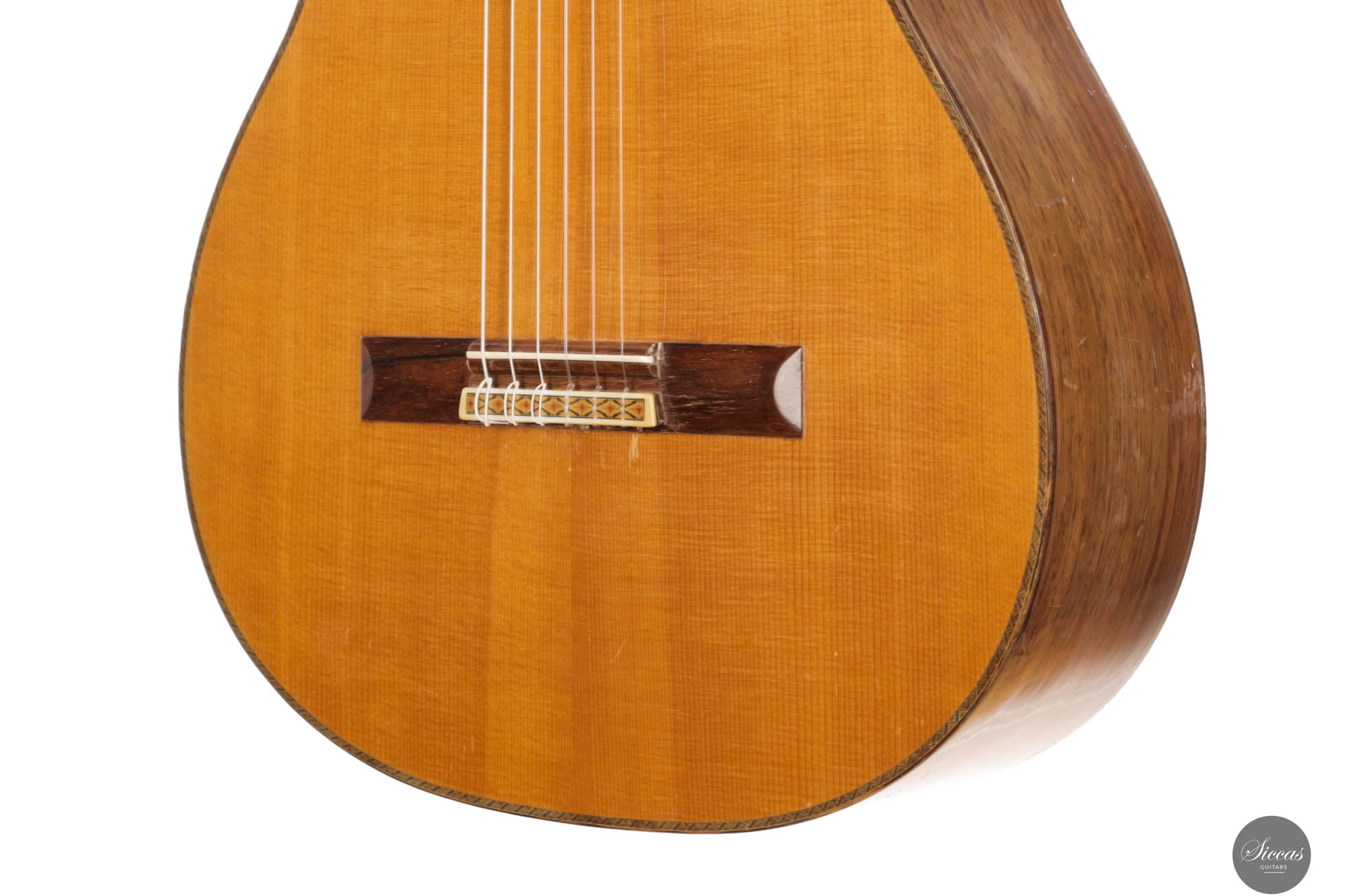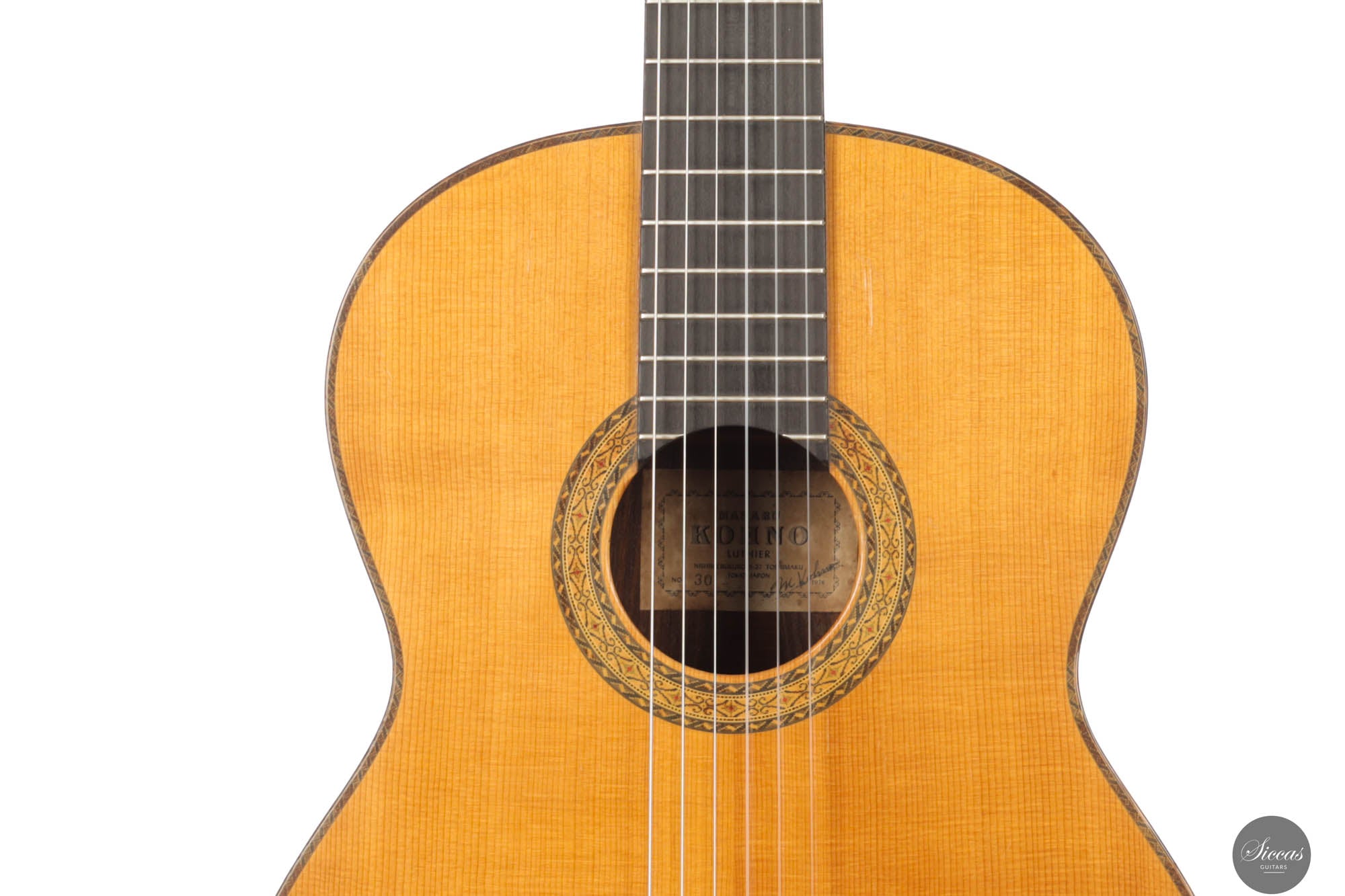 Diese beeindruckende Masaru Kohno No. 30 aus dem Jahr 1976 war das zweithöchste Modell in Masaru Kohnos Gitarrenreihe, direkt unterhalb des No. 50. Nach 1982 entsprach die No. 30 dem Modell Masaru Kohno „Special“, und als Masaki Sakurai die Werkstatt übernahm, wurde sie zum Pendant der Sakurai Kohno Professional-J.