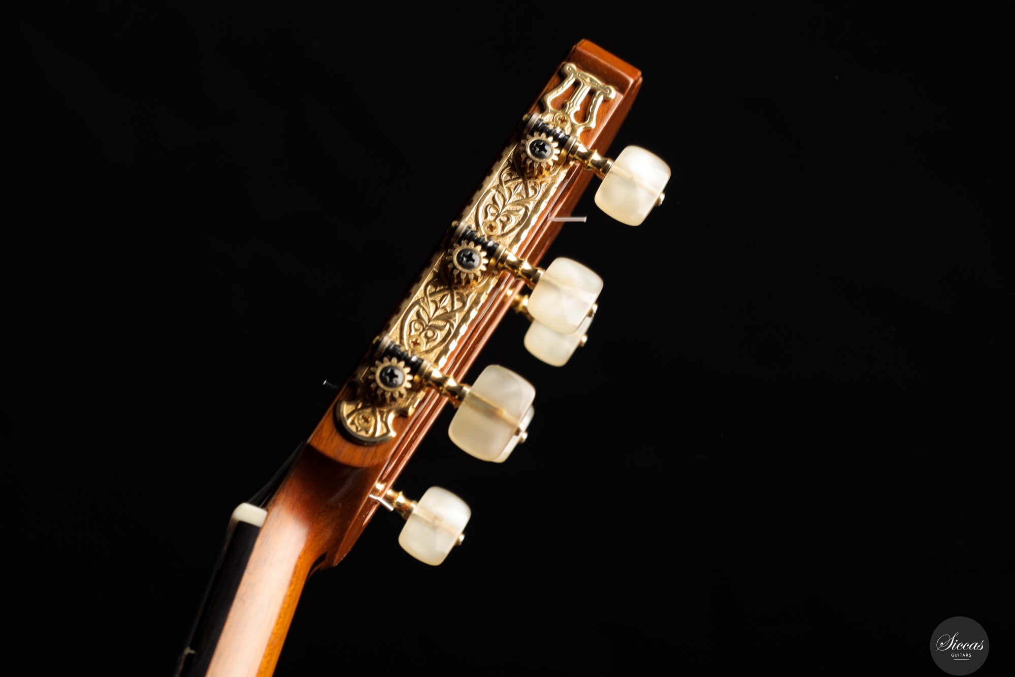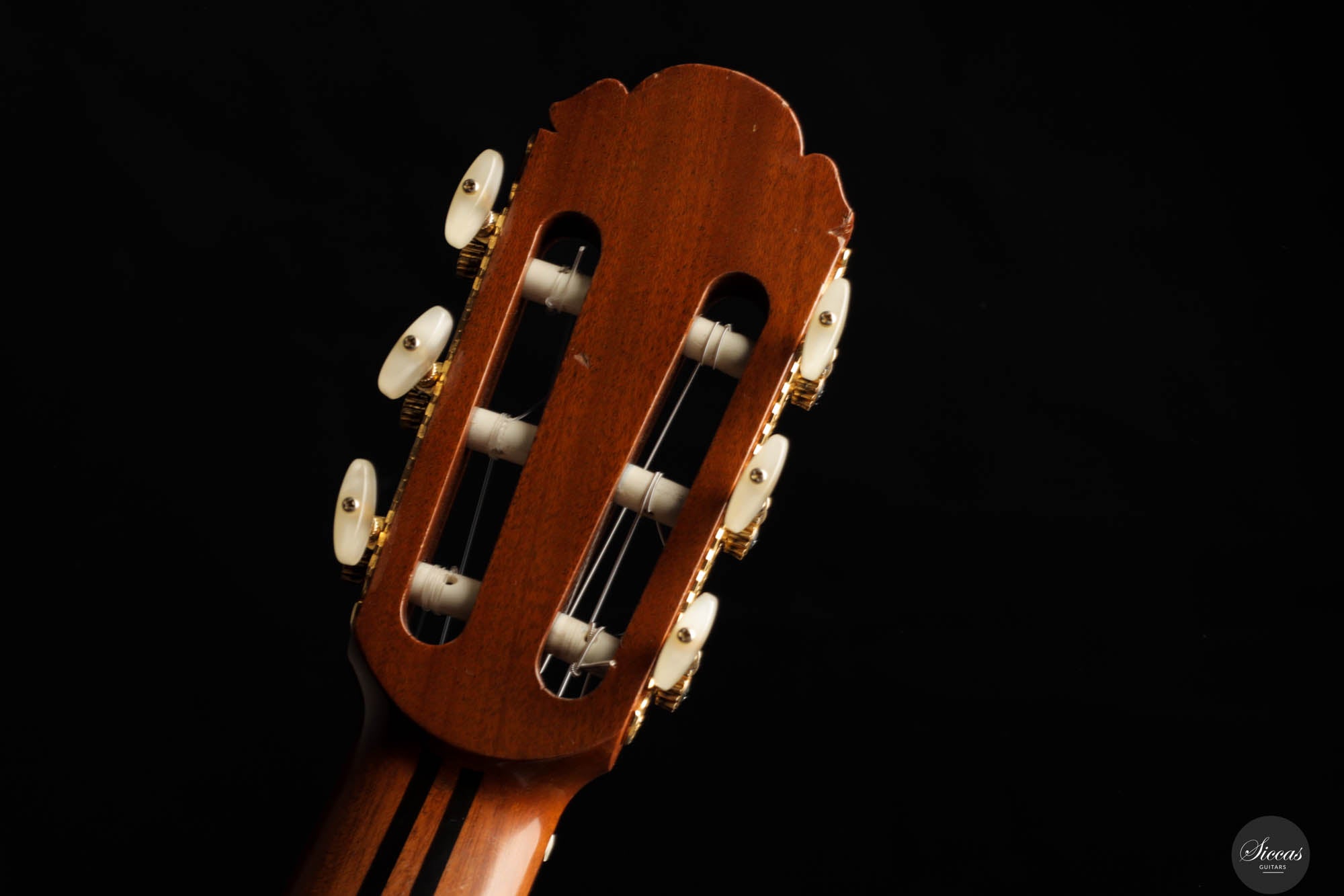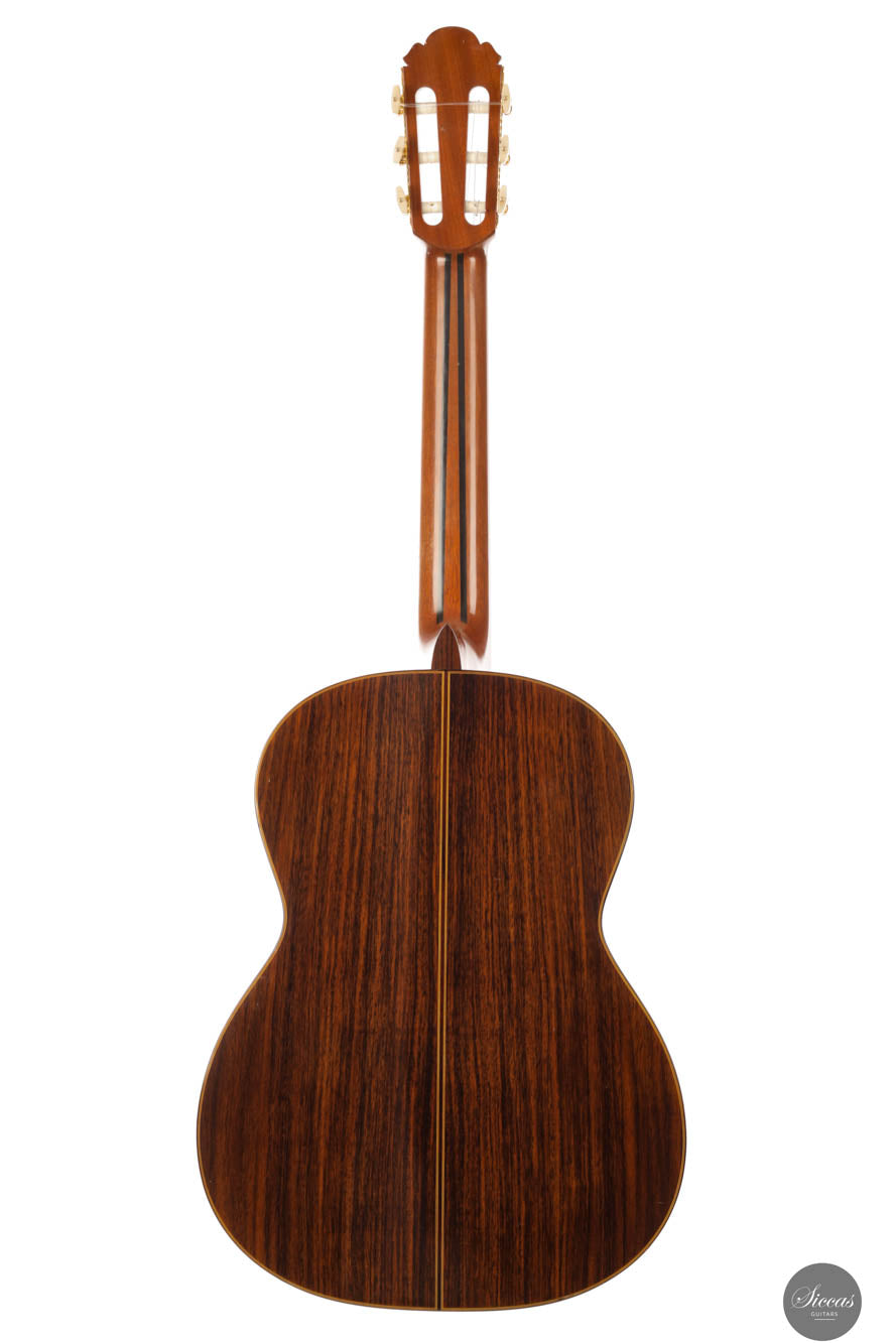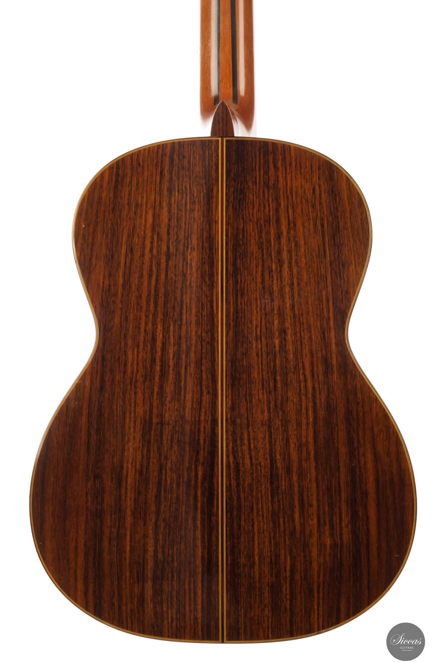 Nummerierungssystem für seine Modelle, das ursprünglich die Einzelhandelspreise in Japan widerspiegelte; zum Beispiel wurde eine Nr. 20 für 200.000 japanische Yen verkauft. Dieses System wurde jedoch aufgrund des Wirtschaftswachstums und der Inflation obsolet, was im Laufe der Jahre zu Unstimmigkeiten bei der Bezeichnung der Qualität der Modelle führte. Ab 1982 wurde die Bezeichnung Kohno ausschließlich den hochwertigsten Konzertgitarren zugeordnet, was dieses Instrument zu einem der ersten in dieser Reihe macht. Das Instrument ist mit Boden und Zargen aus indischem Palisander und einer Fichtendecke ausgestattet und verfügt über feine Details, hochwertige Mechaniken und eindrucksvolle handgearbeitete Randeinlagen um das Schallloch und die Zargen. Trotz einiger Gebrauchsspuren befindet sich die Gitarre in einem sehr guten Zustand und weist keinerlei Risse oder strukturelle Probleme auf. Außerdem wurde der Sechs-Loch-Steg auf zwölf Löcher erweitert, um den Saitenwechsel zu erleichtern. Der typische Kohno-Klang - klar, holzig und etwas dunkel für ein Fichtenmodell - macht die Gitarre zu einer erstklassigen Wahl für anspruchsvolle Gitarristen.