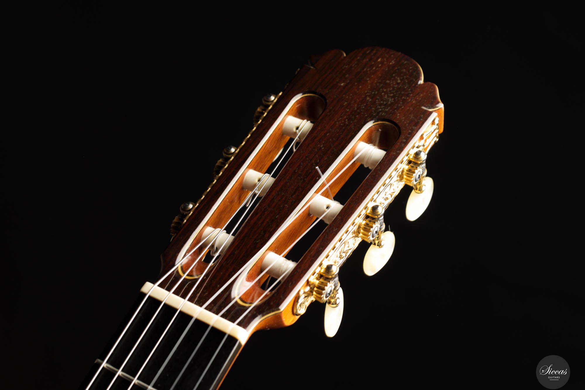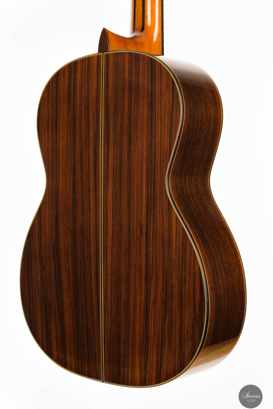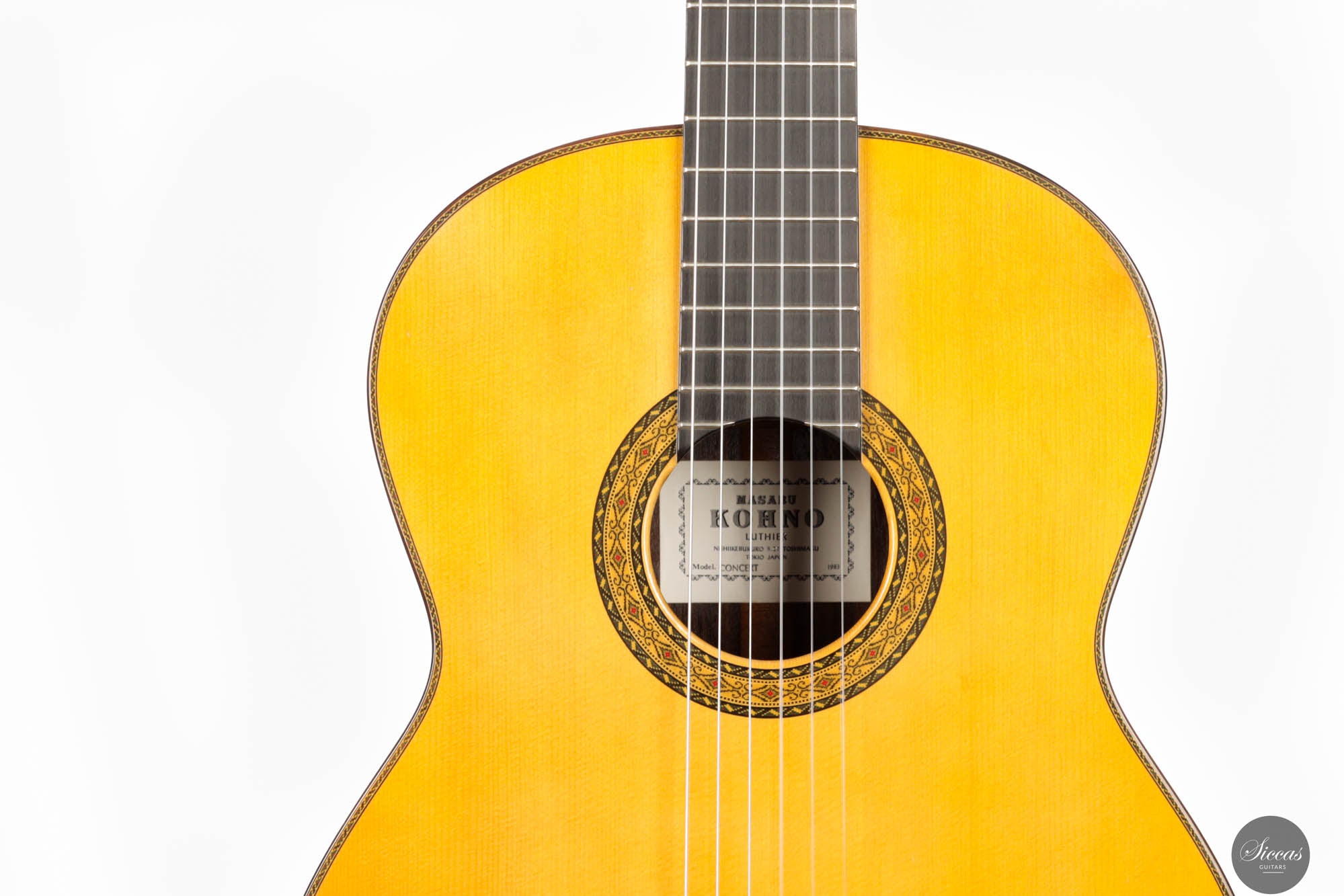 Masaru Kohno (1926-1998) ist eine bedeutende Persönlichkeit in der Geschichte des japanischen Gitarrenbaus und ein Visionär unter den Gitarrenbauern. Er wurde in Mito City, Japan, geboren und begann seine Karriere als Gitarrenbauer nach seinem Abschluss an der Hochschule für Kunst und Handwerk in Tokio. 1959 reiste Masaru Kohno in die Werkstatt von Arcangel Fernandez in Spanien, wo er sechs Monate lang eine aufschlussreiche Lehrzeit genoss. Ein Wendepunkt in seiner Karriere war der Gewinn der Goldmedaille beim Internationalen Gitarrenbauwettbewerb Elizabeth's Concourse in Belgien im Jahr 1967, was ihm weltweite Anerkennung einbrachte. Die Liste der Musiker, die auf der Gitarre von Masaru Kohno aufgenommen und gespielt haben, ist lang und umfasst u. a. Julian Bream, Oscar Gighlia und Sharon Isbin.