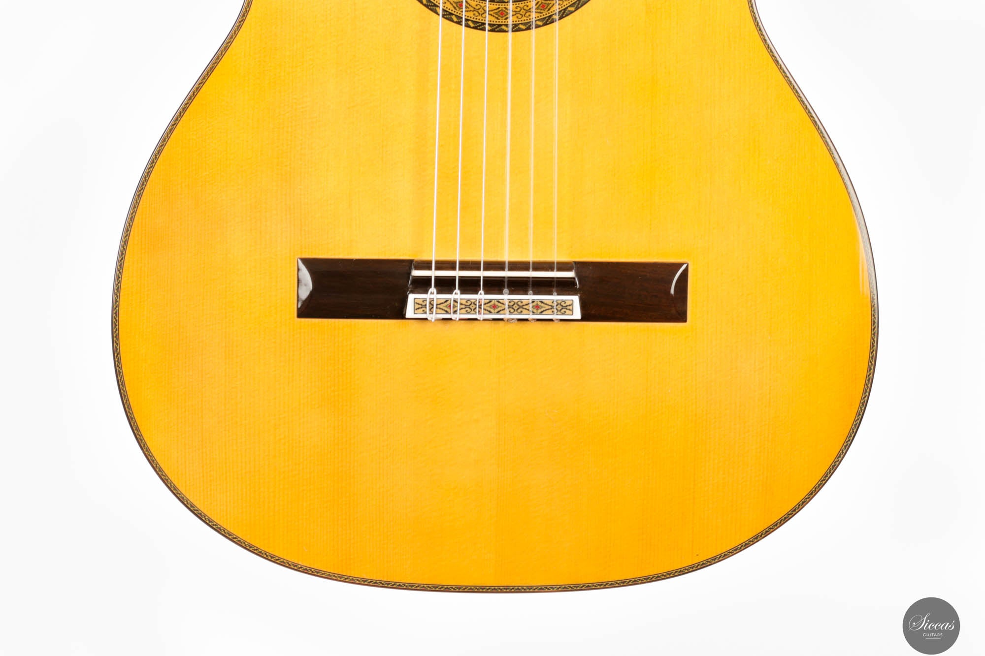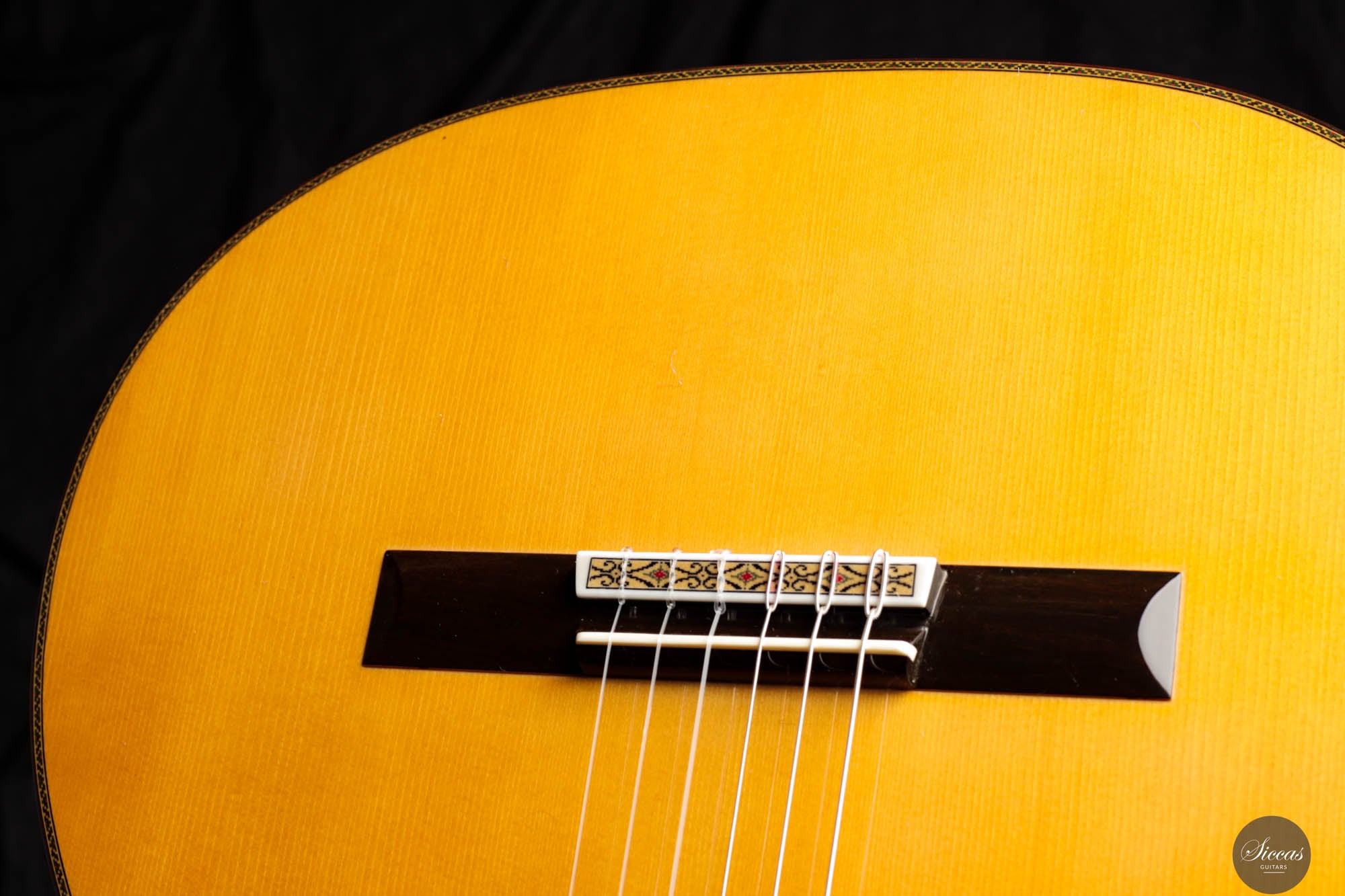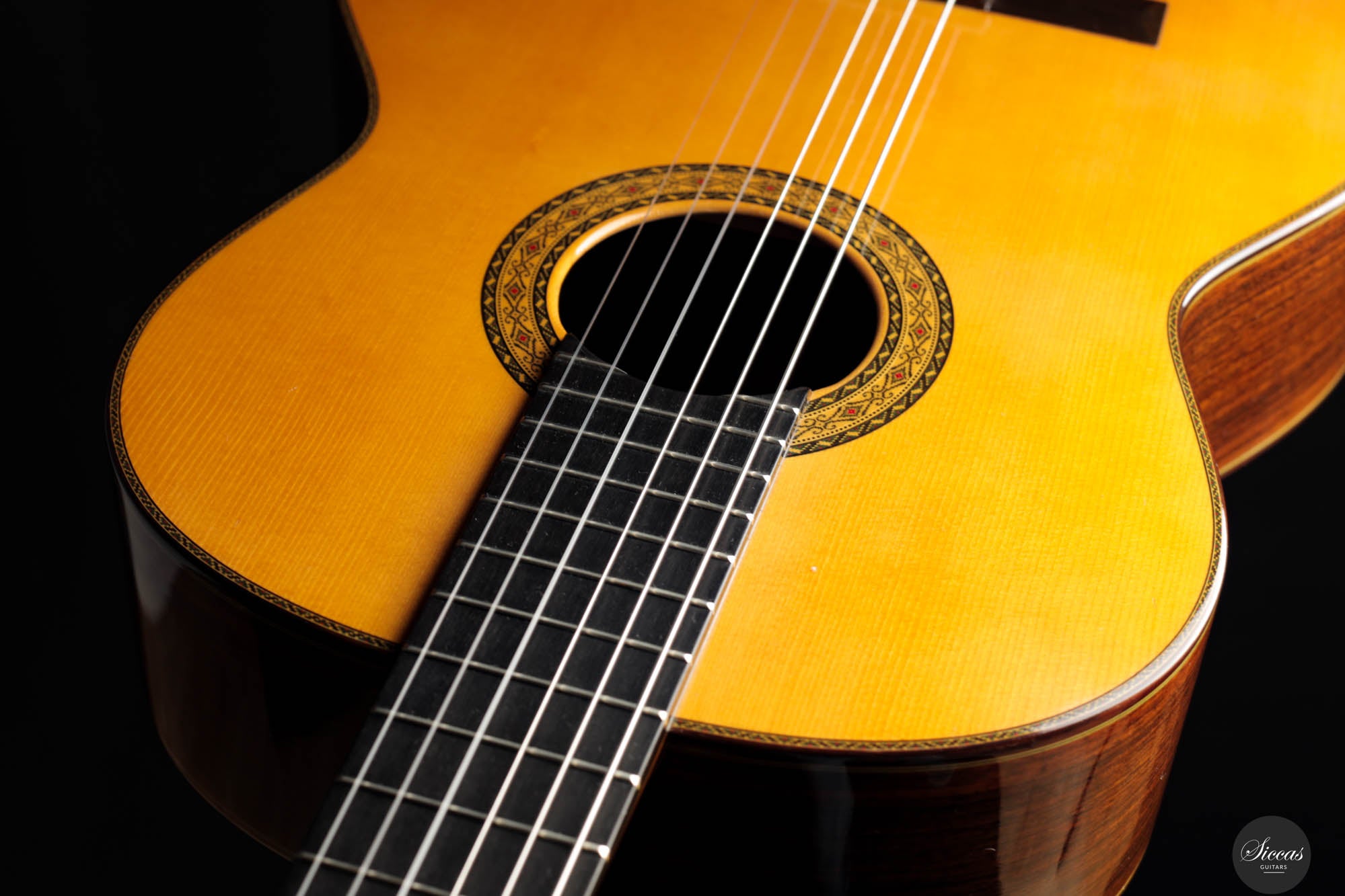 Masaru Kohno (1926-1998) ist eine bedeutende Persönlichkeit in der Geschichte des japanischen Gitarrenbaus und ein Visionär unter den Gitarrenbauern. Er wurde in Mito City, Japan, geboren und begann seine Karriere als Gitarrenbauer nach seinem Abschluss an der Hochschule für Kunst und Handwerk in Tokio. 1959 reiste Masaru Kohno in die Werkstatt von Arcangel Fernandez in Spanien, wo er sechs Monate lang eine aufschlussreiche Lehrzeit genoss. Ein Wendepunkt in seiner Karriere war der Gewinn der Goldmedaille beim Internationalen Gitarrenbauwettbewerb Elizabeth's Concourse in Belgien im Jahr 1967, was ihm weltweite Anerkennung einbrachte. Die Liste der Musiker, die auf der Gitarre von Masaru Kohno aufgenommen und gespielt haben, ist lang und umfasst u. a. Julian Bream, Oscar Gighlia und Sharon Isbin.