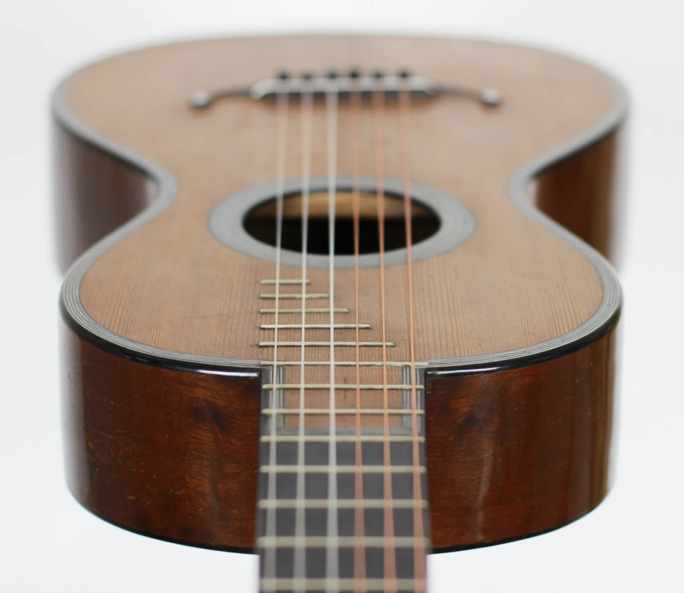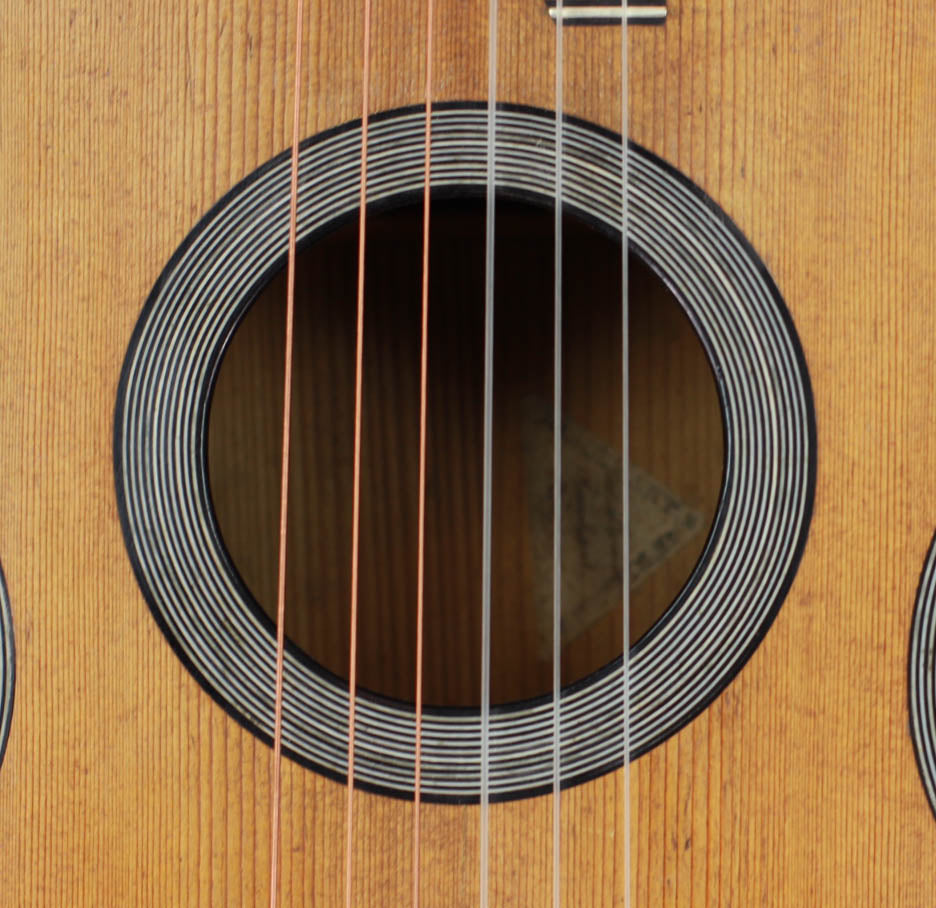 Die Mauchant Brüder (1762-1844 und 1788-1871) waren Hersteller und Händler von Musikinstrumenten. Beide bauten ausgezeichnete Gitarren und vermarkteten hauptsächlich die in Mirecourt gebauten Gitarren. Diese Gitarre ist mit "Mauchant Frères" signiert. Die Decke ist aus Fichte, Boden uns Zargen sind aus Mahagoni. Die Gitarre befindet sich in sehr gutem Originalzustand und ist einwandfrei bespielbar.