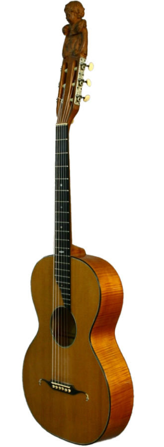 Diese Gitarre stammt aus dem Hause Max Amberger und wurde im Jahr 1913 gefertigt. Max Amberger selbst lebte von 1838 bis 1889 und war ein münchener Instrumentenbauer. Er gründete um 1860 sein Unternehmen, das sich hauptsächlich auf den Bau von Violinen, Gitarren und Zithern konzentrierte.