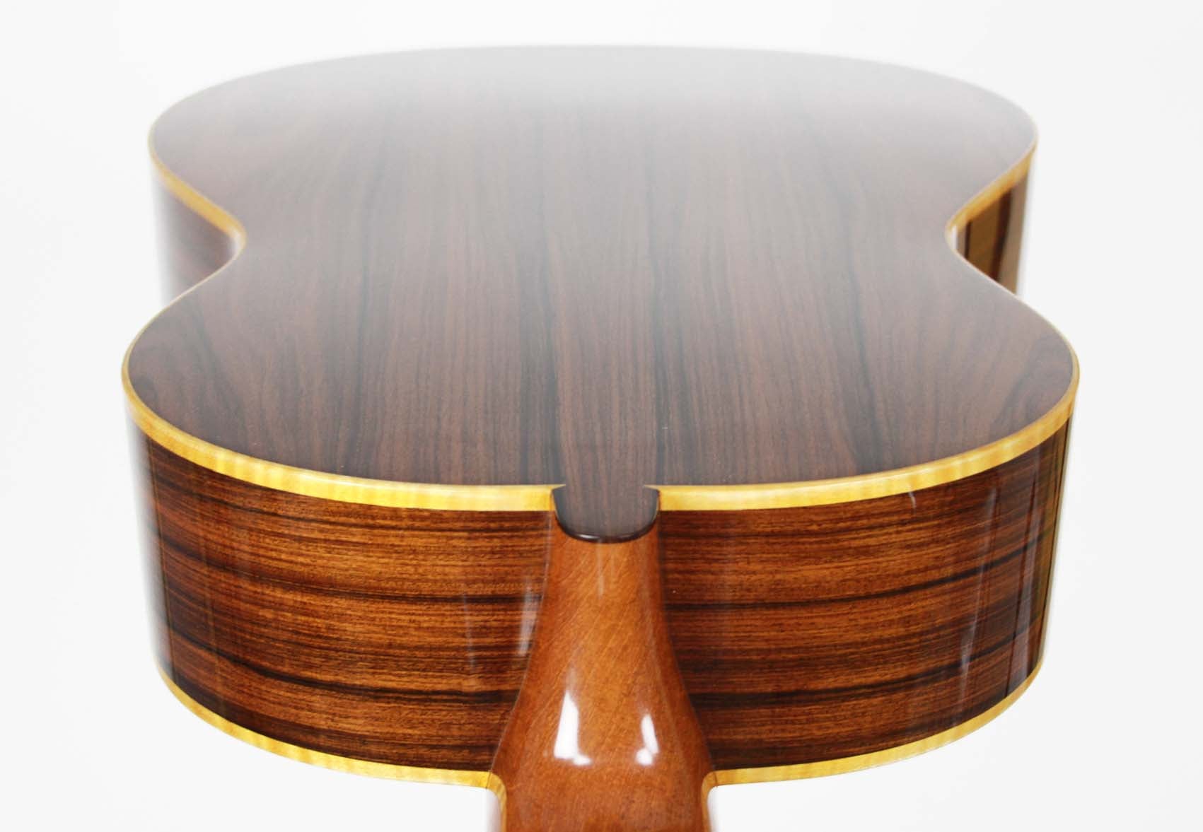 Alle verwendeten Tonhölzer sind von ausgesuchter Qualität. Jede Gitarre wird auf der Innenseite mit einer Schicht Schellack versiegelt. Eine abschließende Schellackpolitur bringt die natürliche Schönheit der Hölzer zum leuchten und sorgt für einen guten Schutz bei gleichzeitig besten Klangeigenschaften. Die Mechaniken sind von Gotoh. Ein Hiscox Pro II Koffer ist inklusive.