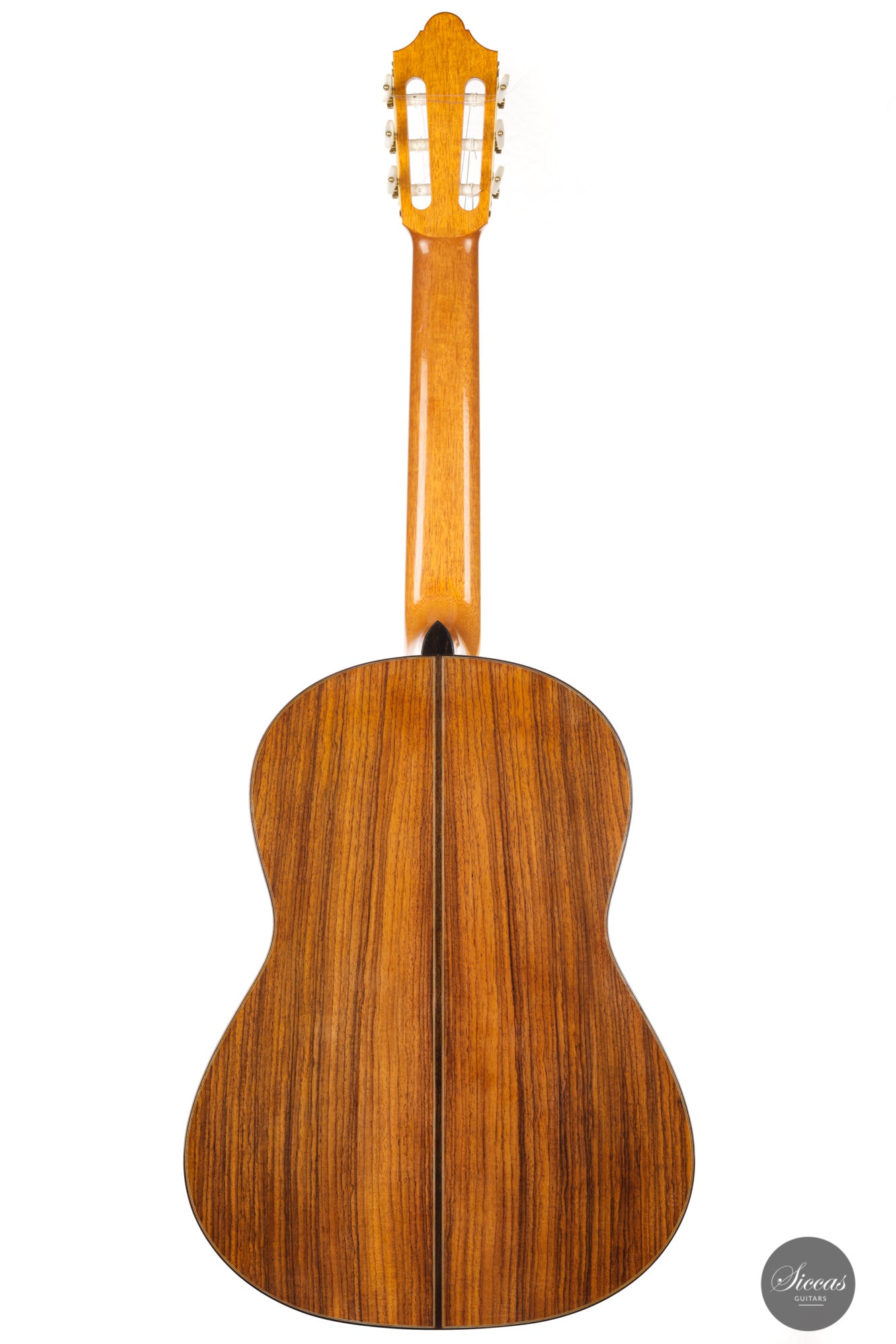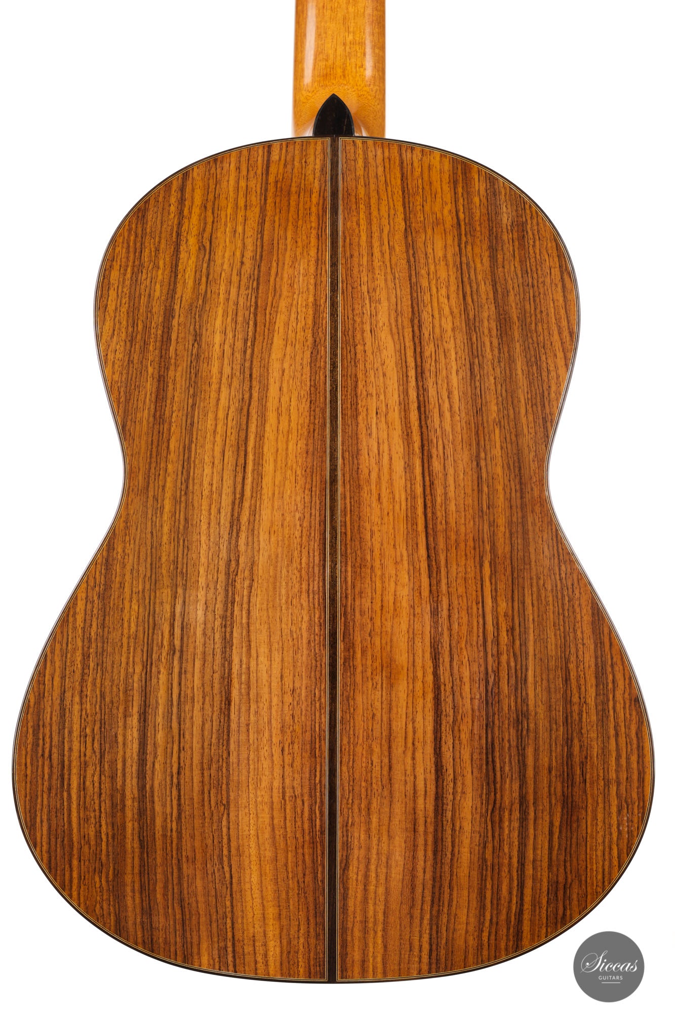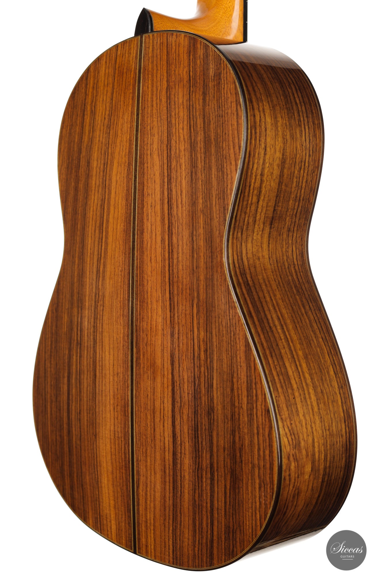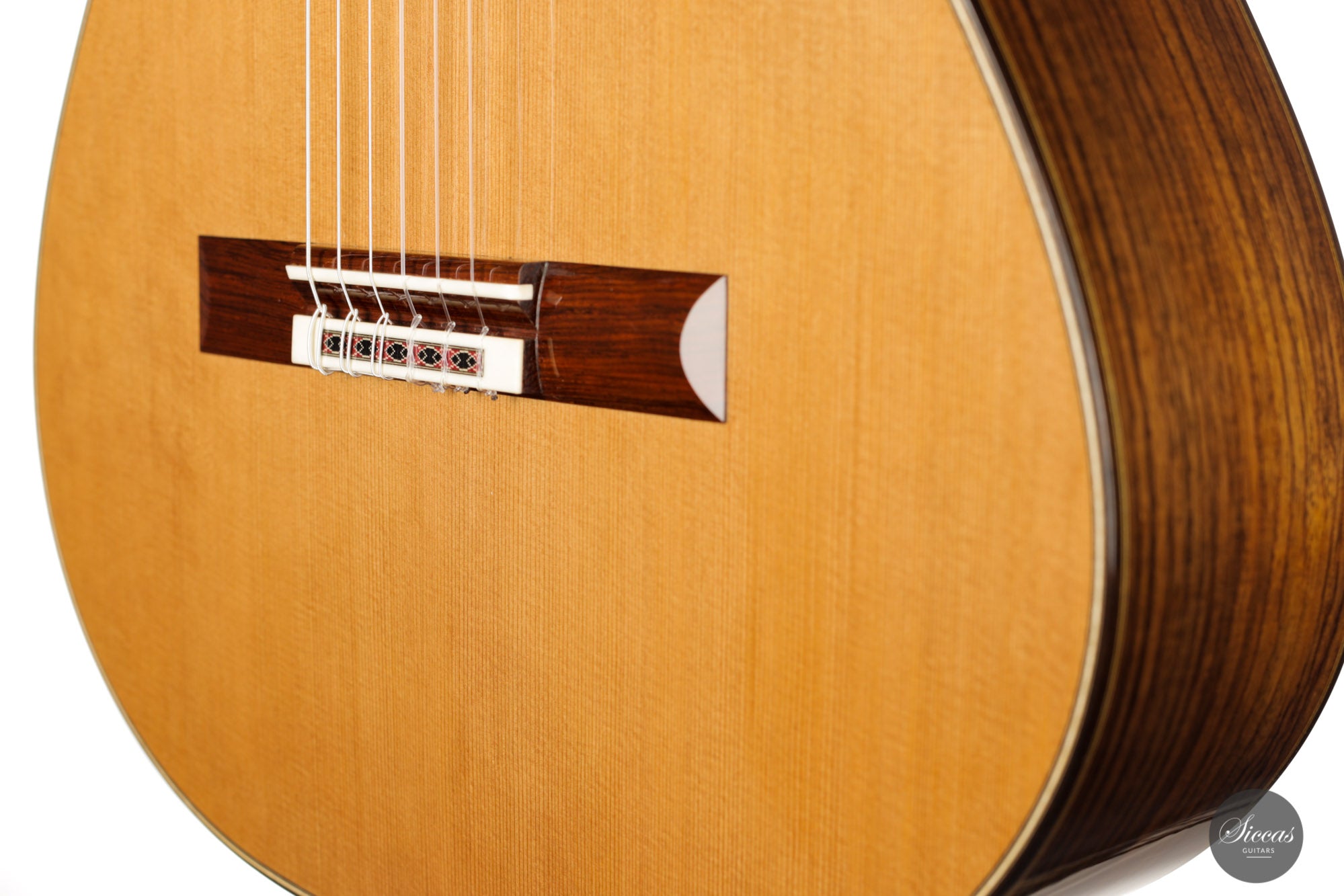 Diese besondere Gitarre, die 2018 gebaut wurde, ist auf jeden Fall ein außergewöhnliches Instrument. Diese "Hommage à Daniel Friederich" ist ein Wunder an Klang und Handwerkskunst. Bis ins kleinste Detail ist sie einer Gitarre des großen Pariser Meisters aus dem Jahr 1999 nachempfunden und ist sie ein wahres Meisterwerk. Auf den ersten Blick hat man das Gefühl, eine fast nagelneue Friederich mit nur wenigen Spielspuren zu sehen. Wenn man die Gitarre in die Hand nimmt und spielt, bestätigt sich der erste Eindruck, und der Eindruck ist vollkommen. Für den Gitarristen, der einer Friederich aus Zedernholz der 90er Jahre so nahe wie möglich kommen möchte, ist dieses Instrument genau das, was er schon immer gescuht hat. Und an Michel Belair möchten wir sagen: Chapeau!