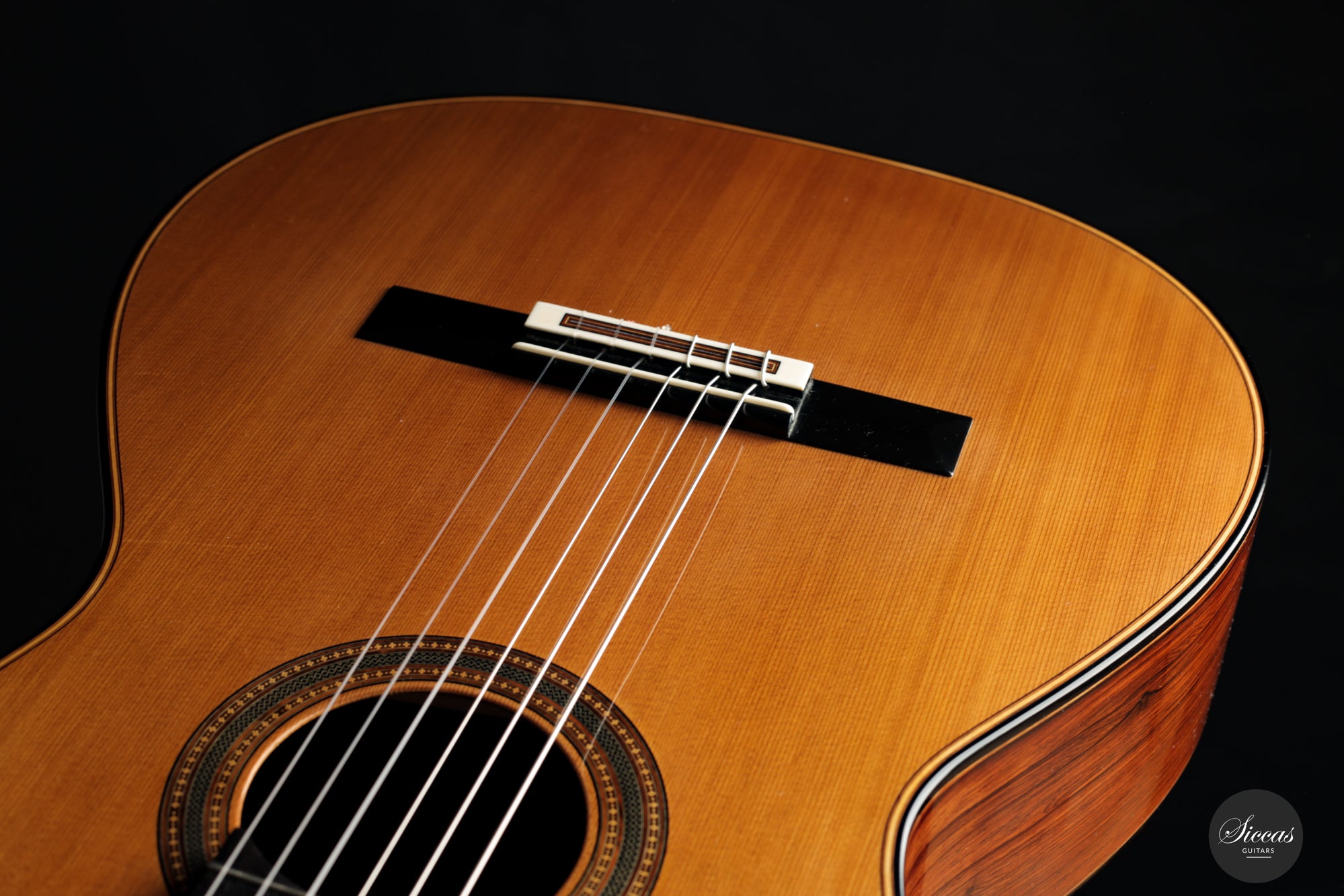 Ihr komplexes Design ist ein Schaufenster für Brücks tiefgreifendes Fachwissen und seine Hingabe an die Kunst des Geigenbaus. Verankert durch eine erstklassige Zedern-Schalldecke gewinnt die Gitarre zusätzliche Anziehungskraft durch ihren Rücken und die Zargen aus Madagaskar-Palisander, einem seltenen und angesehenen Holz, das für seine außergewöhnlichen akustischen Eigenschaften bekannt ist.