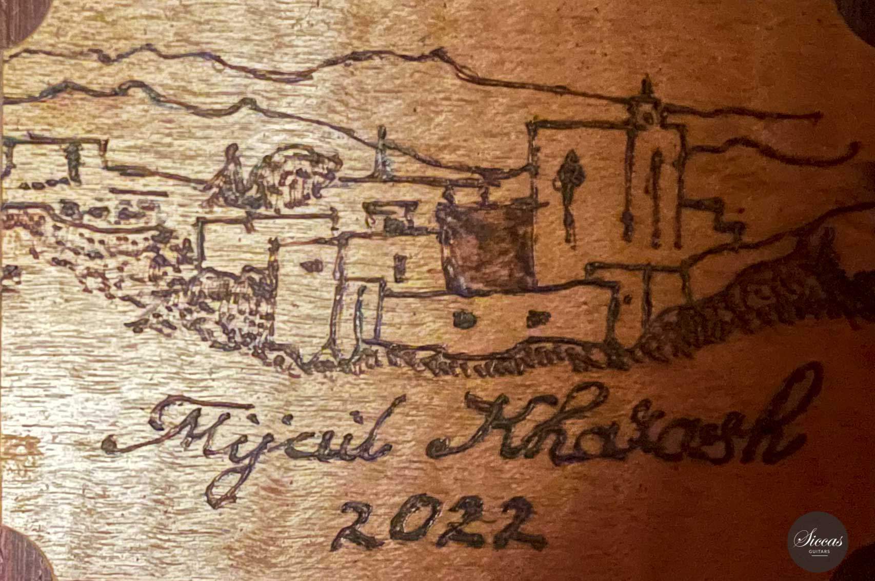 Der russische Gitarrenbauer Mijail Kharash hat eine sehr interessante Reise hinter sich, von Leningrad, wo er geboren wurde, über Israel wo er nach dem Zusammenbruch der UdSSR übersiedelte, bis er sich schließlich in Spanien niederließ, wo er das Kunsthandwerk des Gitarrenbauers erlernte. Dort kam er u.a. mit John Ray und José Vigil in Kontakt. Im Laufe der Zeit entwickelte er meisterhafte Fähigkeiten in der Holzbearbeitung und tauchte in die Feinheiten der spanischen Gitarrentradition ein. Kürzlich gewann Mijail den zweiten Preis beim Antonio Marín Montero Gitarrenbauwettbewerb.