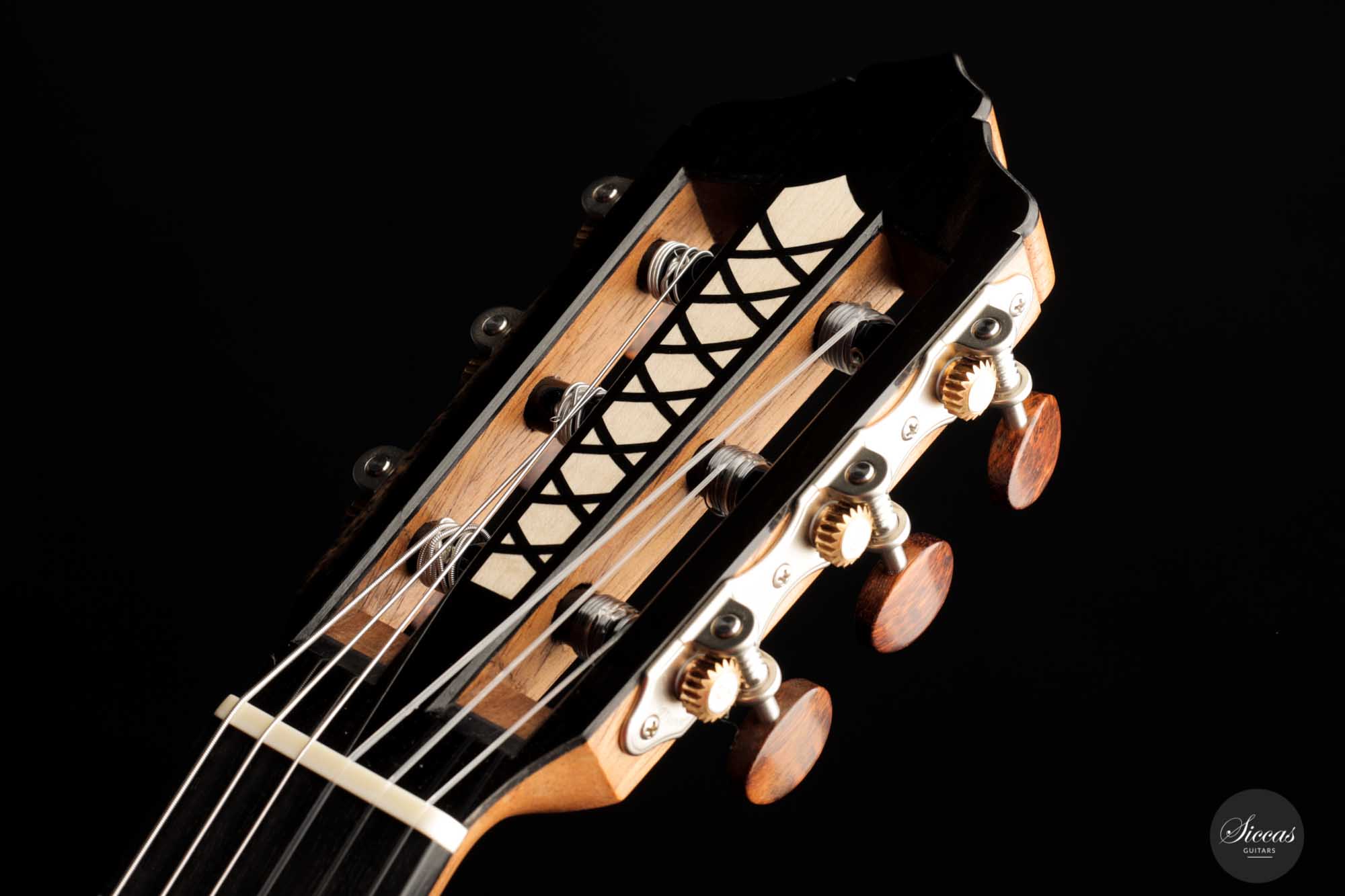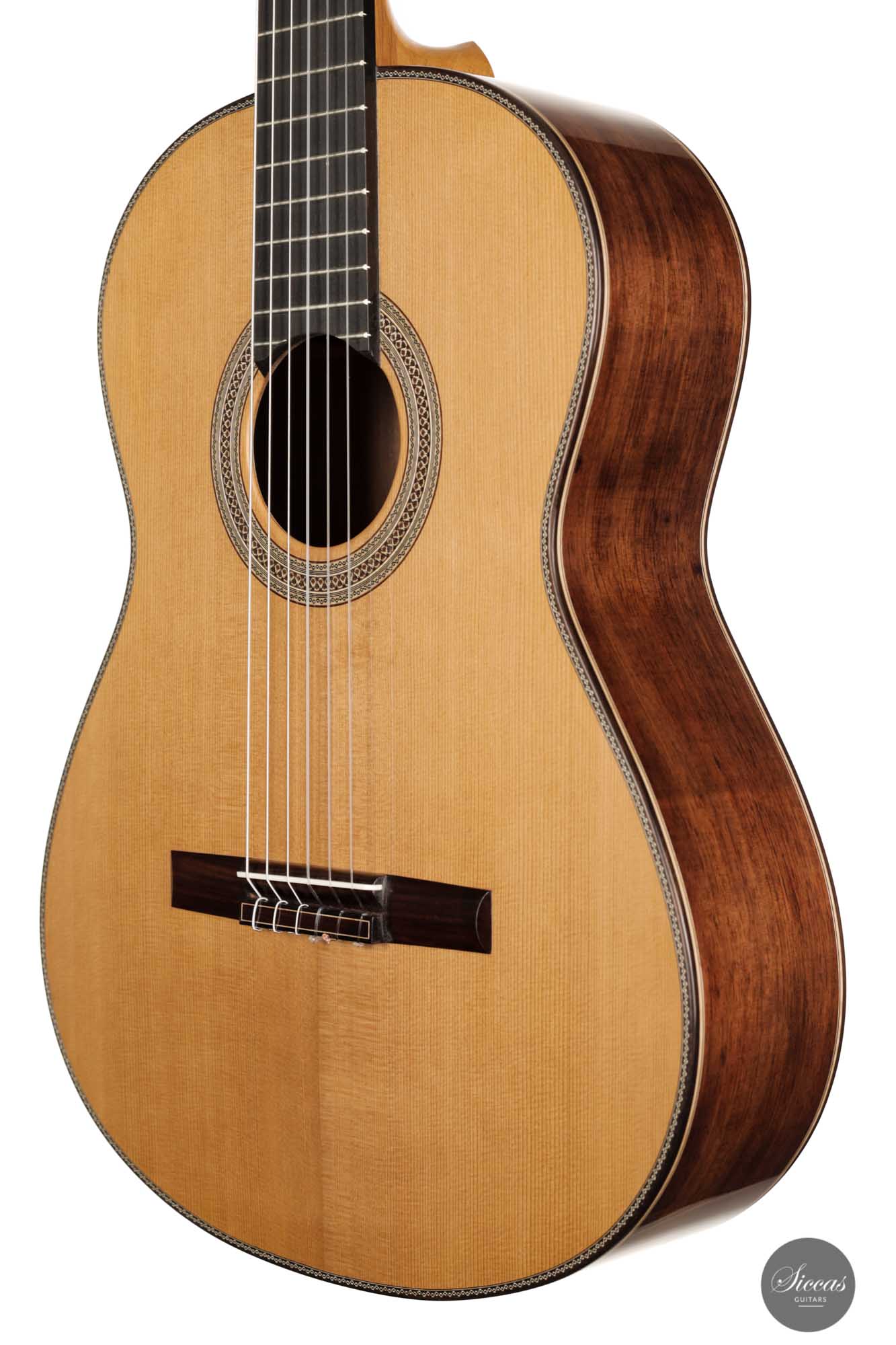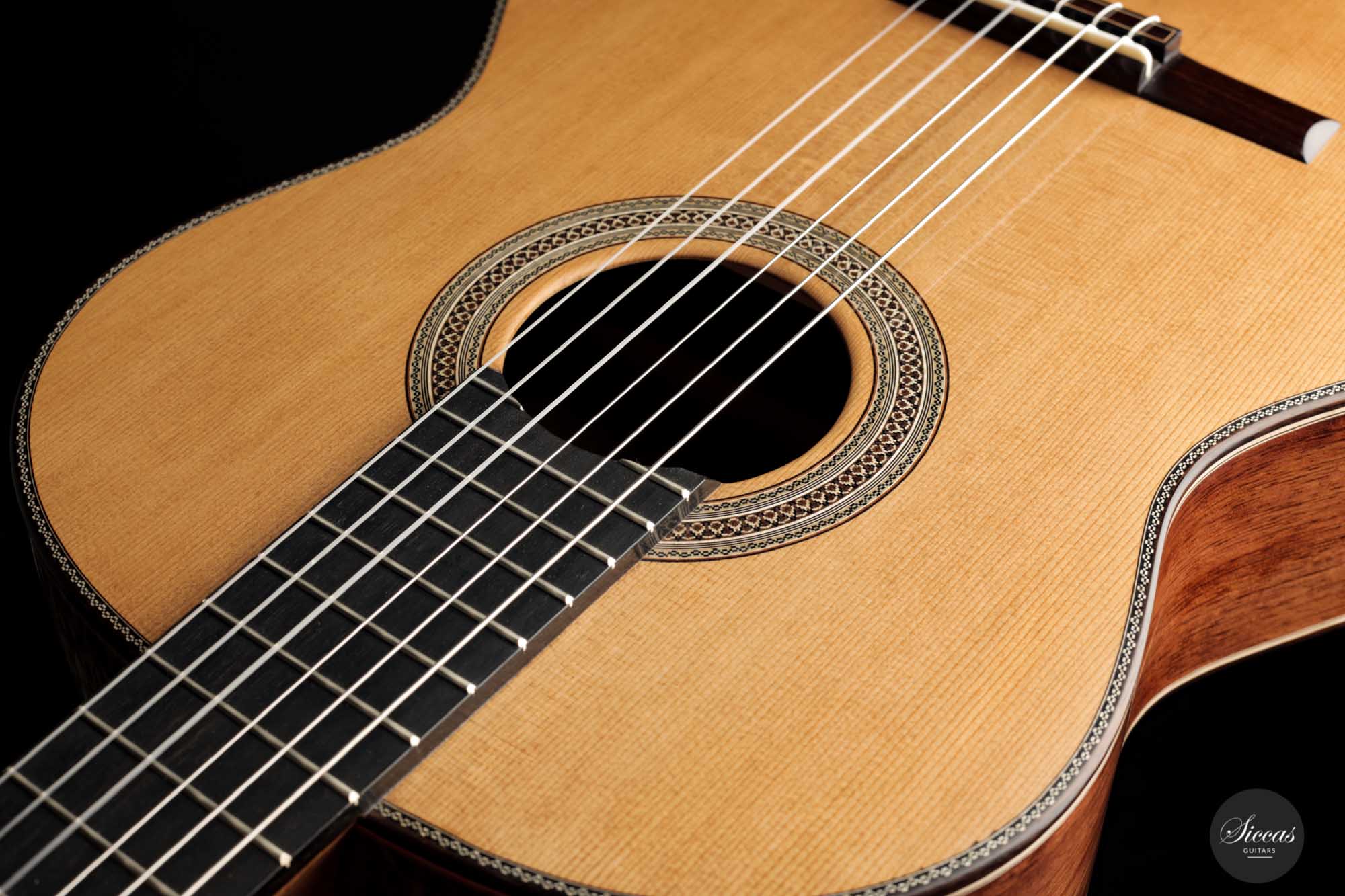 Dieses Leichtgewicht aus Granada ist überaus beindruckend. Sie hat einen warmen und offenen Klangcharakter und reagiert sehr direkt. Die schöne Zederndecke verleiht ihr einen wunderbar geschmeidigen Klang. Boden sowie Zargen sind aus edlem Madagaskar-Palisander gefertigt. Es macht großen Spaß auf dieser Gitarre zu spielen und ihre Klangfarben zu erkunden. Das Preis-Leistungs-Verhältnis dieser Kharash ist ausgesprochen gut und durch Ihre 63 cm Mensur ist sie verblüffend bequem zu spielen.