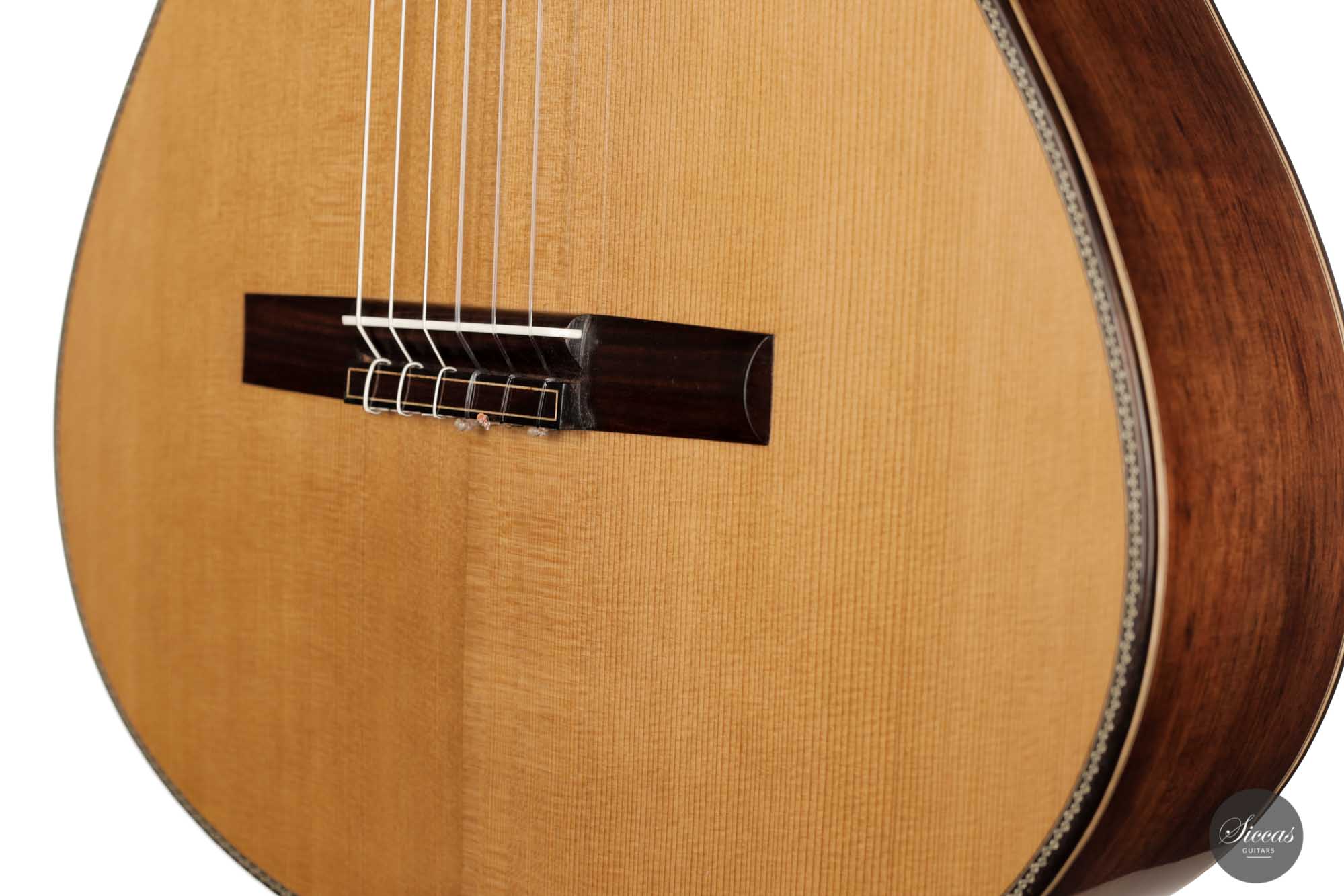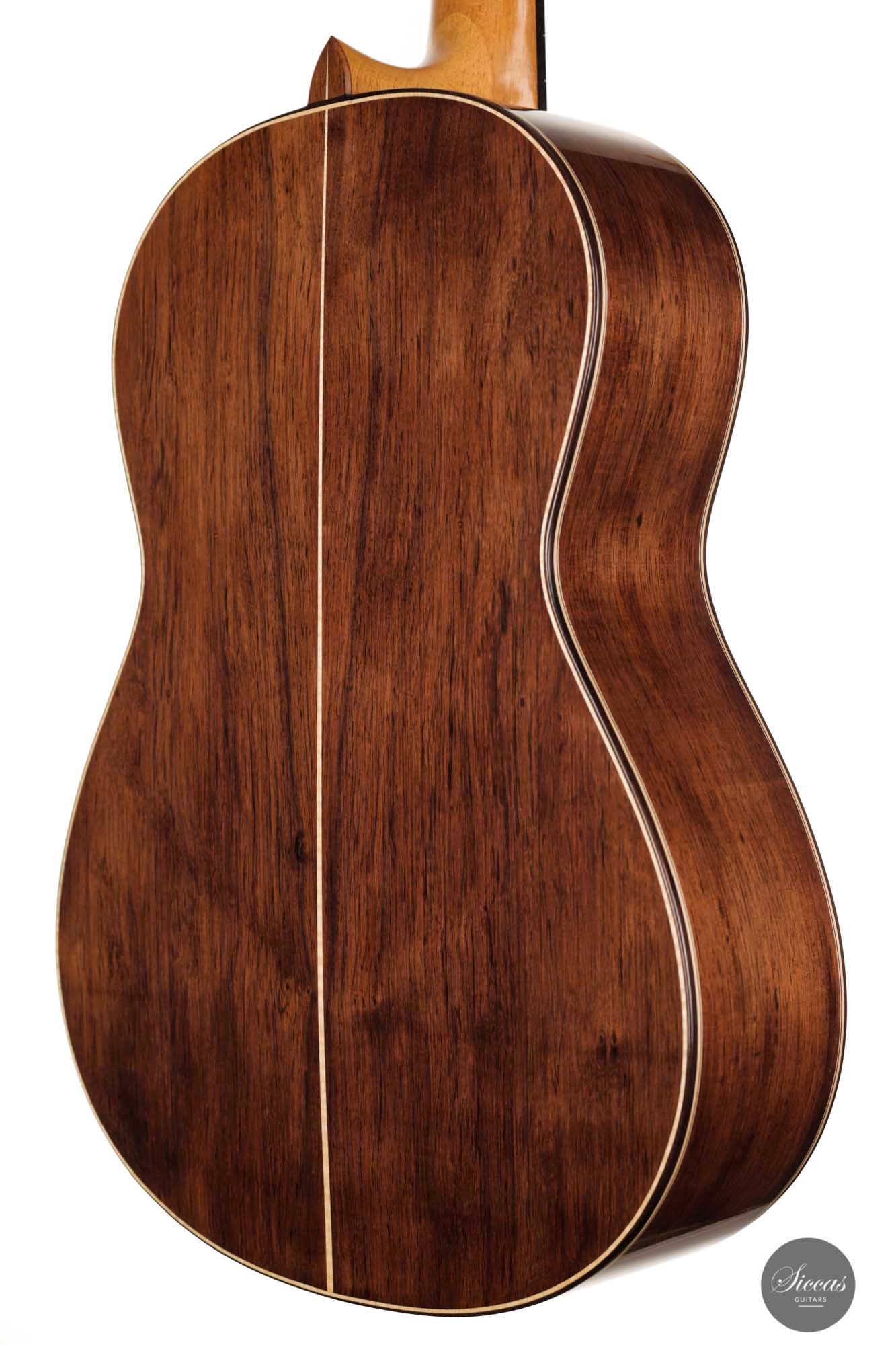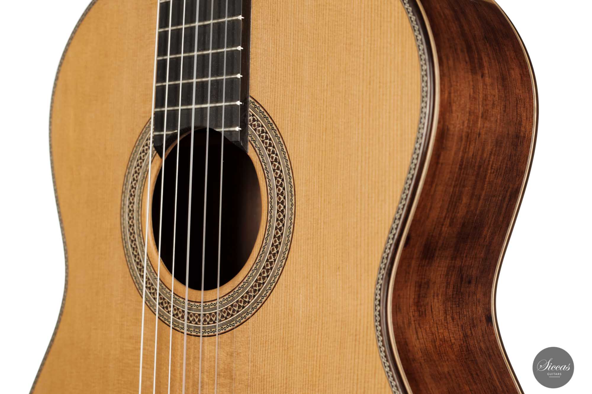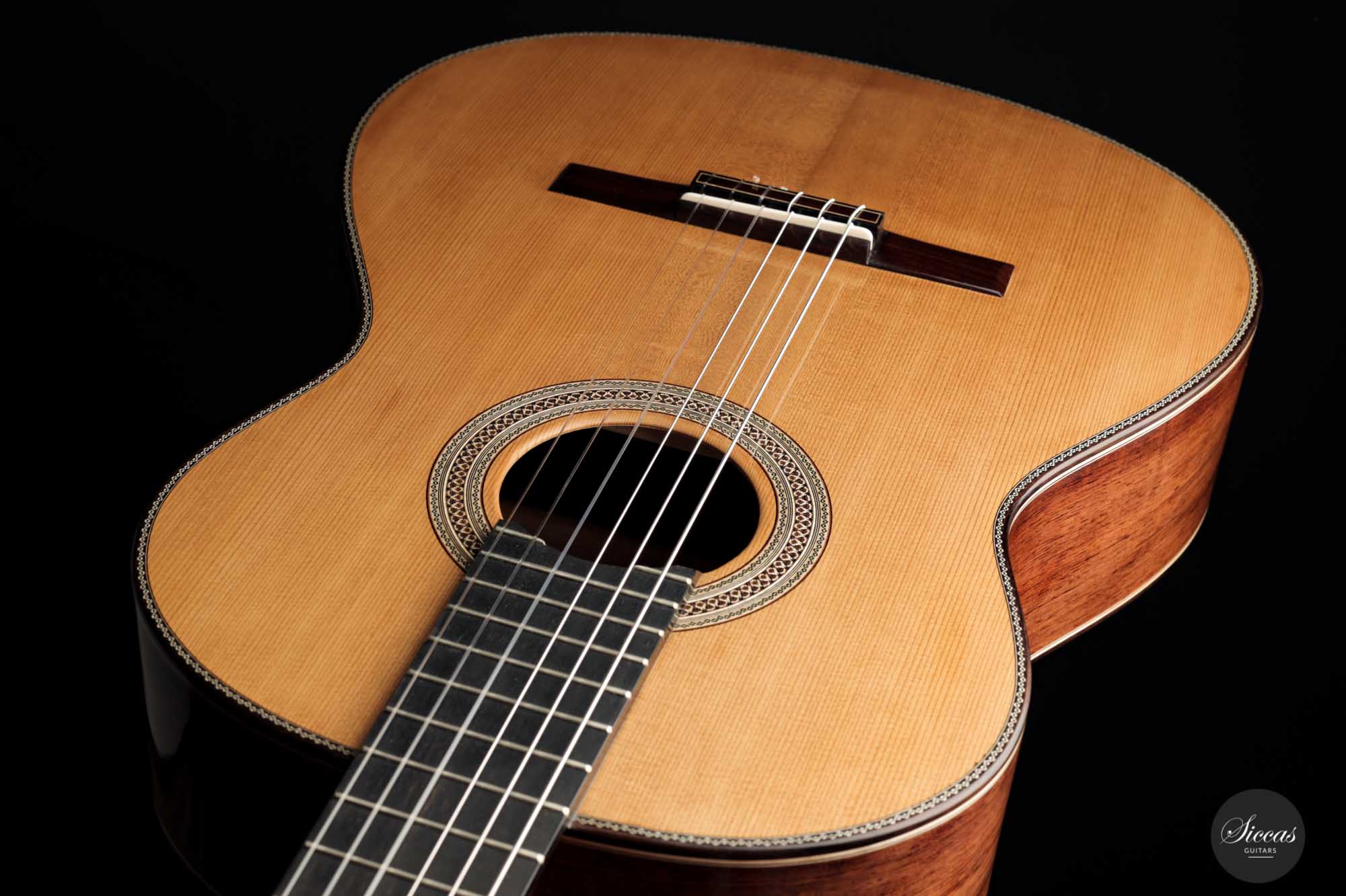 Dieses Leichtgewicht aus Granada ist überaus beindruckend. Sie hat einen warmen und offenen Klangcharakter und reagiert sehr direkt. Die schöne Zederndecke verleiht ihr einen wunderbar geschmeidigen Klang. Boden sowie Zargen sind aus edlem Madagaskar-Palisander gefertigt. Es macht großen Spaß auf dieser Gitarre zu spielen und ihre Klangfarben zu erkunden. Das Preis-Leistungs-Verhältnis dieser Kharash ist ausgesprochen gut und durch Ihre 63 cm Mensur ist sie verblüffend bequem zu spielen.