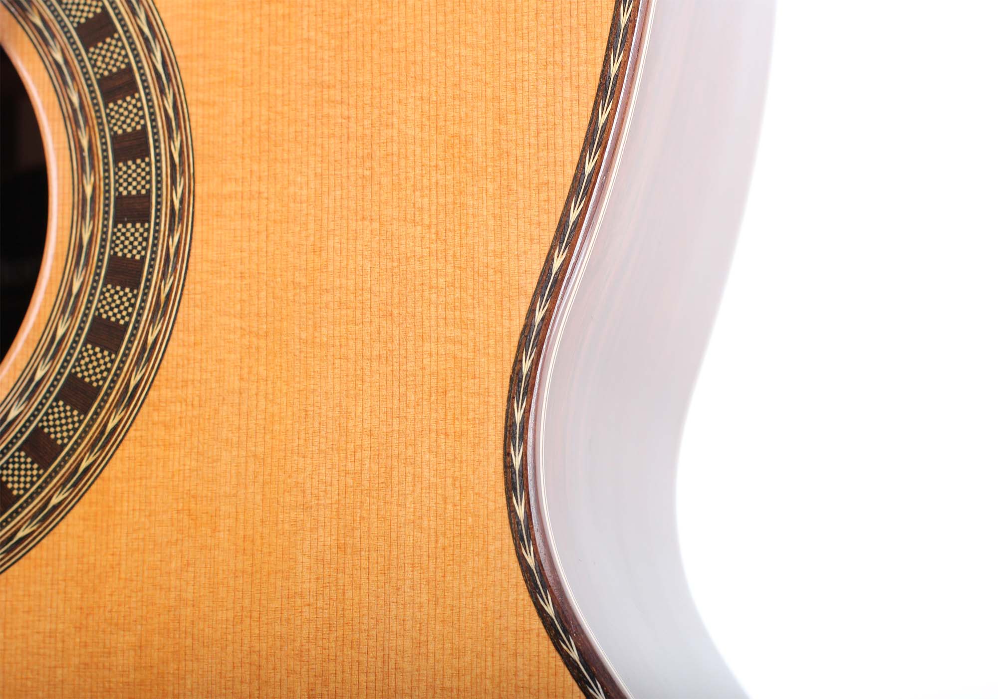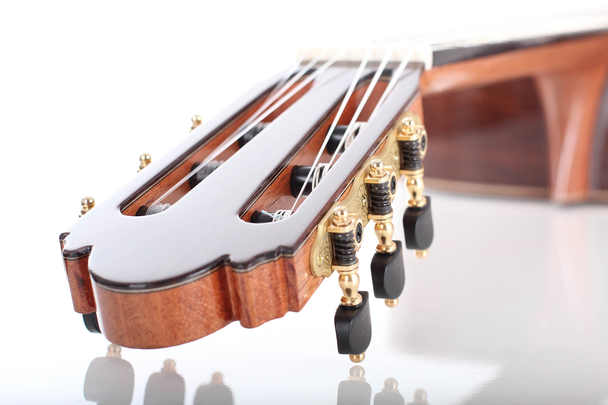 Die klassische Gitarre mit ihren weichen Nylonsaiten und ihrem charakteristischen Timbre ist zum Symbol der Kammermusik, der spanischen Tradition und des Konzertrepertoires geworden. Ihre moderne Form prägte Antonio de Torres im 19. Jahrhundert, indem er den Standard für Korpus, Fächerbeleistung und die 65-Zentimeter-Mensur setzte, die bis heute verwendet werden. Instrumente dieser Kategorie eröffnen eine reiche Palette von den feinen romantischen Miniaturen Tárregas bis zu den majestätischen Konzerten Rodrigos. Hier finden Sie Gitarren, die historische Kontinuität bewahren und zugleich zu neuen Interpretationen anregen.Alle Produkte der Kollektion ansehen -