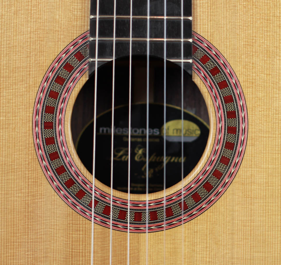 This Ramirez model is a beautiful sounding guitar that has a solid cedar top and Indian rosewood back and sides. This guitar is built in a traditional Spanish way. It has a fan bracing and used were only solid woods - spruce for the top and Indian rosewood for back and sides. The tuning machines have ball bearings and what makes it very easy to tune the guitar. Just like all Milestones guitars the player gets all the benefits of a handmade guitar at a very attractive price.