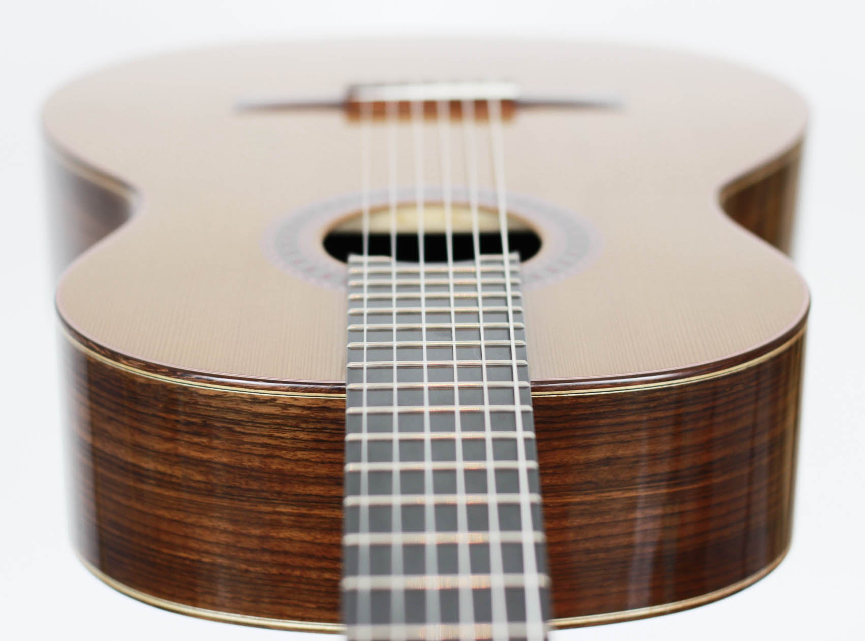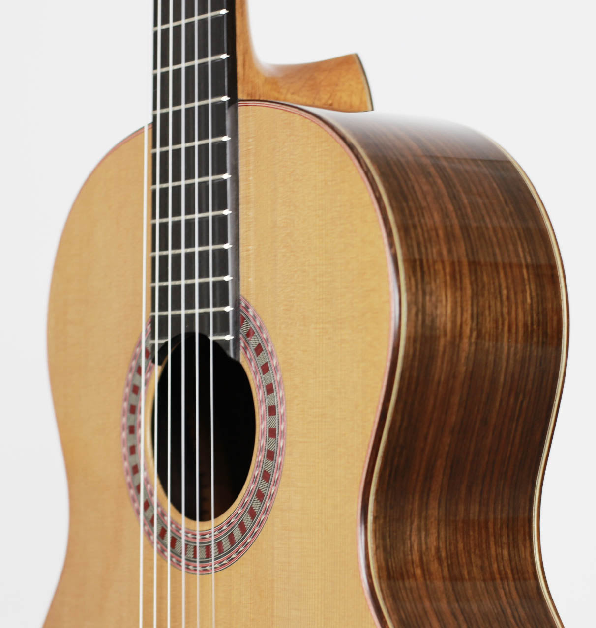 Die klassische Gitarre mit ihren weichen Nylonsaiten und ihrem charakteristischen Timbre ist zum Symbol der Kammermusik, der spanischen Tradition und des Konzertrepertoires geworden. Ihre moderne Form prägte Antonio de Torres im 19. Jahrhundert, indem er den Standard für Korpus, Fächerbeleistung und die 65-Zentimeter-Mensur setzte, die bis heute verwendet werden. Instrumente dieser Kategorie eröffnen eine reiche Palette von den feinen romantischen Miniaturen Tárregas bis zu den majestätischen Konzerten Rodrigos. Hier finden Sie Gitarren, die historische Kontinuität bewahren und zugleich zu neuen Interpretationen anregen.Alle Gitarren der Kollektion ansehen -