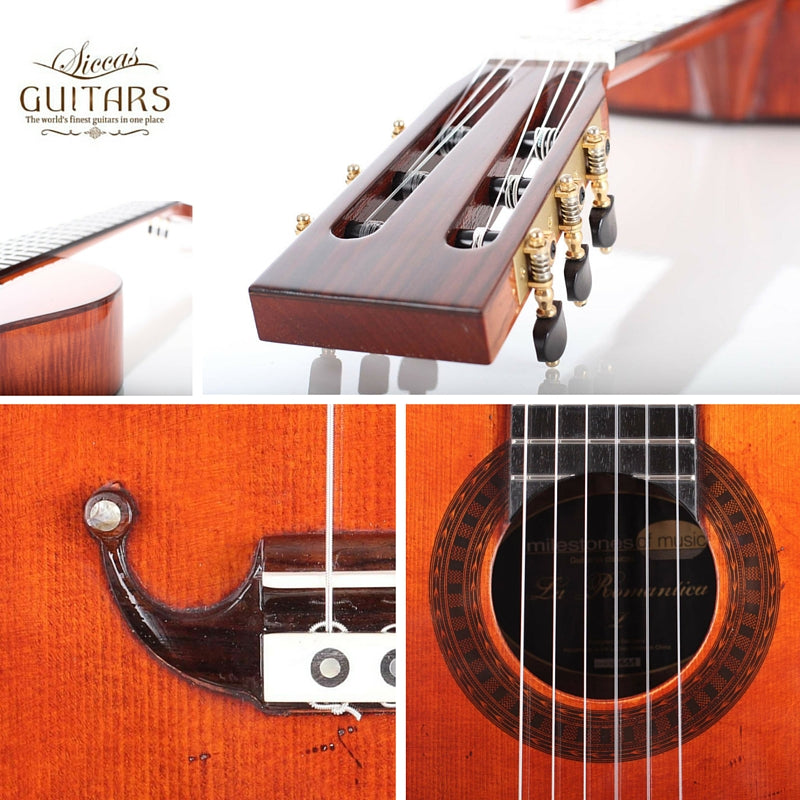 Gitarrenbauer: José Luis RomanillosBaujahr: 1979Decke: SpruceBoden und Zargen: Indian rosewoodDeckenoberfläche: French polishKorpusoberfläche: French polishLuftresonanz: G / G sharpGewicht (g): 1410Mechaniken: RodgersZustand: Excellent