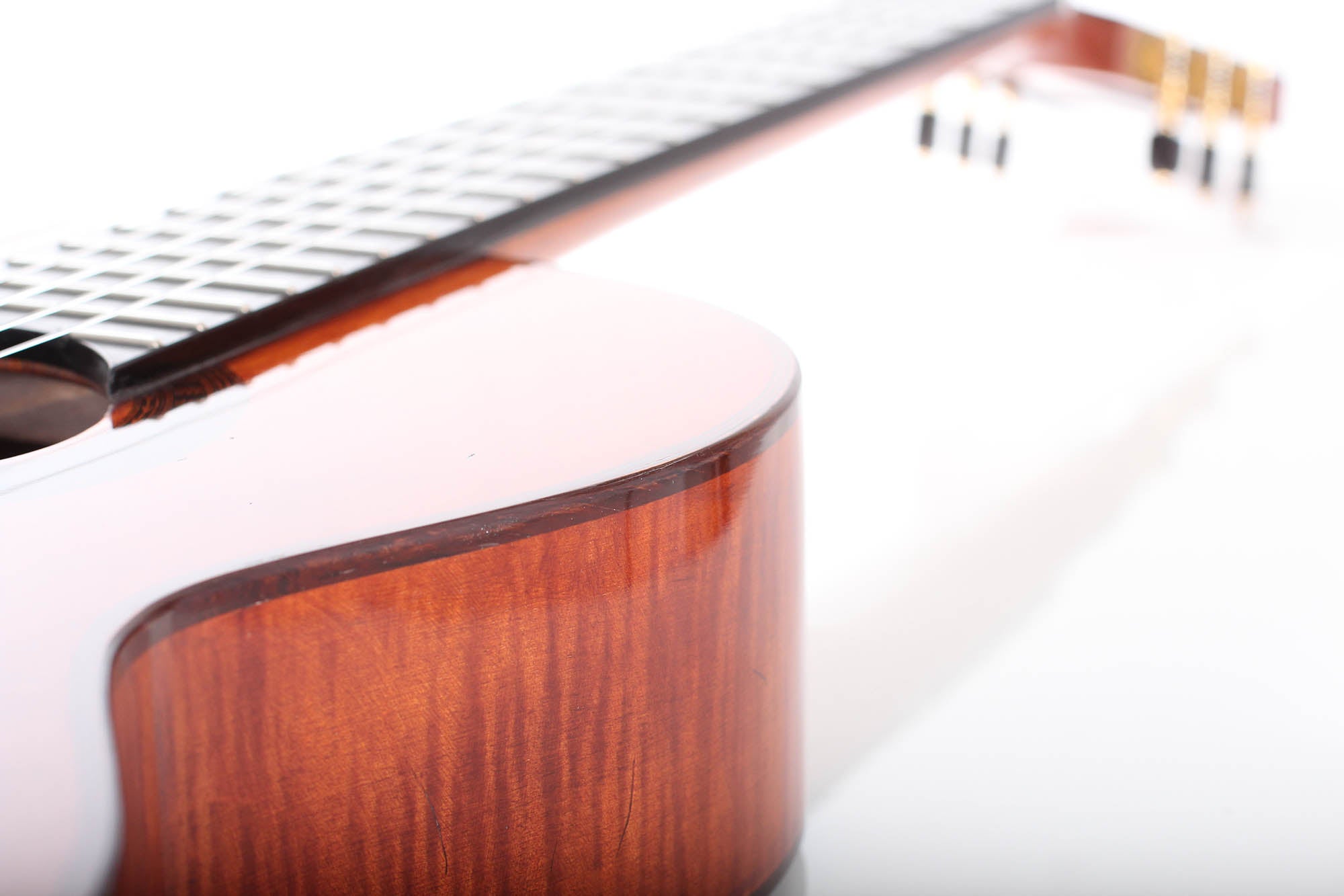 Die klassische Gitarre mit ihren weichen Nylonsaiten und ihrem charakteristischen Timbre ist zum Symbol der Kammermusik, der spanischen Tradition und des Konzertrepertoires geworden. Ihre moderne Form prägte Antonio de Torres im 19. Jahrhundert, indem er den Standard für Korpus, Fächerbeleistung und die 65-Zentimeter-Mensur setzte, die bis heute verwendet werden. Instrumente dieser Kategorie eröffnen eine reiche Palette von den feinen romantischen Miniaturen Tárregas bis zu den majestätischen Konzerten Rodrigos. Hier finden Sie Gitarren, die historische Kontinuität bewahren und zugleich zu neuen Interpretationen anregen.Alle Gitarren der Kollektion ansehen -