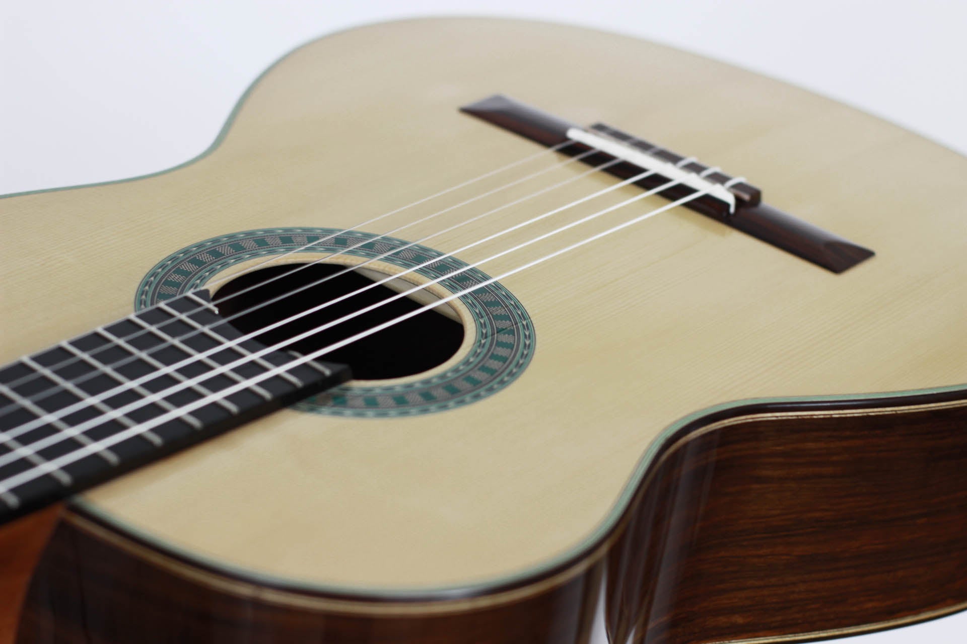 Die klassische Gitarre mit ihren weichen Nylonsaiten und ihrem charakteristischen Timbre ist zum Symbol der Kammermusik, der spanischen Tradition und des Konzertrepertoires geworden. Ihre moderne Form prägte Antonio de Torres im 19. Jahrhundert, indem er den Standard für Korpus, Fächerbeleistung und die 65-Zentimeter-Mensur setzte, die bis heute verwendet werden. Instrumente dieser Kategorie eröffnen eine reiche Palette von den feinen romantischen Miniaturen Tárregas bis zu den majestätischen Konzerten Rodrigos. Hier finden Sie Gitarren, die historische Kontinuität bewahren und zugleich zu neuen Interpretationen anregen.Alle Produkte der Kollektion ansehen -