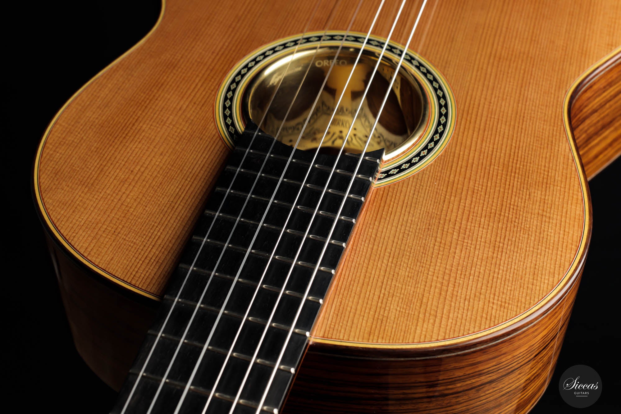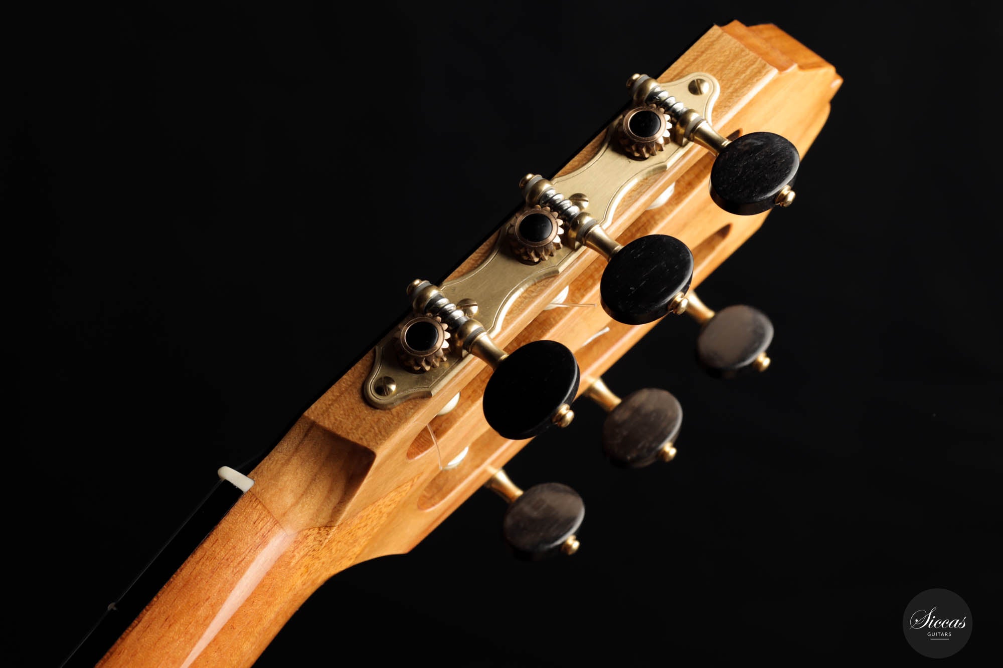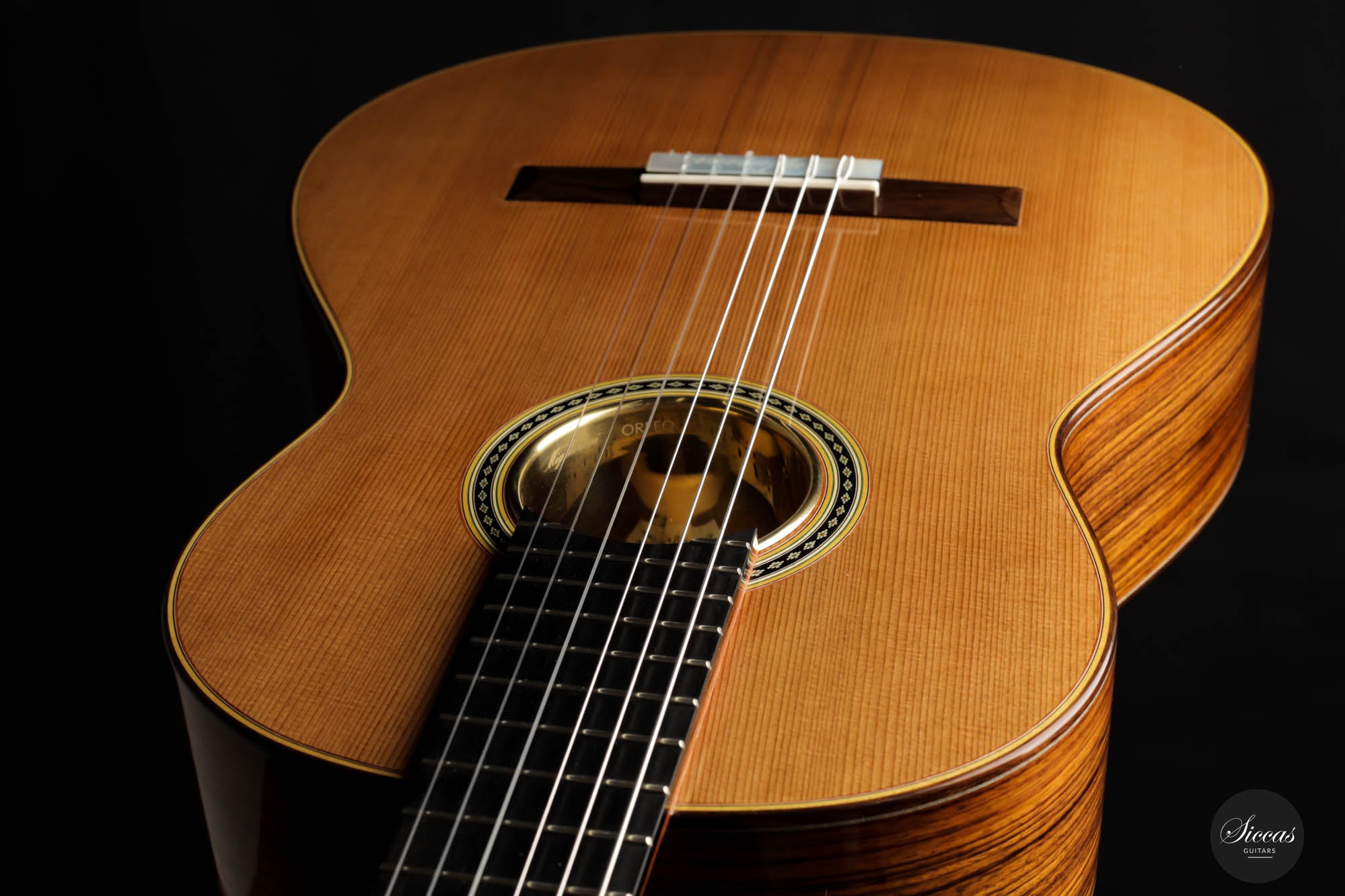 Diese brandneue Gitarre des Modells Orfeo ist in jeder Hinsicht ein fantastisches Instrument. Man wird die Mühe zu schätzen wissen, die Mirko in dieses Instrument investiert hat. Sie hat eine Zederndecke mit doppelter Decke und einen markanten Boden und Zargen aus indischem Palisander. Außerdem ist die Handwerkskunst dieser Gitarre unübertroffen. Das aufregendste Merkmal dieser Gitarre ist der technisch ausgefeilte Tornavoz, der leicht abnehmbar ist. Trotz des modernen Designs verwendet Mirko bei dieser Gitarre traditionelle Techniken und Merkmale. Das Ergebnis ist ein außergewöhnlich mühelos zu spielendes Instrument, das den Anforderungen zeitgenössischer Gitarristen auf allen Ebenen gerecht wird.