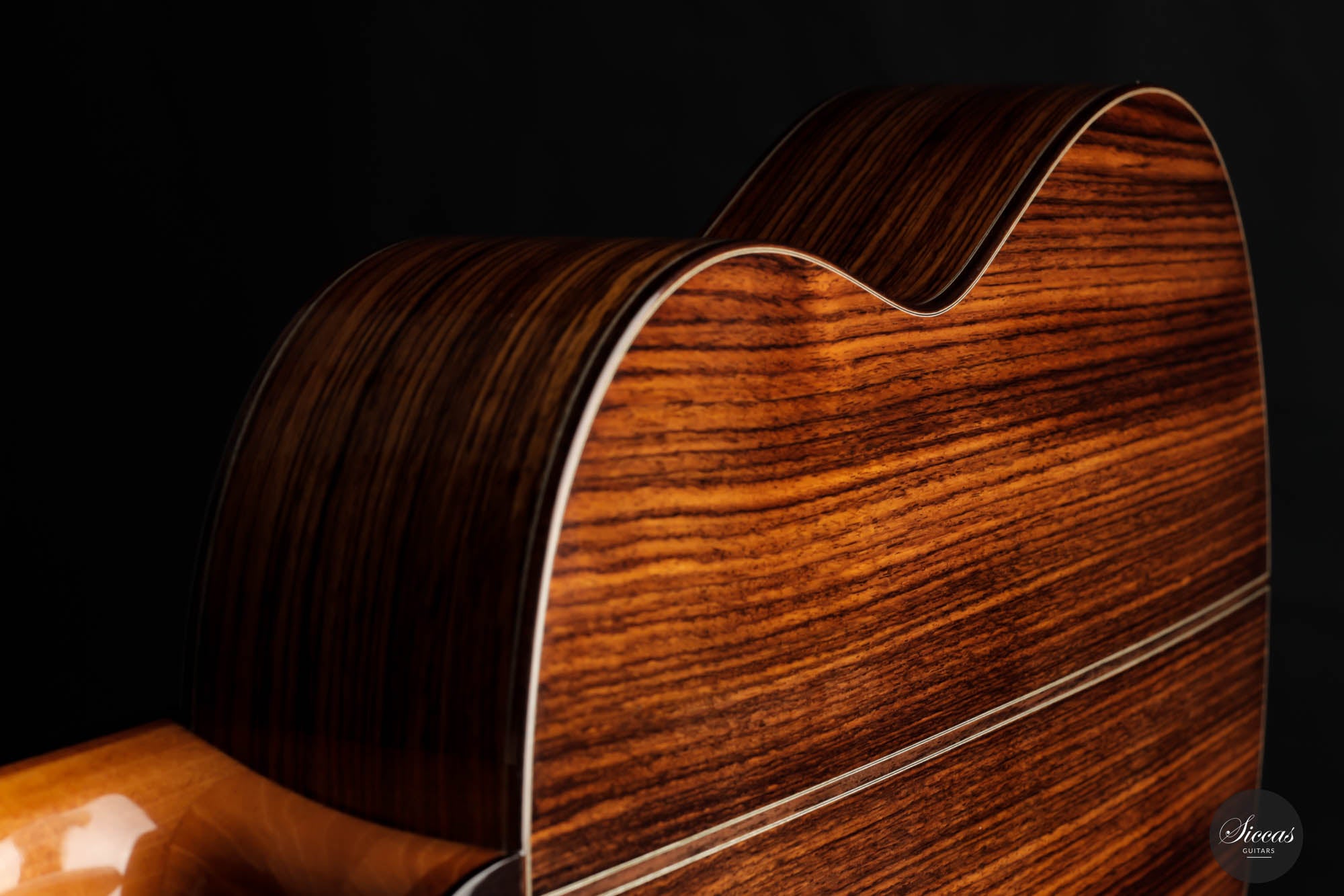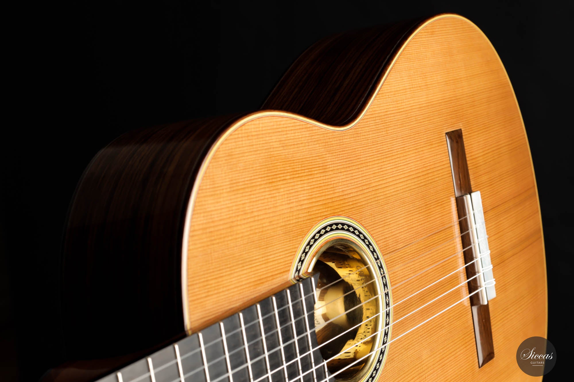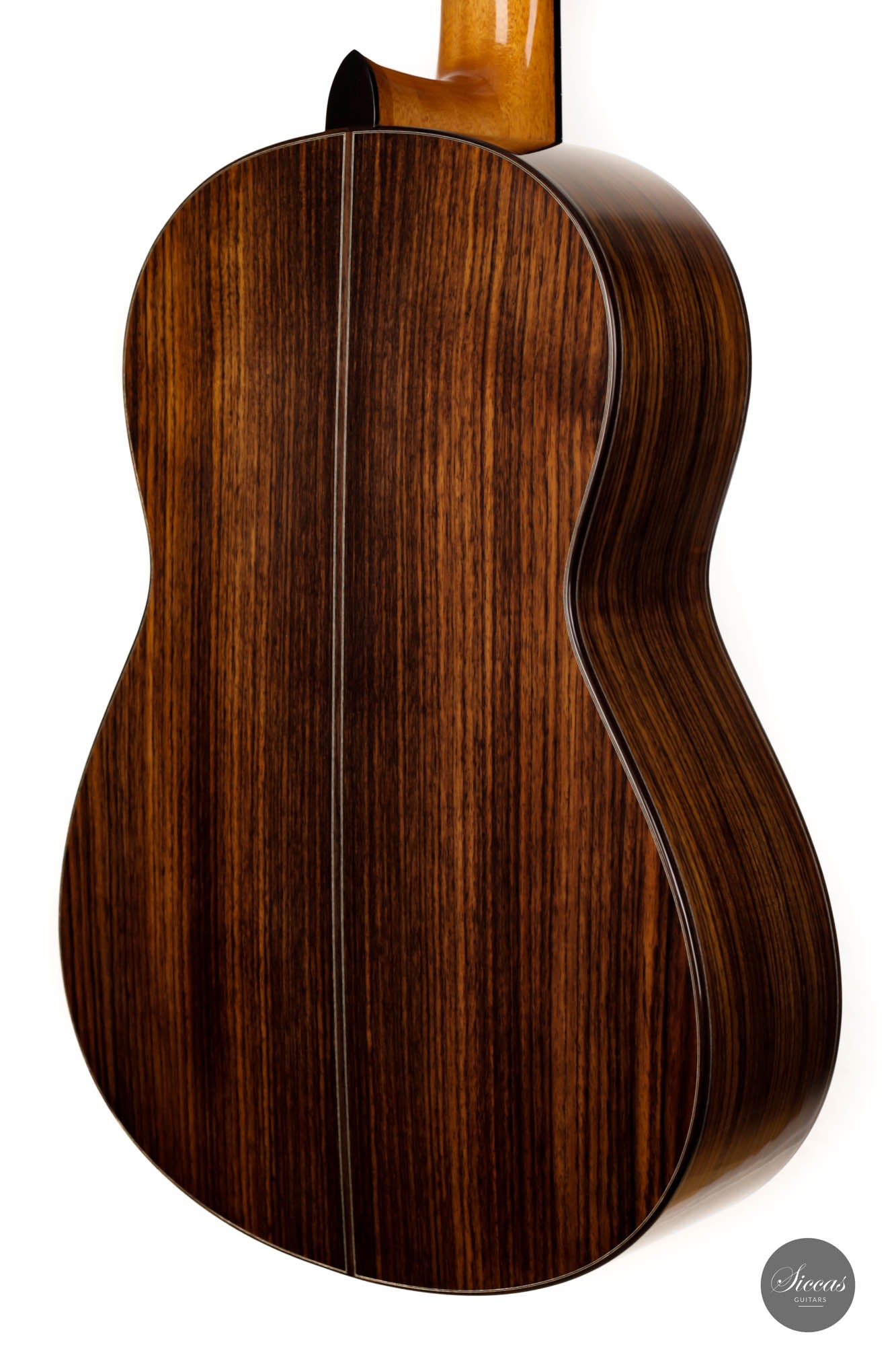 Diese brandneue Gitarre des Modells Orfeo ist in jeder Hinsicht ein fantastisches Instrument. Man wird die Mühe zu schätzen wissen, die Mirko in dieses Instrument investiert hat. Sie hat eine Zederndecke mit doppelter Decke und einen markanten Boden und Zargen aus indischem Palisander. Außerdem ist die Handwerkskunst dieser Gitarre unübertroffen. Das aufregendste Merkmal dieser Gitarre ist der technisch ausgefeilte Tornavoz, der leicht abnehmbar ist. Trotz des modernen Designs verwendet Mirko bei dieser Gitarre traditionelle Techniken und Merkmale. Das Ergebnis ist ein außergewöhnlich mühelos zu spielendes Instrument, das den Anforderungen zeitgenössischer Gitarristen auf allen Ebenen gerecht wird.