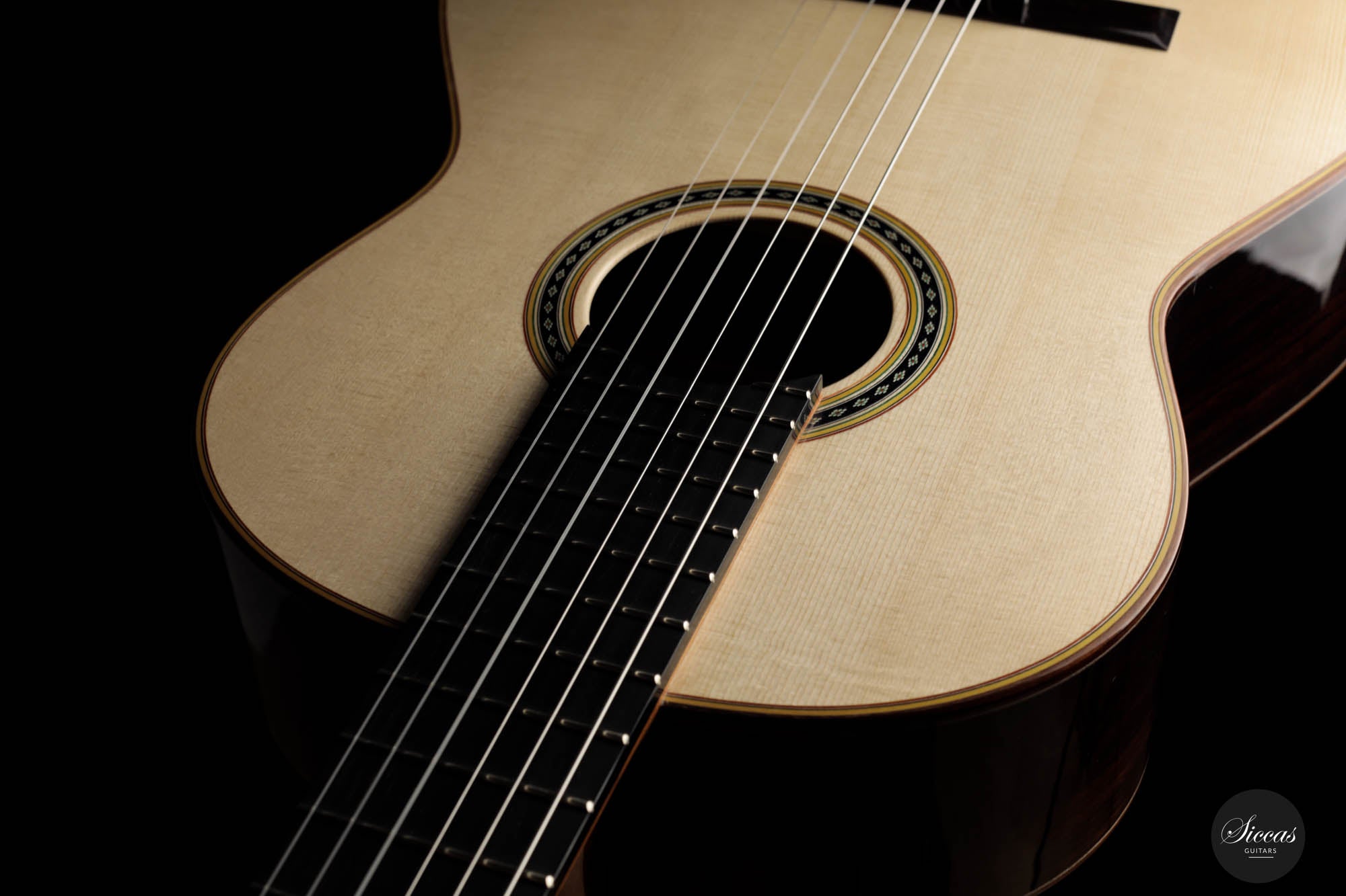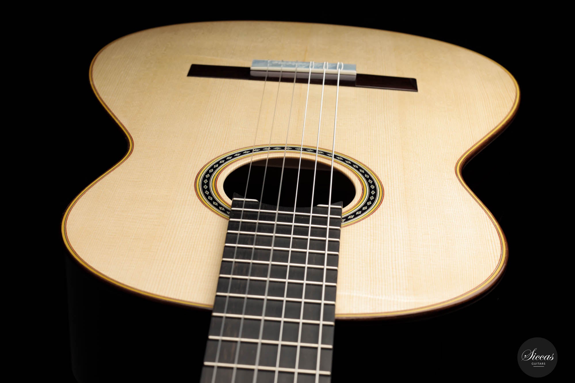 Die klassische Gitarre mit ihren weichen Nylonsaiten und ihrem charakteristischen Timbre ist zum Symbol der Kammermusik, der spanischen Tradition und des Konzertrepertoires geworden. Ihre moderne Form prägte Antonio de Torres im 19. Jahrhundert, indem er den Standard für Korpus, Fächerbeleistung und die 65-Zentimeter-Mensur setzte, die bis heute verwendet werden. Instrumente dieser Kategorie eröffnen eine reiche Palette von den feinen romantischen Miniaturen Tárregas bis zu den majestätischen Konzerten Rodrigos. Hier finden Sie Gitarren, die historische Kontinuität bewahren und zugleich zu neuen Interpretationen anregen.