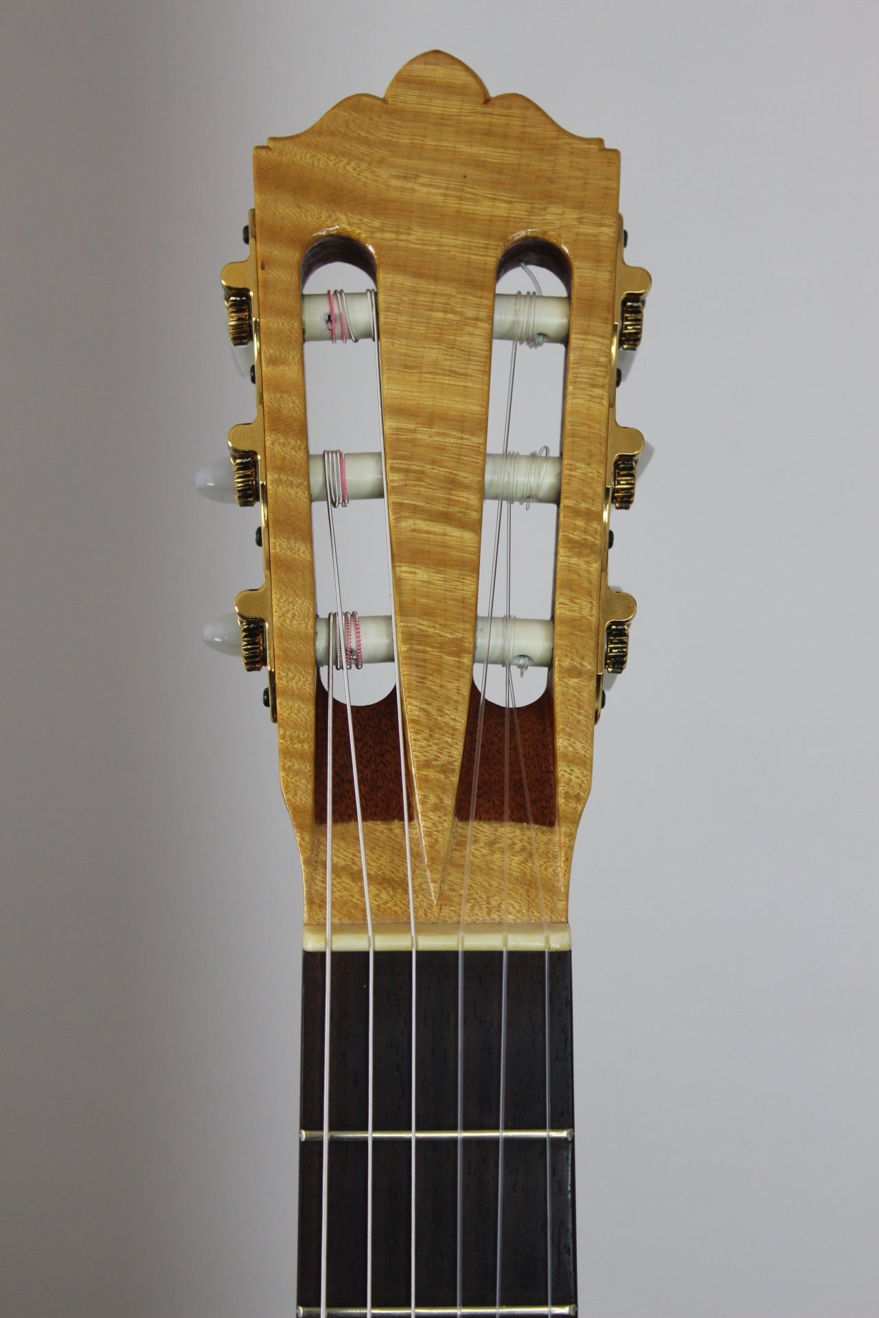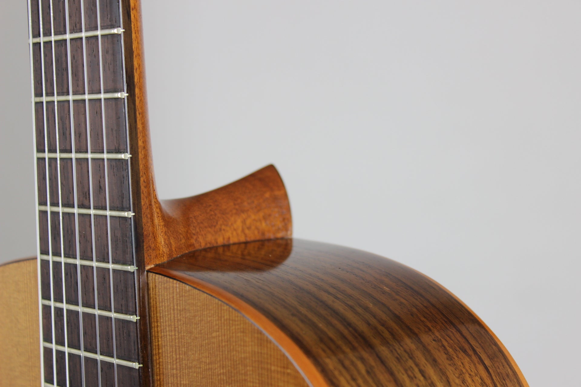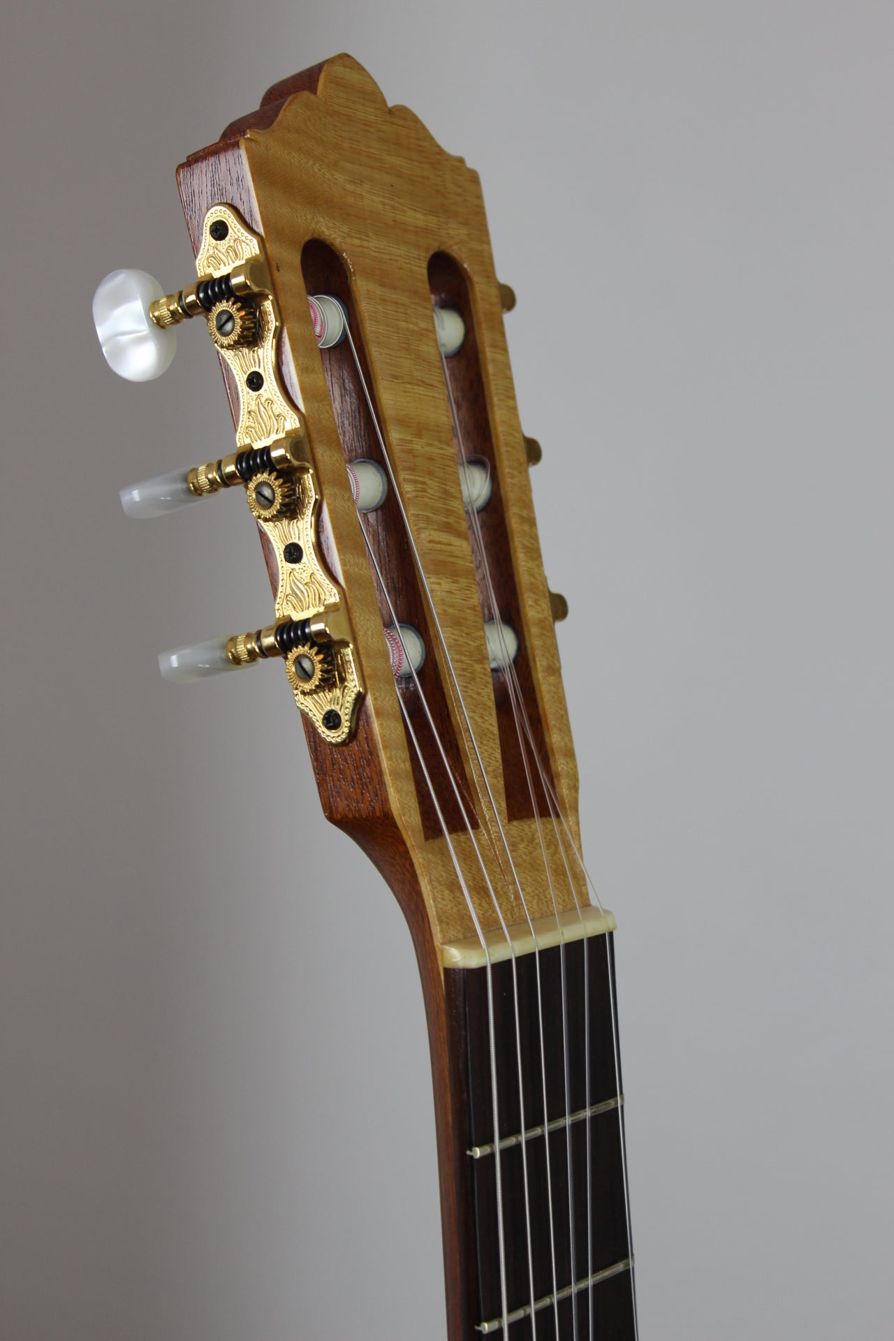 Diese Nicolaus Wollf Gitarre wurde im Jahr 2000 gebaut. Sie ist sehr leicht und kräftig im Klang aber auch gleichzeitig ausgeglichen. Es ist ein sehr gelungenes Instrument und die Bespielbarkeit ist sehr komfortabel. Die Decke ist aus Zeder gefertigt - Boden/Zargen sind aus indischem Palisander. Es sind nur wenige Spielspuren sichtbar und insgesamt befindet sich das Instrument in einem sehr guten Zustand. Die Mechaniken sind von Gotoh und ein Hartschalenkoffer ist inklusive.