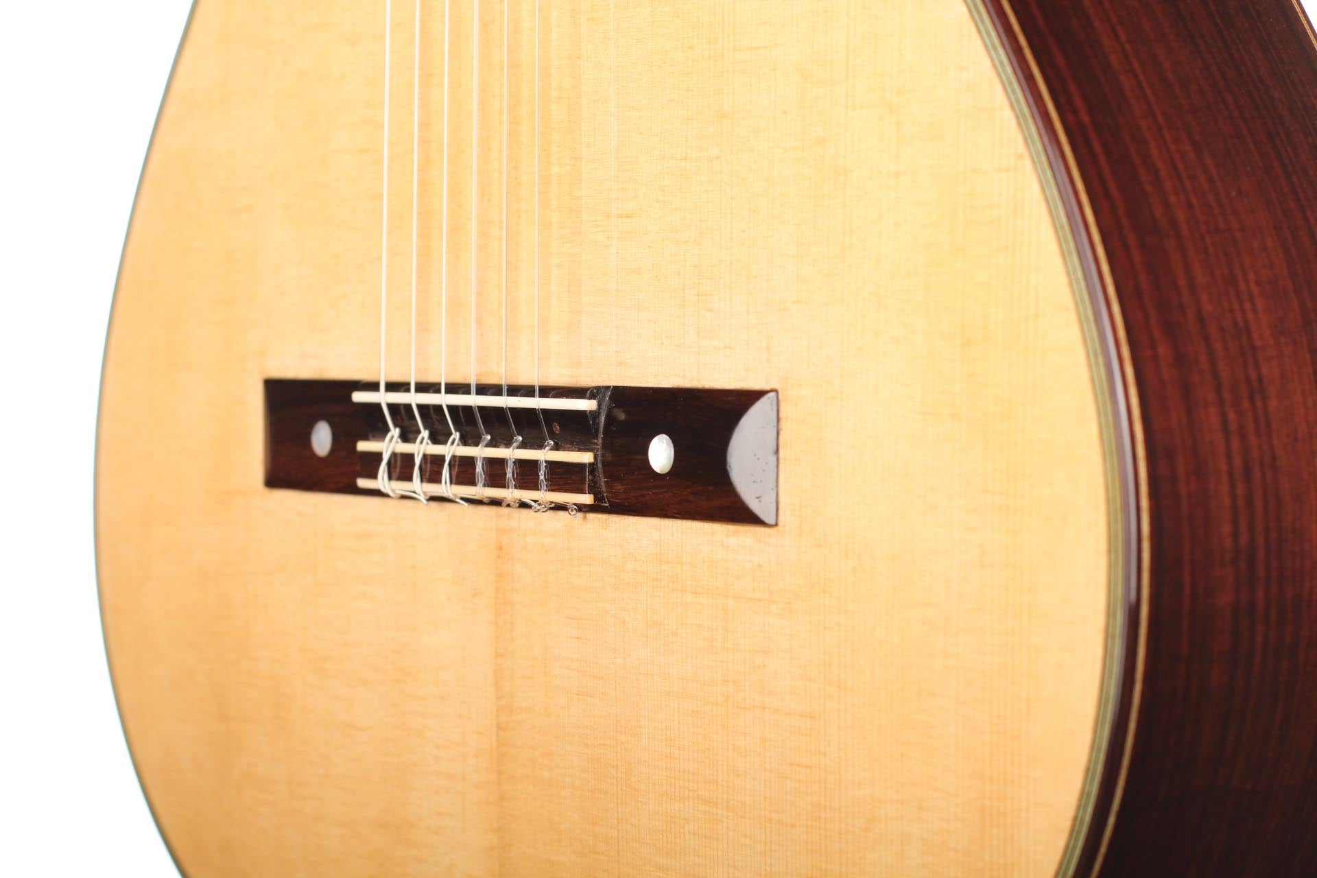 Die klassische Gitarre mit ihren weichen Nylonsaiten und ihrem charakteristischen Timbre ist zum Symbol der Kammermusik, der spanischen Tradition und des Konzertrepertoires geworden. Ihre moderne Form prägte Antonio de Torres im 19. Jahrhundert, indem er den Standard für Korpus, Fächerbeleistung und die 65-Zentimeter-Mensur setzte, die bis heute verwendet werden. Instrumente dieser Kategorie eröffnen eine reiche Palette von den feinen romantischen Miniaturen Tárregas bis zu den majestätischen Konzerten Rodrigos. Hier finden Sie Gitarren, die historische Kontinuität bewahren und zugleich zu neuen Interpretationen anregen.