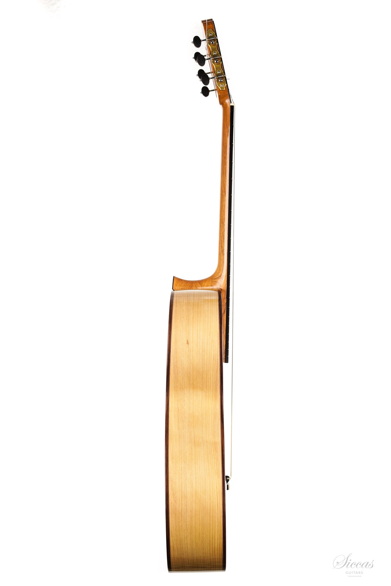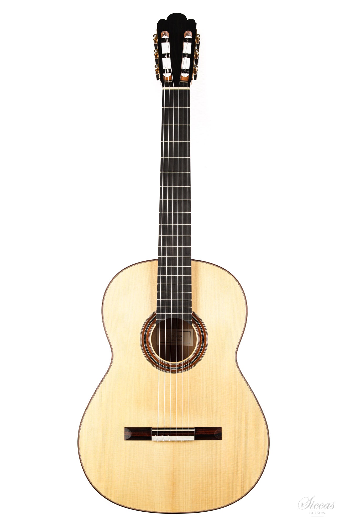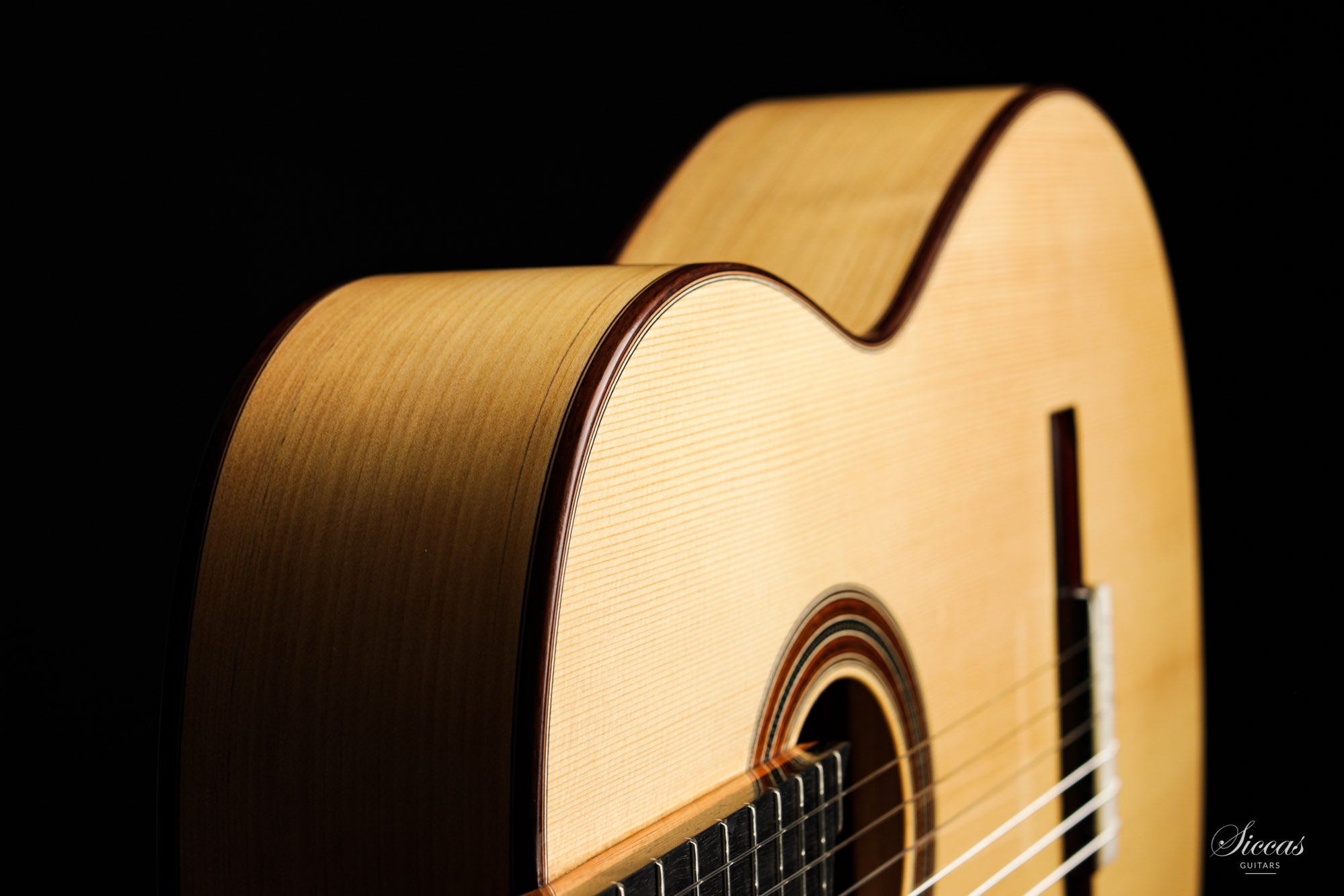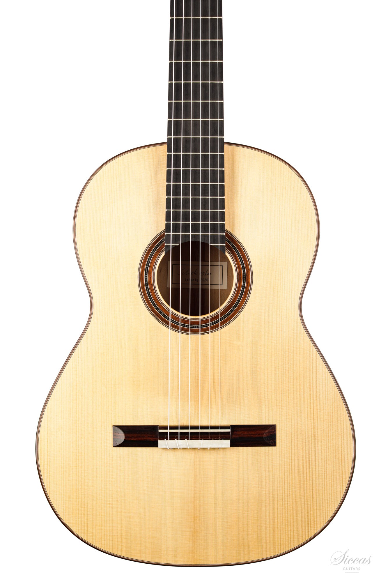 This instrument is a joy to play and of course to smell, due to the aromatic aroma from the cypress. It is quite uncommon with classical concert guitars build with cypress, but bear no mistake, this guitar is very potent with an inspiring quick responsiveness and a full bodied sound. The basses are crisp and snappy with a dazzling rich texture, paired with sweet trebles that have an airy quality to them, makes the guitar a real joy to play. When inspecting the nooks and crannies of the guitar, it is put together with an experts eyes and hands. A clean and charming design is what meets the eye. Easy to play with a great access to the upper registers. We are sure that this instrument will suit anyone who looks for a great sounding guitar within a very reasonable price range.