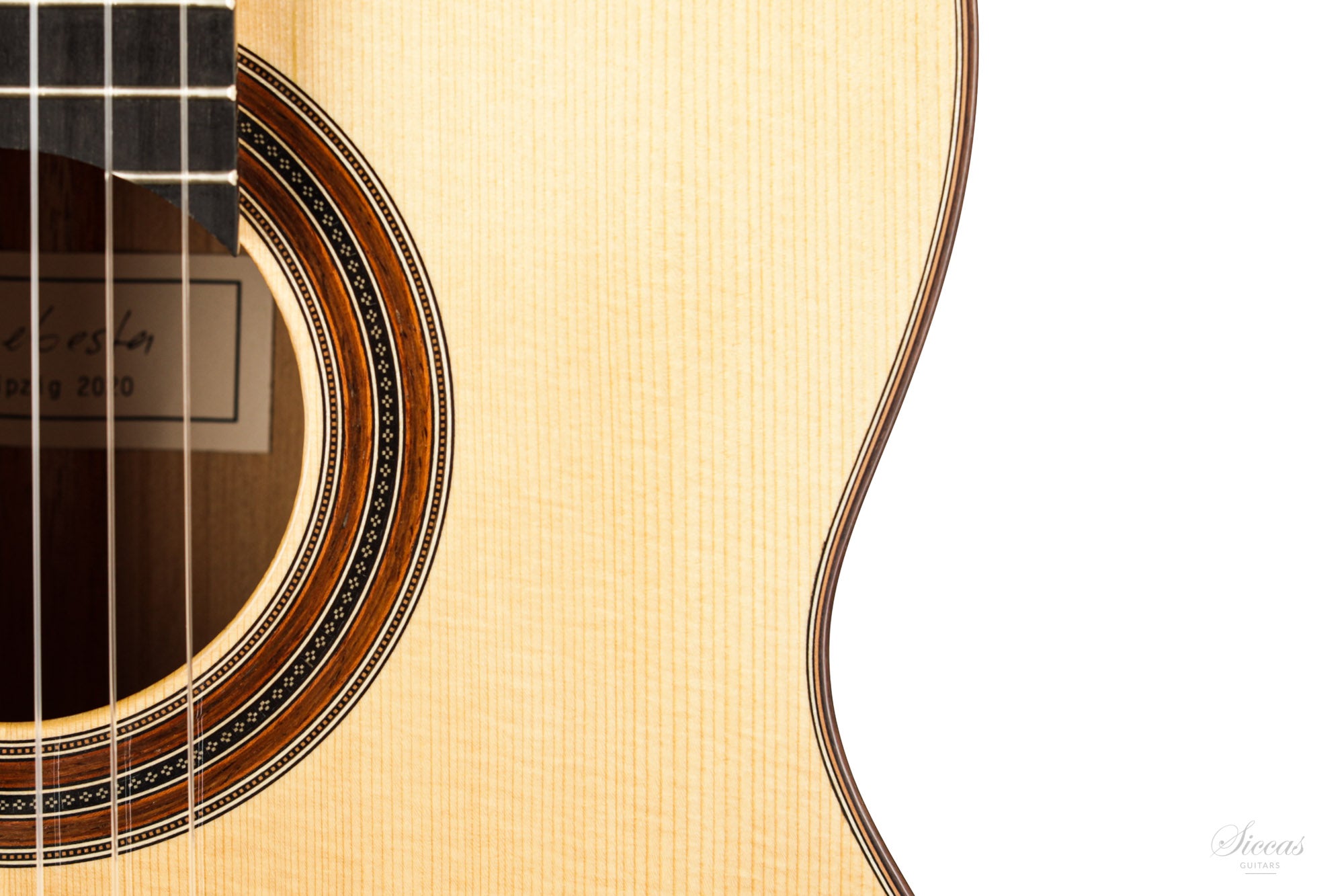 Nils Schebesta is a talented young guitar maker who started his apprenticeship as a luthier 10 years ago. After finishing his apprenticeship he studied guitar making in Markneukirchen and refined his skills during various internships and workshops. Before he moved into his own workshop in Leipzig at the beginning of 2019, he worked for a violin maker for several years. From his workshop he builds instruments inspired by both the German and French tradition. Some features that stands out is the usage of elevated fretboards for easy access in the upper registers, the guitars are all responsive and they have a sober, mature design.